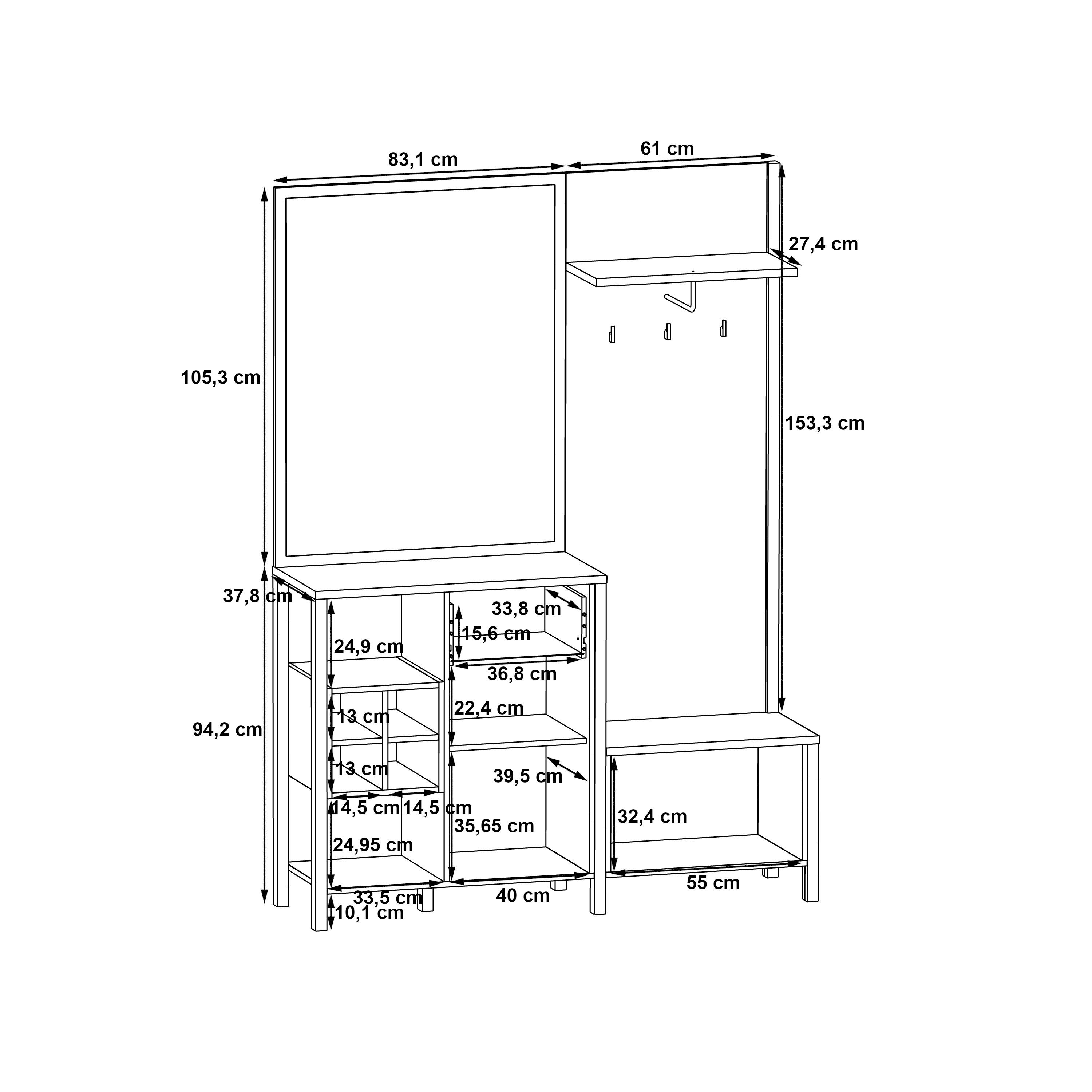 | Kompaktgarderobe | 144,5 | 200 | 40,2 |