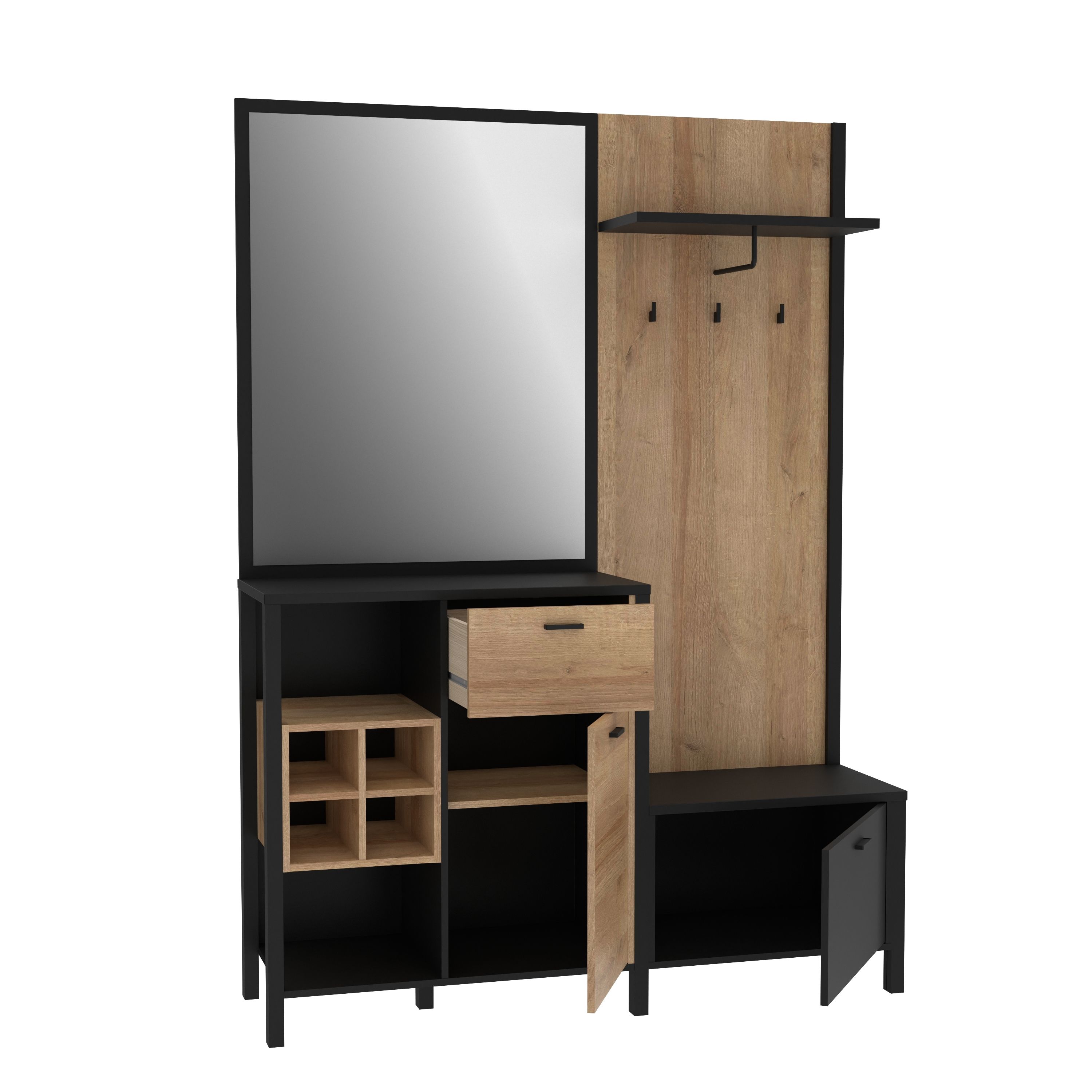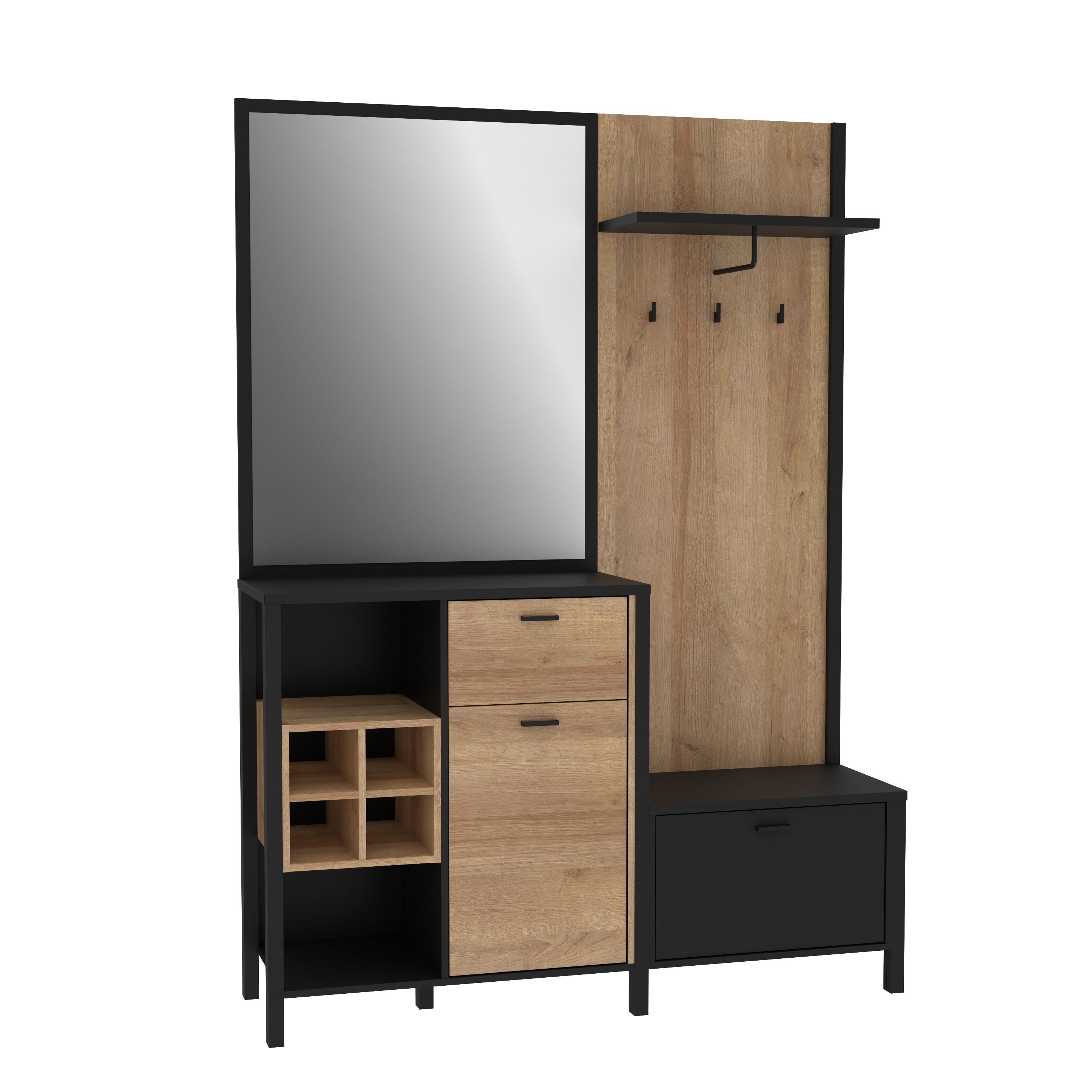 1 Garderobenpaneel mit 1 Hutablage, 1 Kleiderstange und 3 Haken