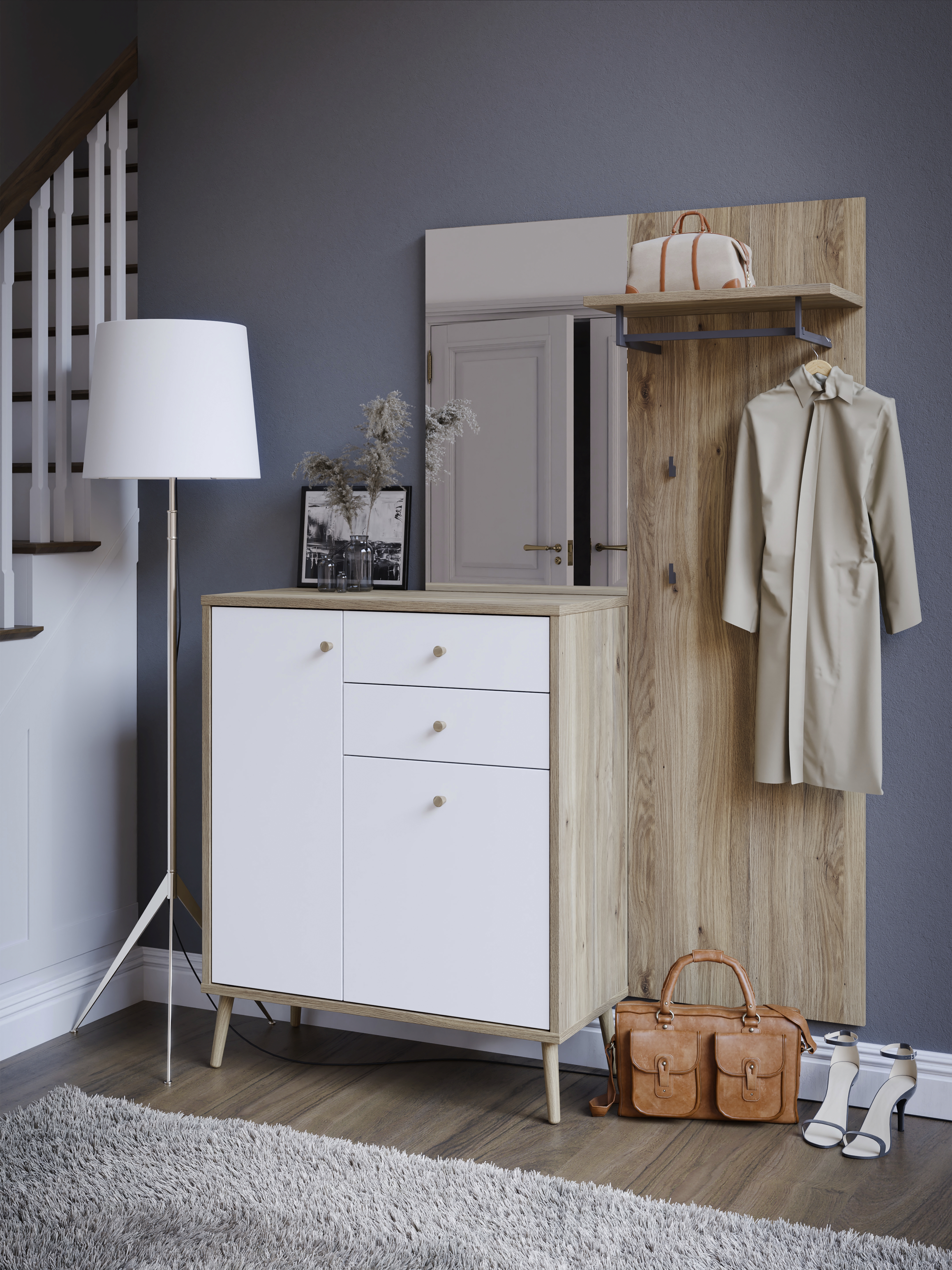 1 Kommode mit 2 Türen, 3 Fachböden und 2 Schubkästen