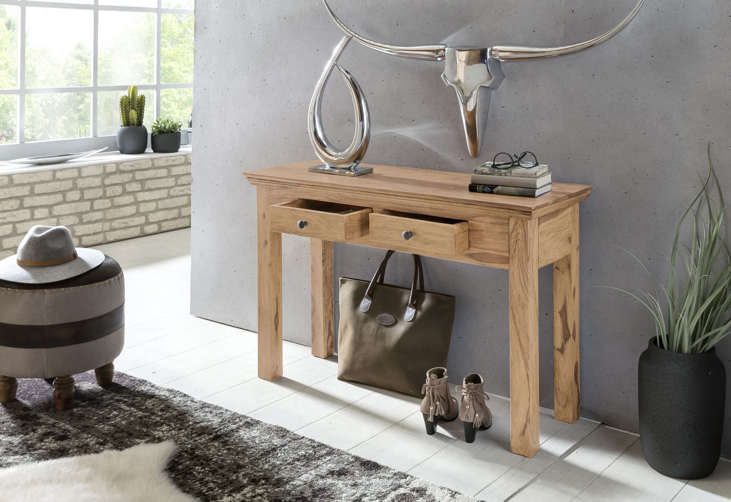 - Tisch mit Ablage und 2 Schubladen aus Akazie Massivholz - Vielseitig einsetzbar im Wohn- und Essbereich