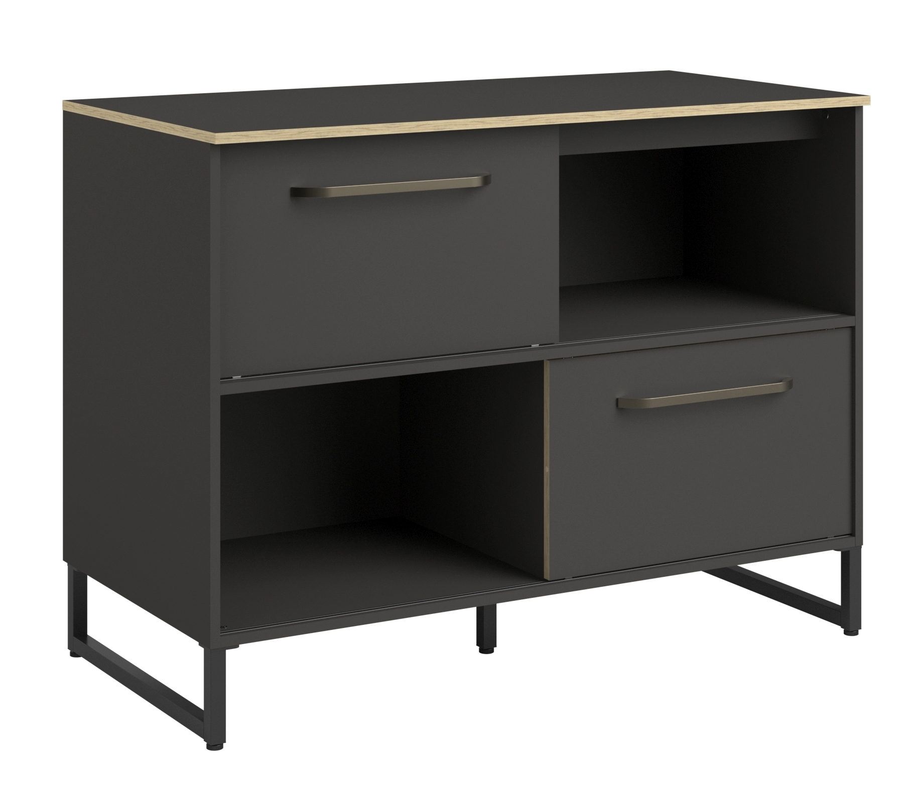 oben 3 offene Fächer, darunter 1 Schubkasten
