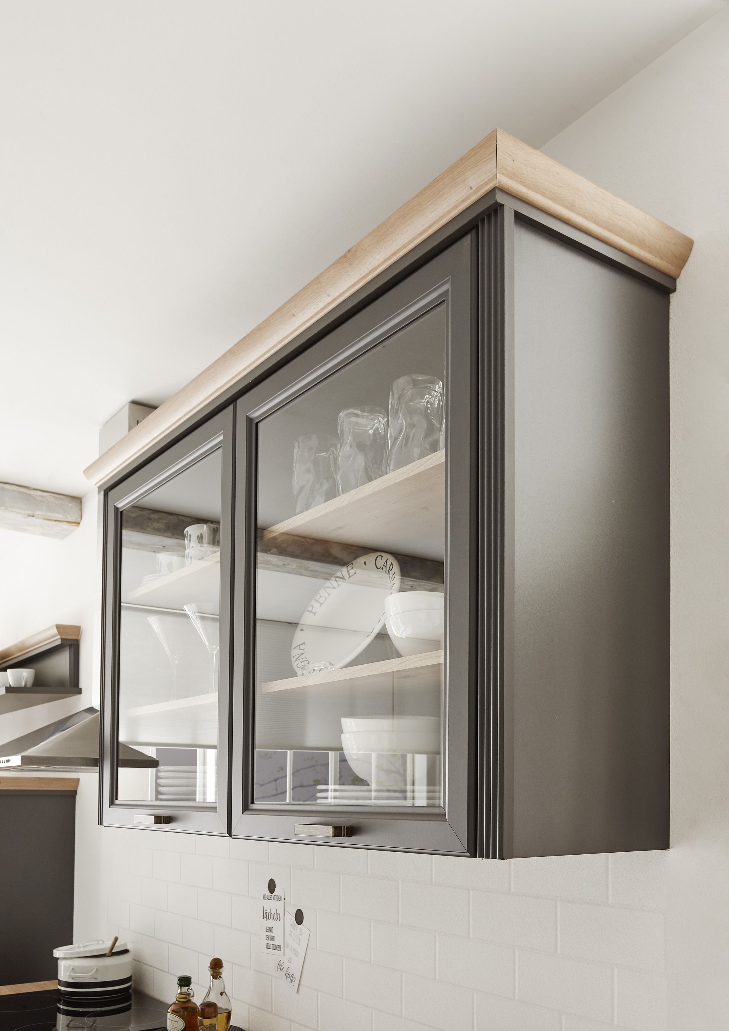 1 Hängeschrank mit 2 Türen mit Glaseinsatz und 4 Böden