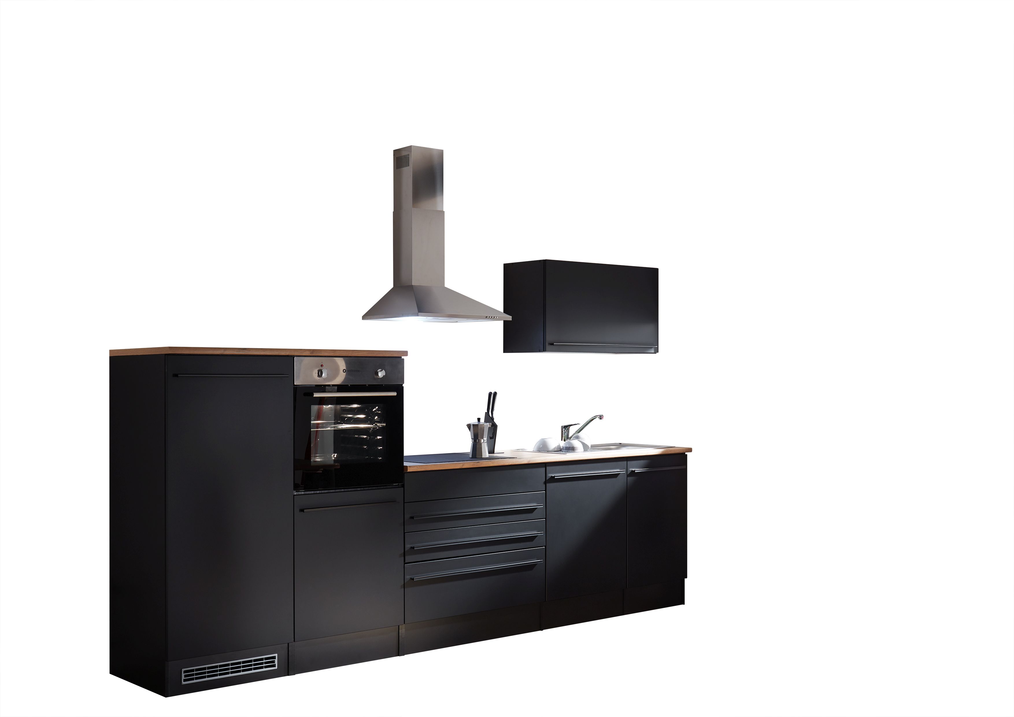 ohne Dekoration / Armatur / Waschbecken / Backofen / Kochfeld / Spülmaschine / Abzugshaube / Kühlschrank