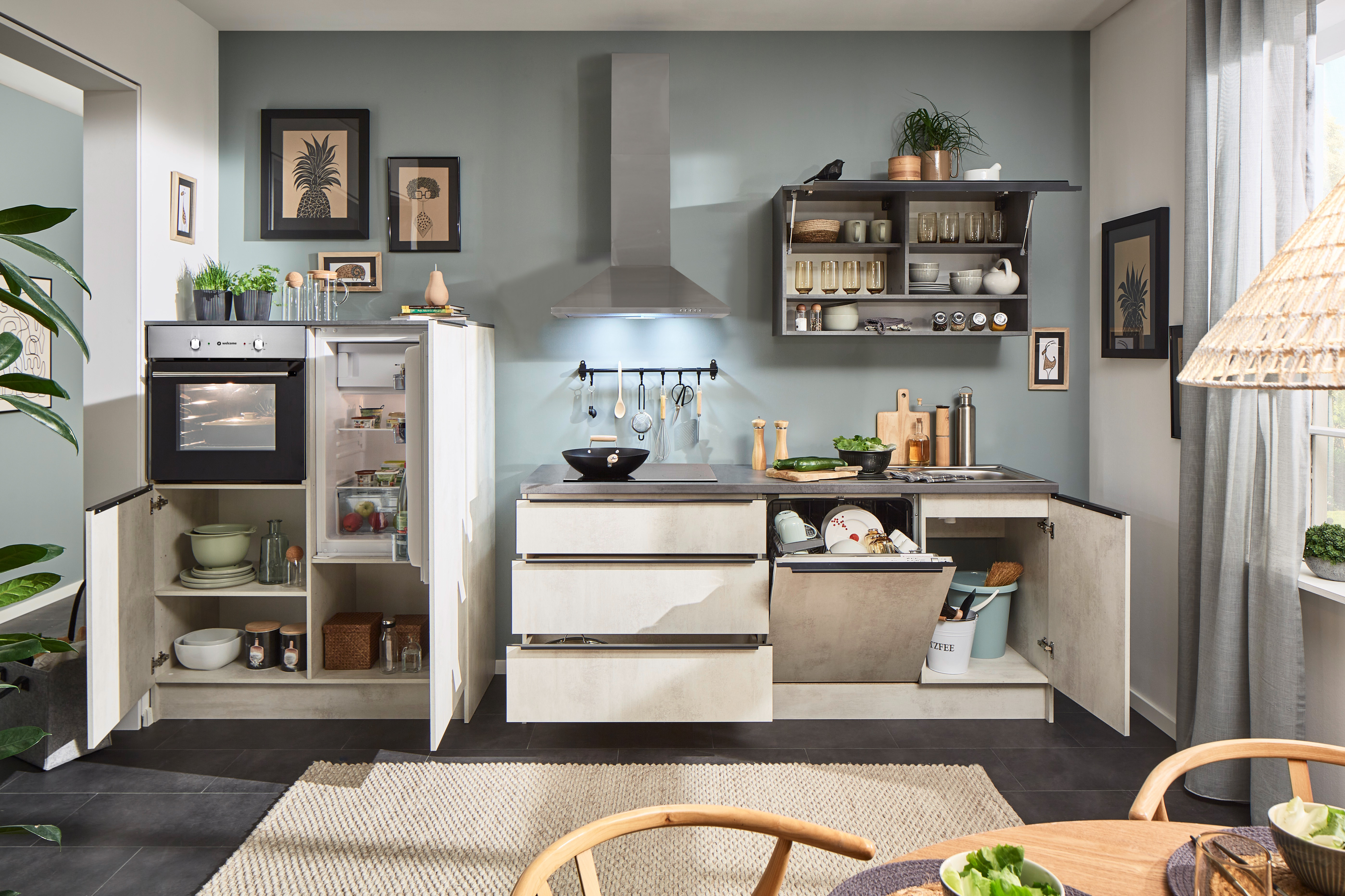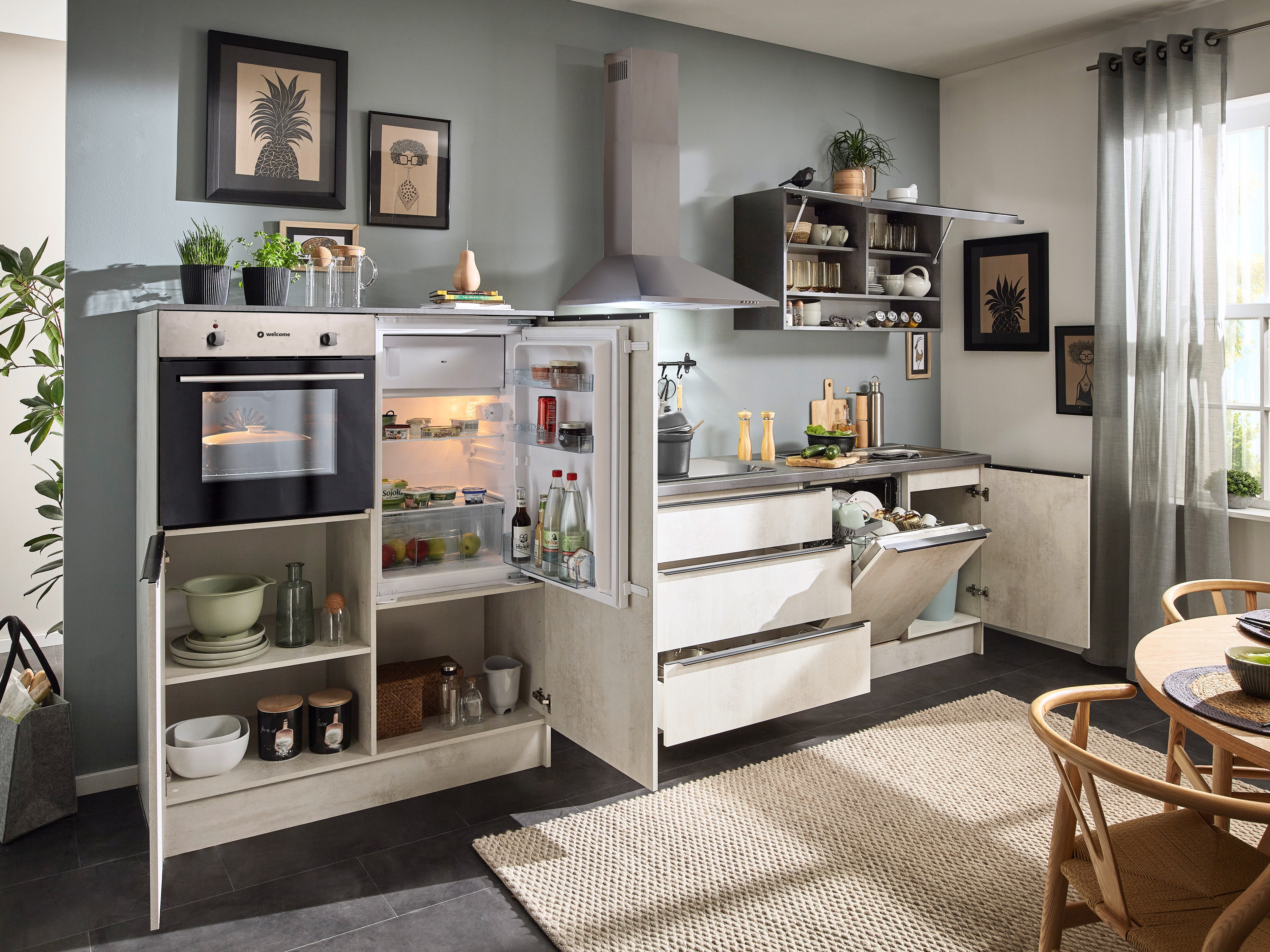 1 Küchenblock mit Elektro-Geräten wie zuvor beschrieben