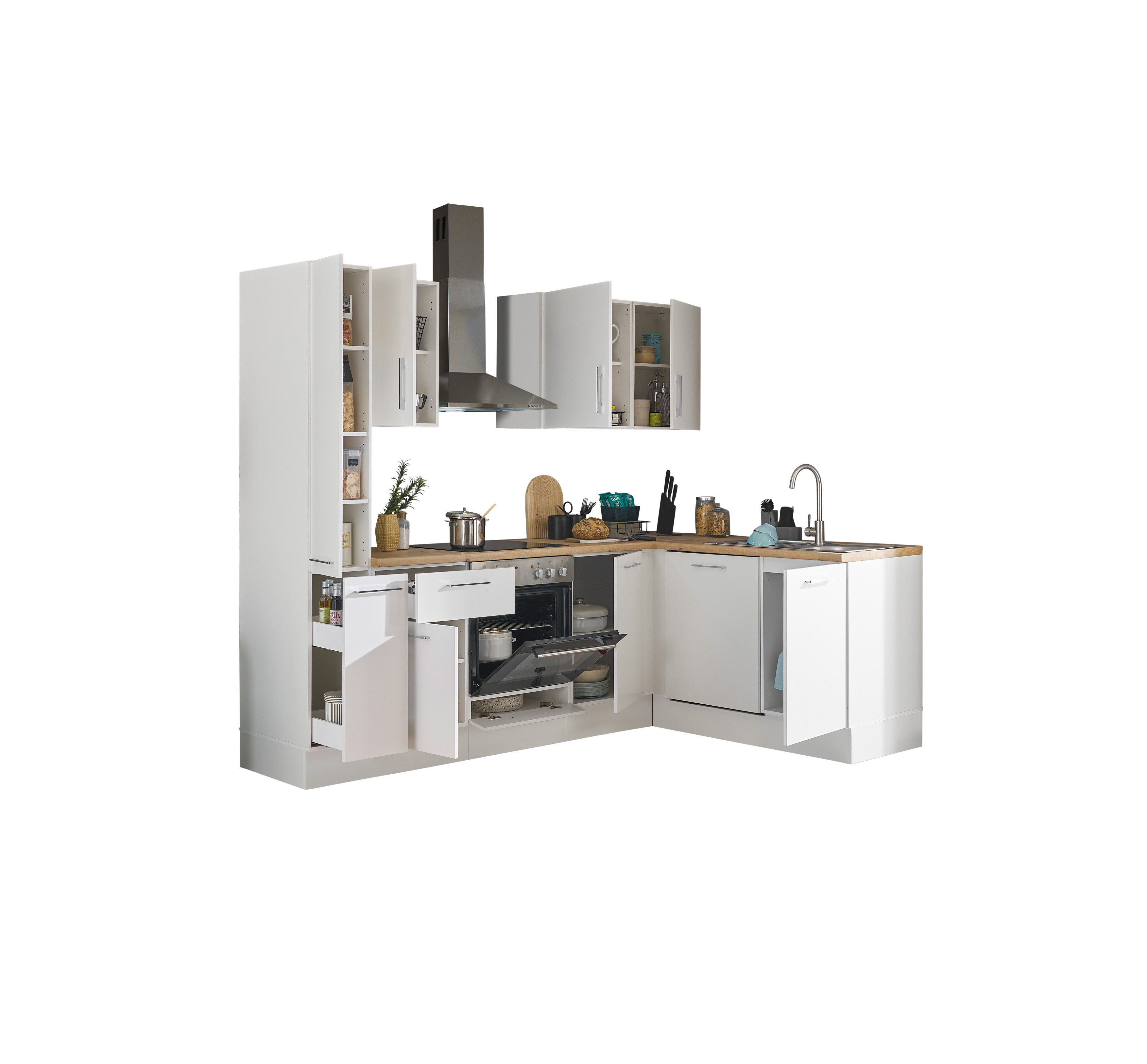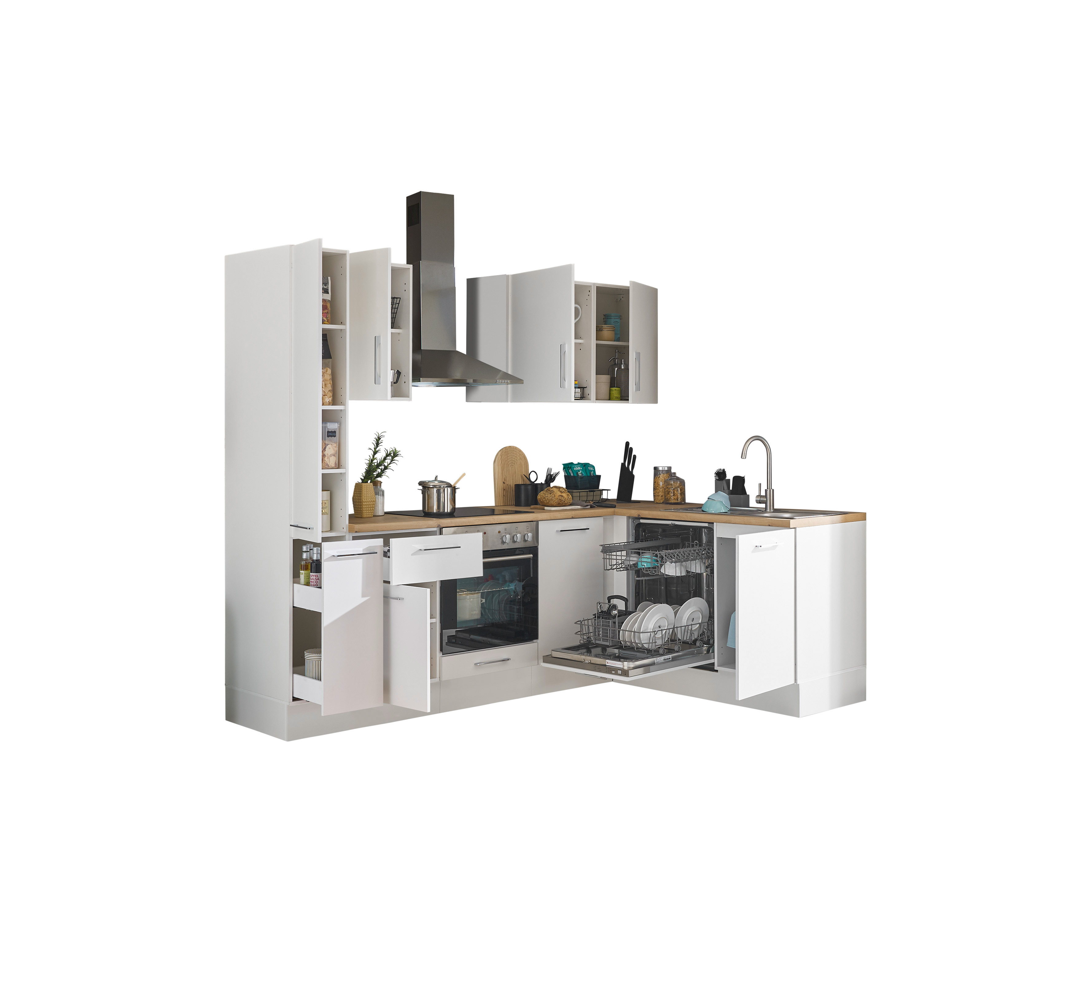 Küchenblock mit E-Geräten CORNWALL (Ecke-Apotheker-Geschirrspüler) I