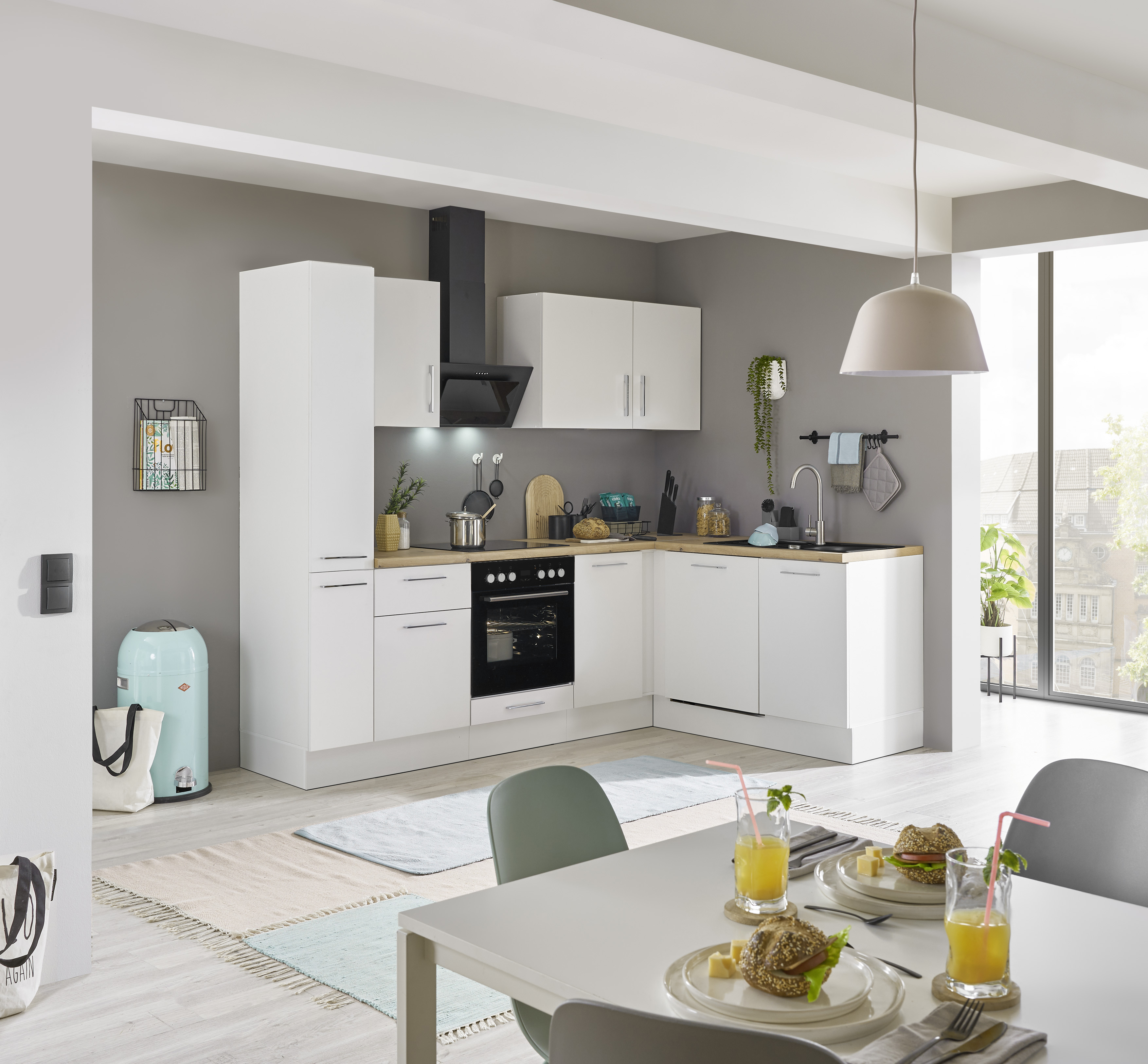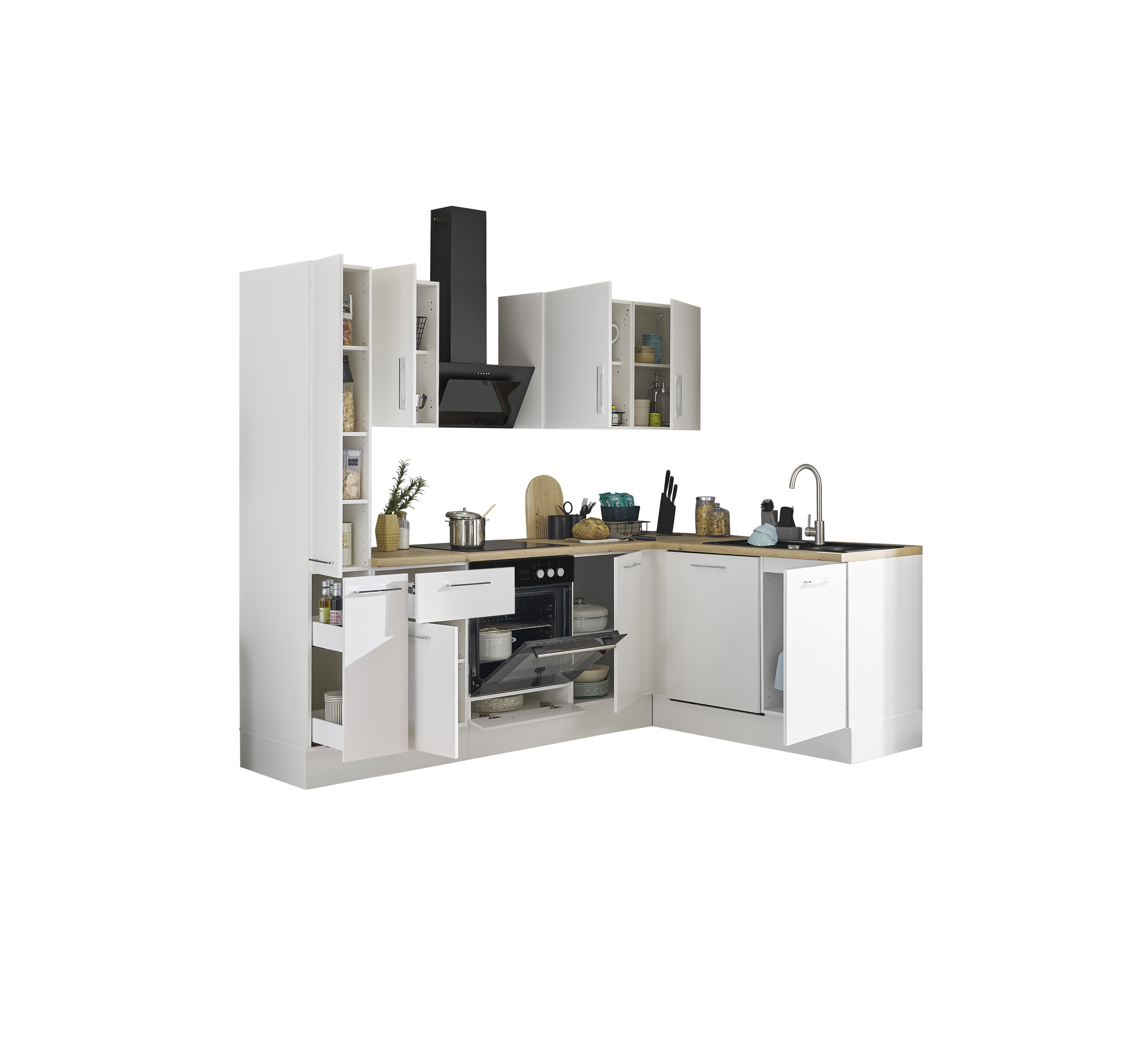 Küchenblock mit E-Geräten CORNWALL (Ecke-Apotheker-Geschirrspüler) II