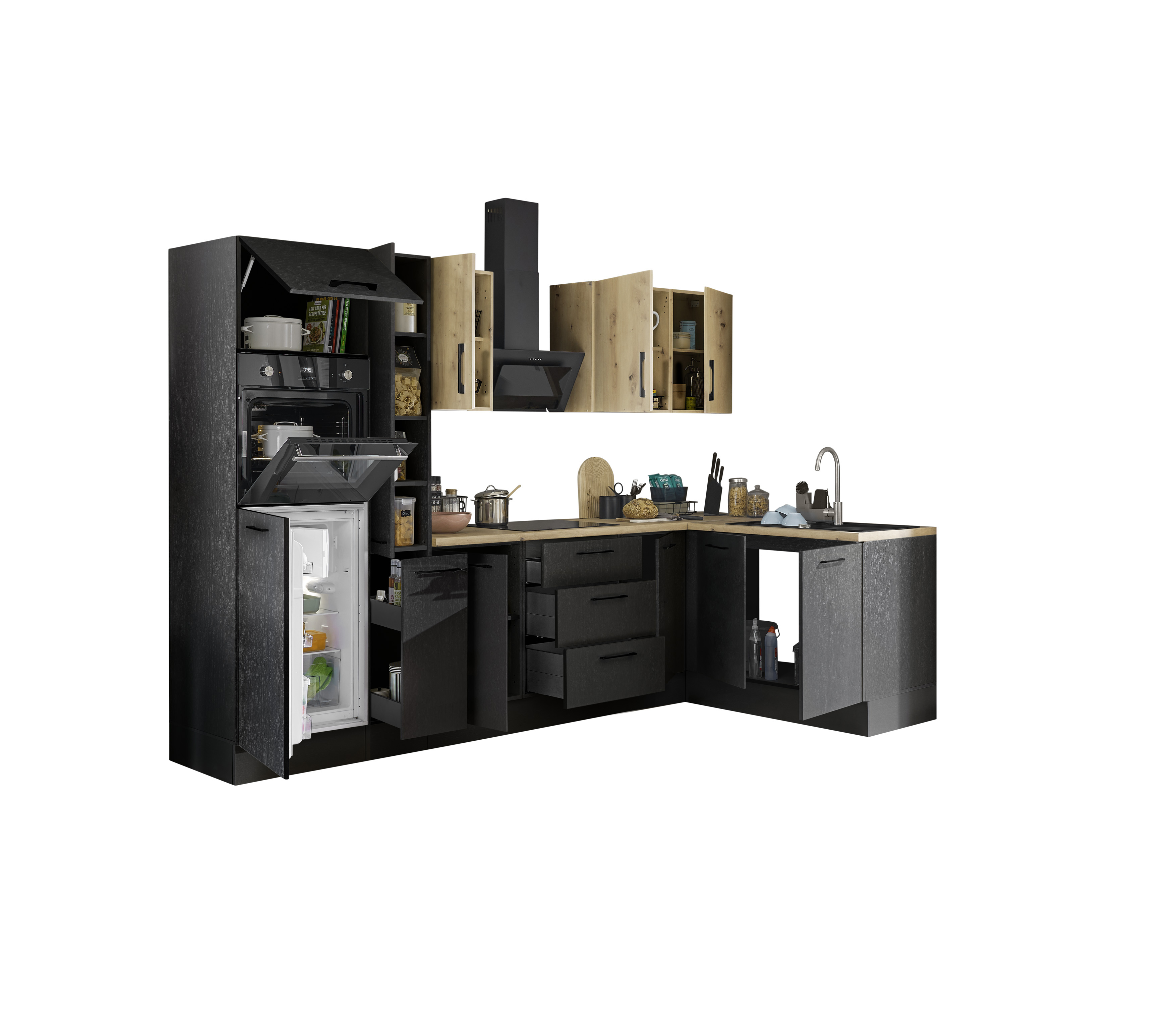 Küchenblock mit E-Geräten CORNWALL (Ecke-Backofen-Kühlschrank-Apotheker) VI