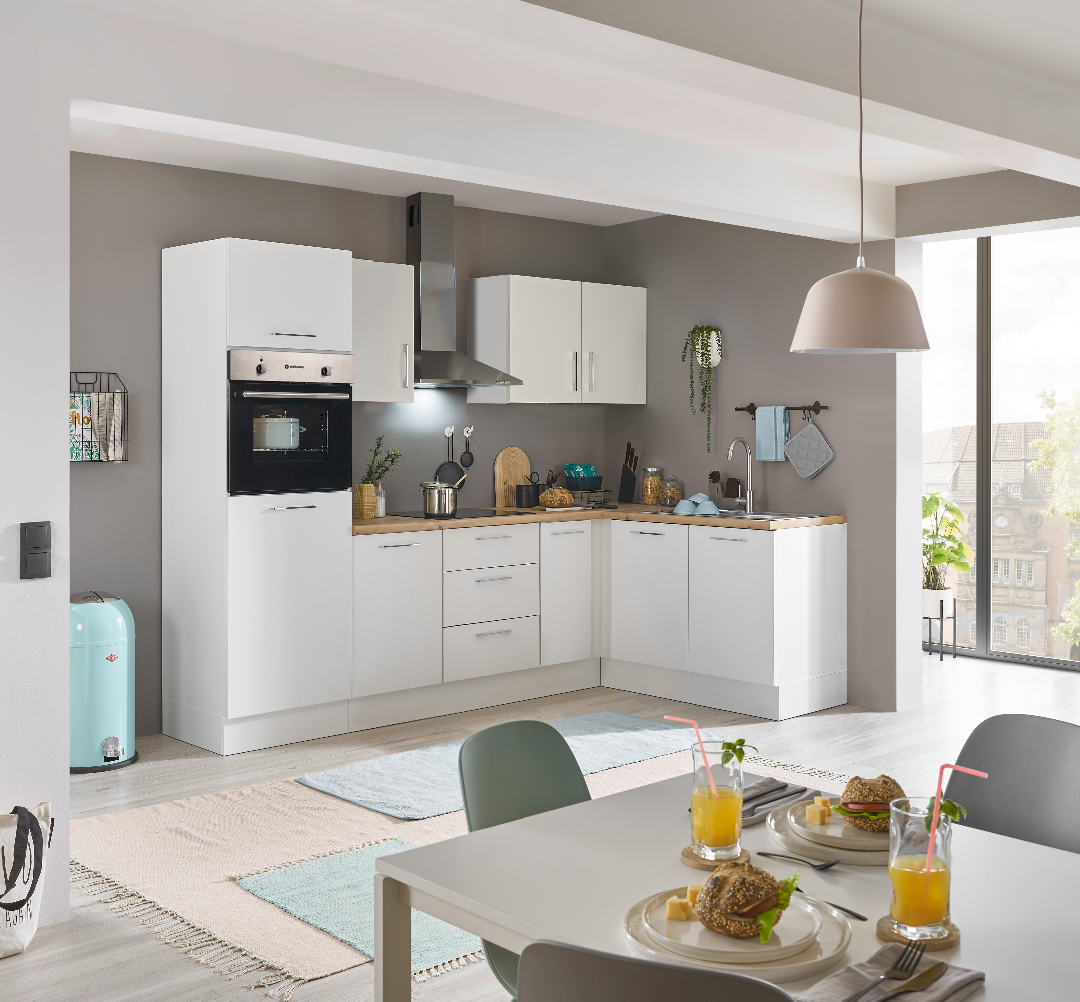 Küchenblock mit E-Geräten CORNWALL (Ecke-Backofen-Kühlschrank) I