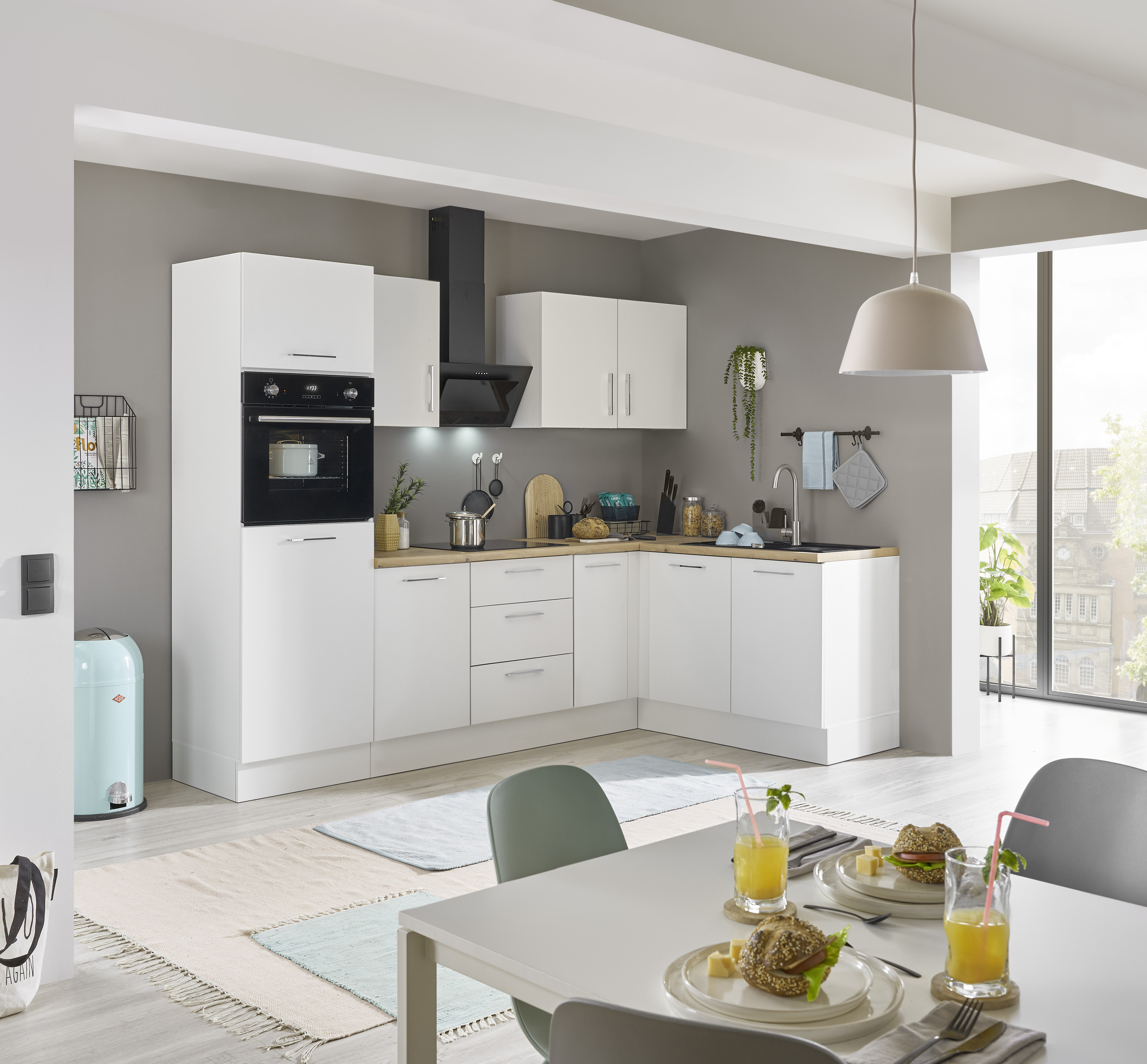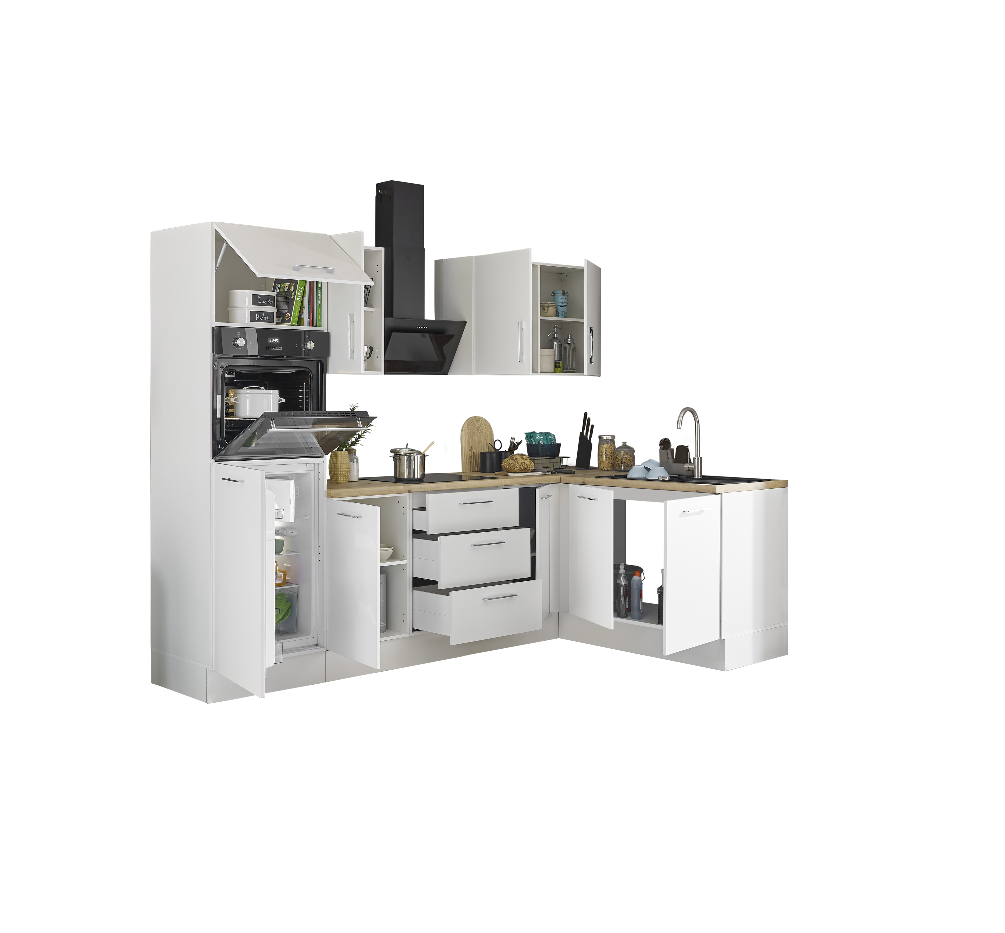 Küchenblock mit E-Geräten CORNWALL (Ecke-Backofen-Kühlschrank) II