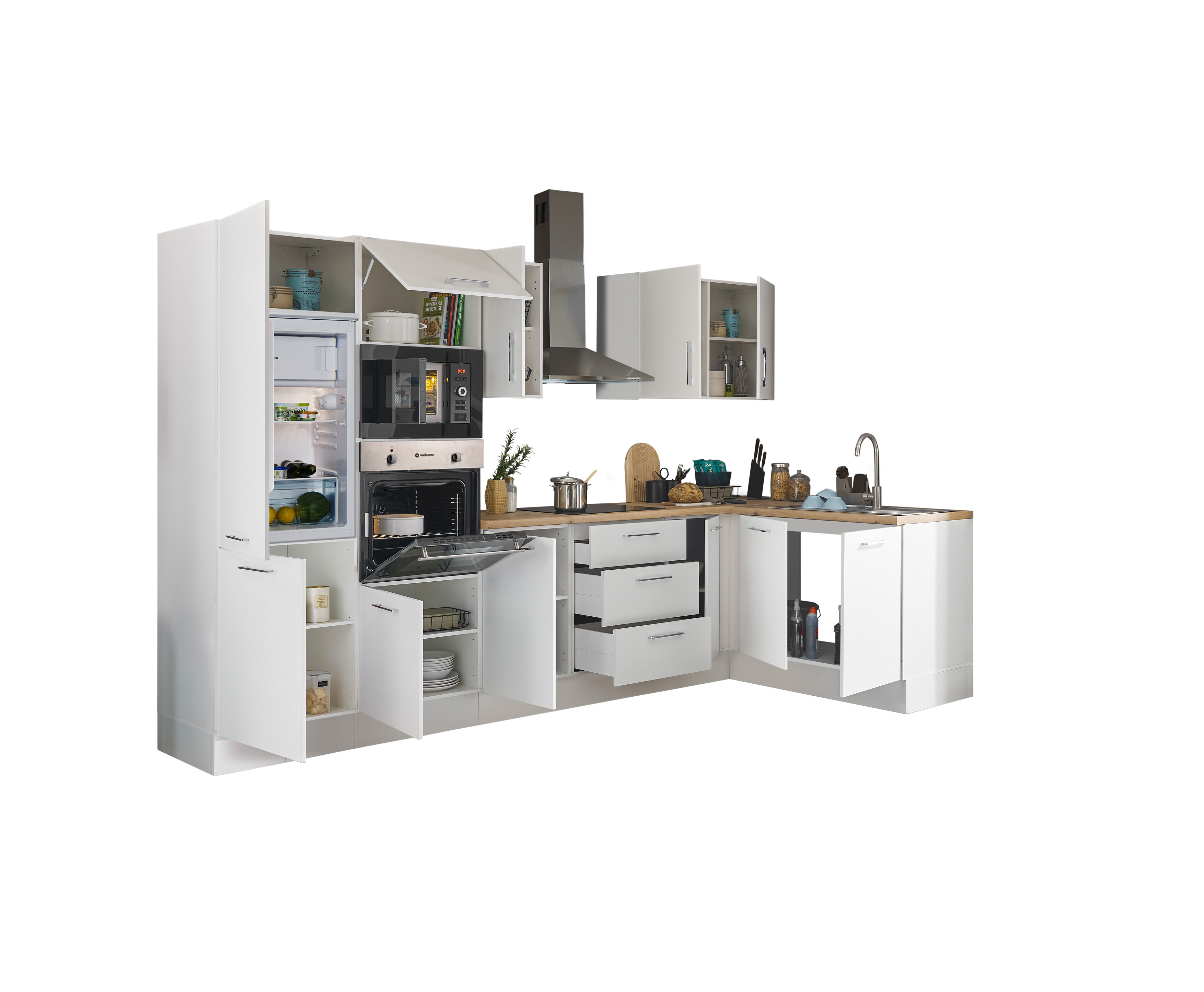 Küchenblock mit E-Geräten CORNWALL (Ecke-Backofen-Kühlschrank-Mikrowelle) I