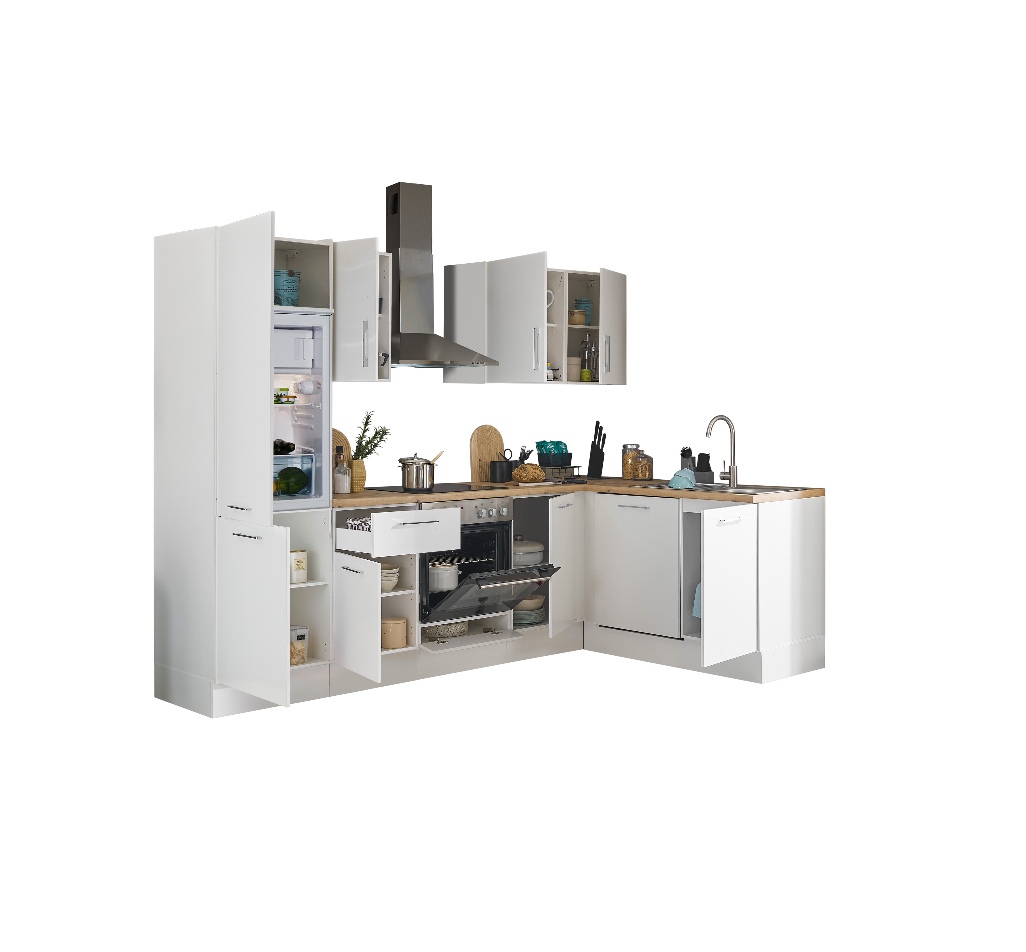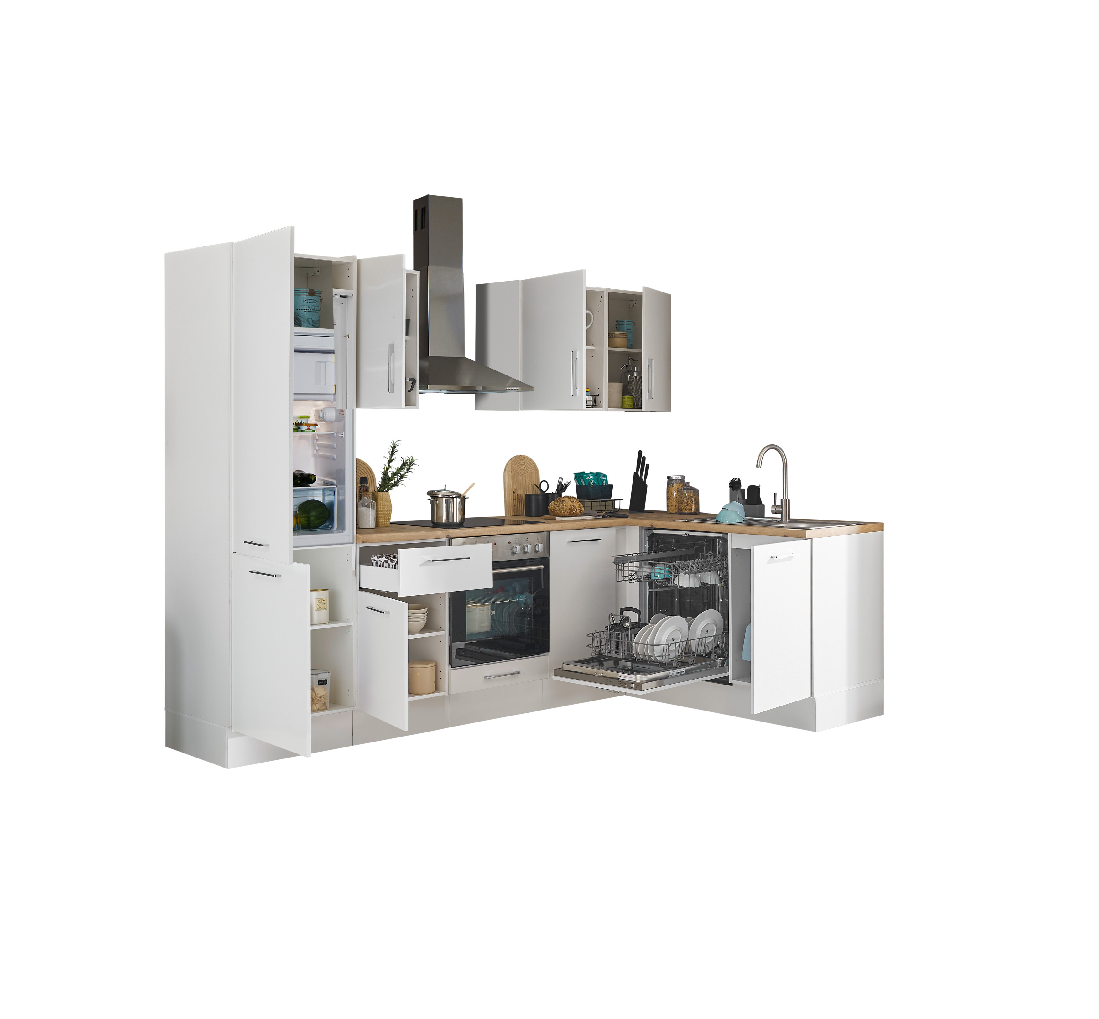 Küchenblock mit E-Geräten CORNWALL (Ecke-Geschirrspüler-Kühlschrank) I