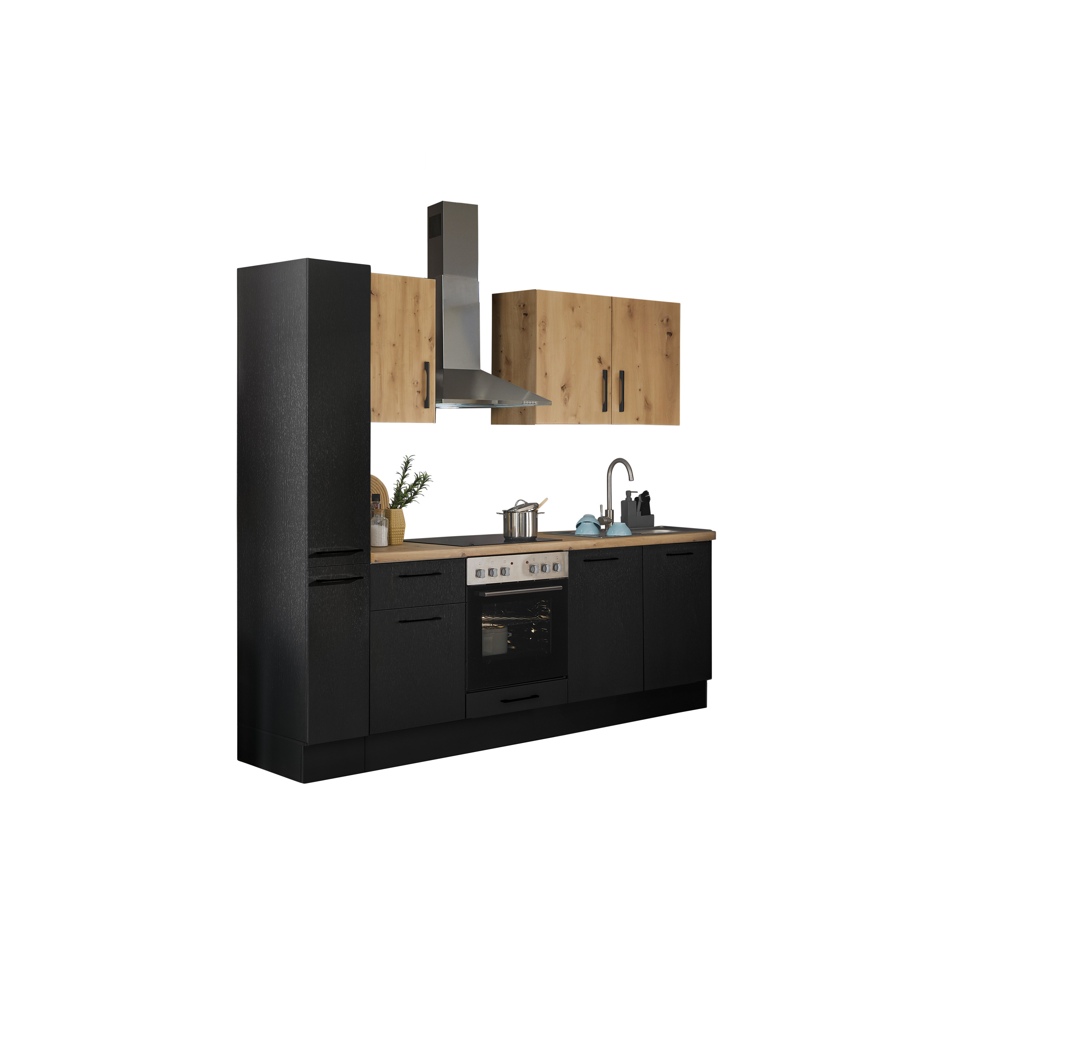 Front und Korpus: schwarz matt woodprint kombiniert mit Spanplatte Artisan Eiche Holznachbildung melaminbeschichtet