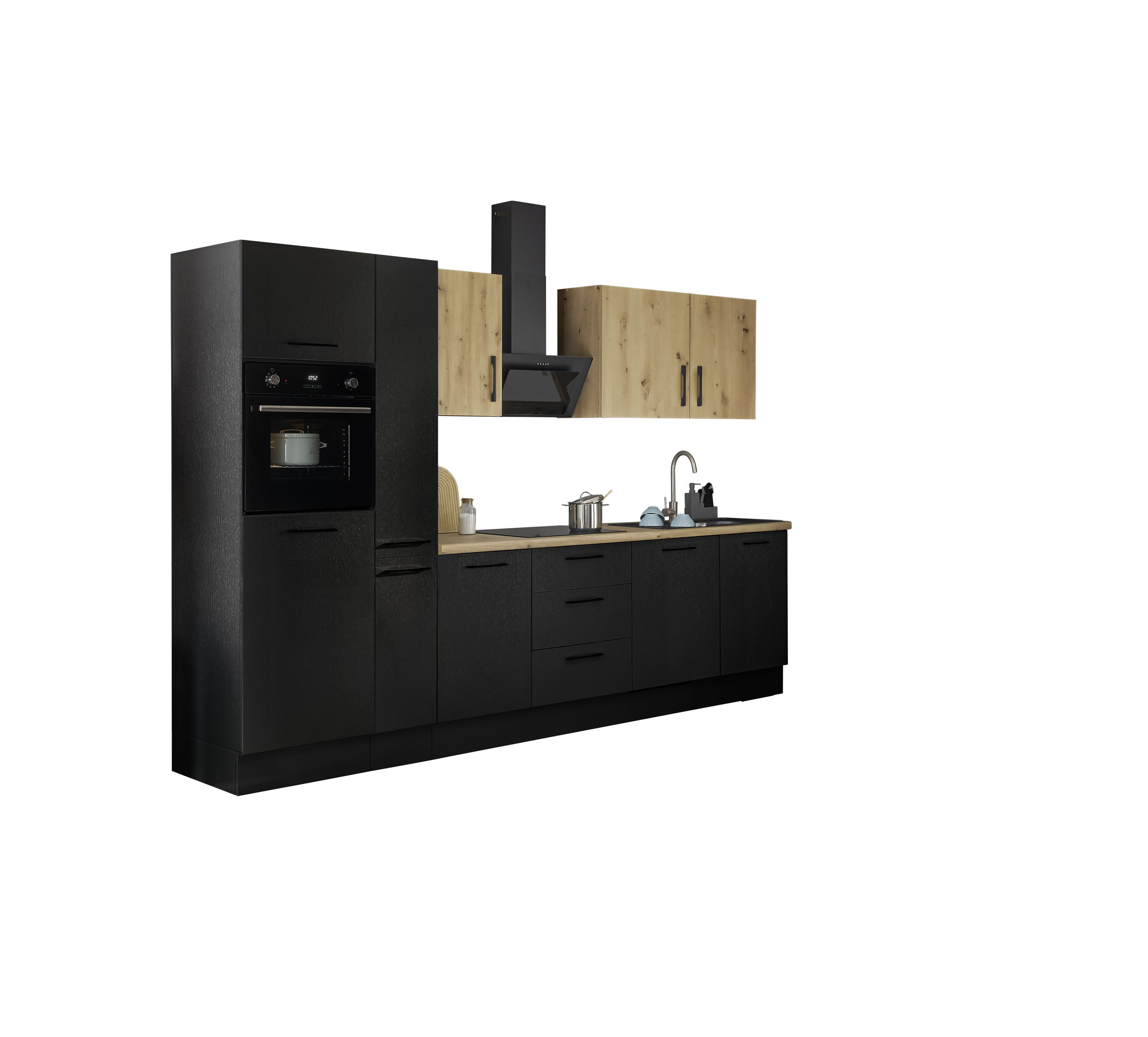 Front und Korpus: schwarz matt woodprint kombiniert mit Spanplatte Artisan Eiche Holznachbildung melaminbeschichtet