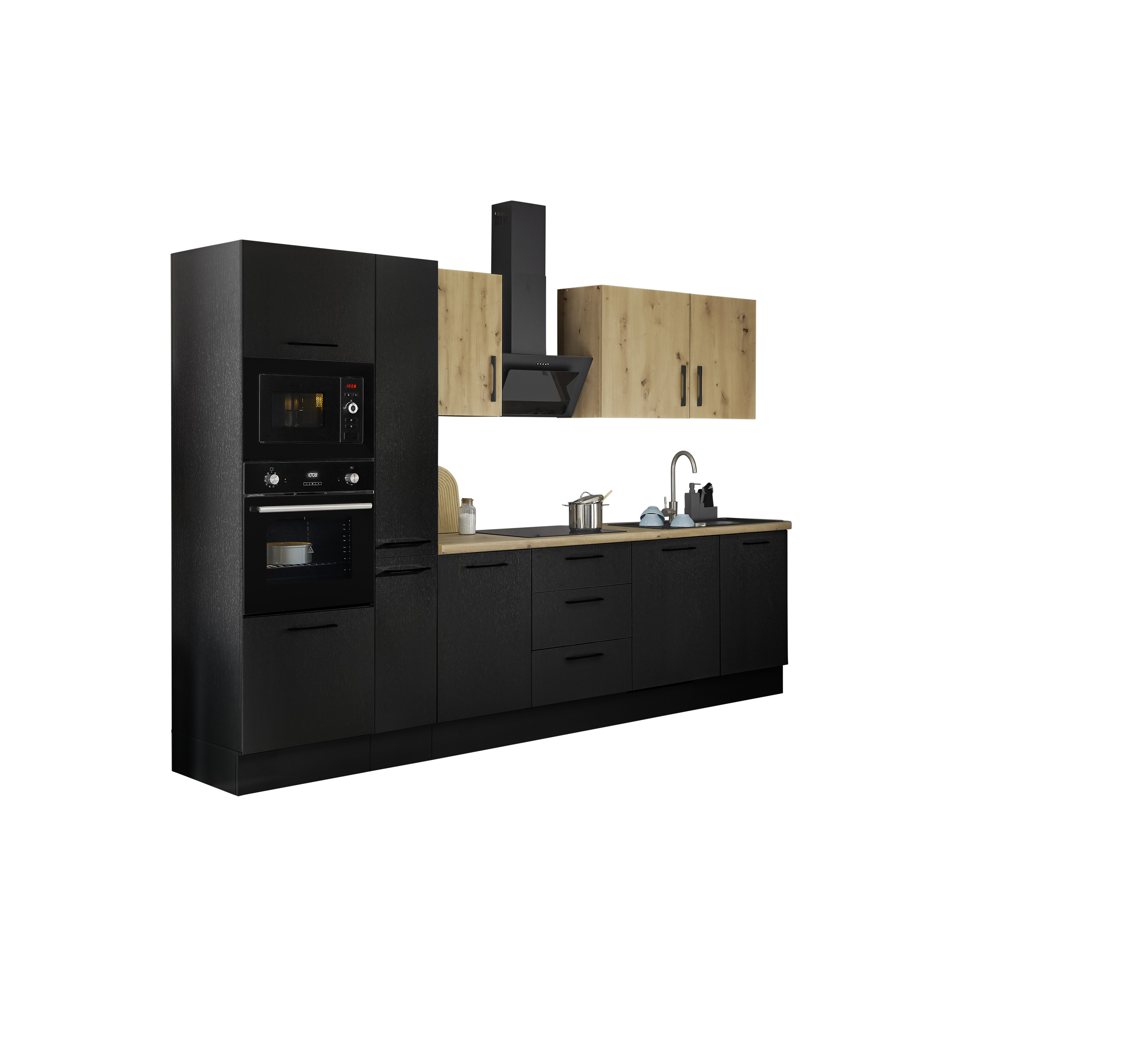 Front und Korpus: schwarz matt woodprint kombiniert mit Spanplatte Artisan Eiche Holznachbildung melaminbeschichtet