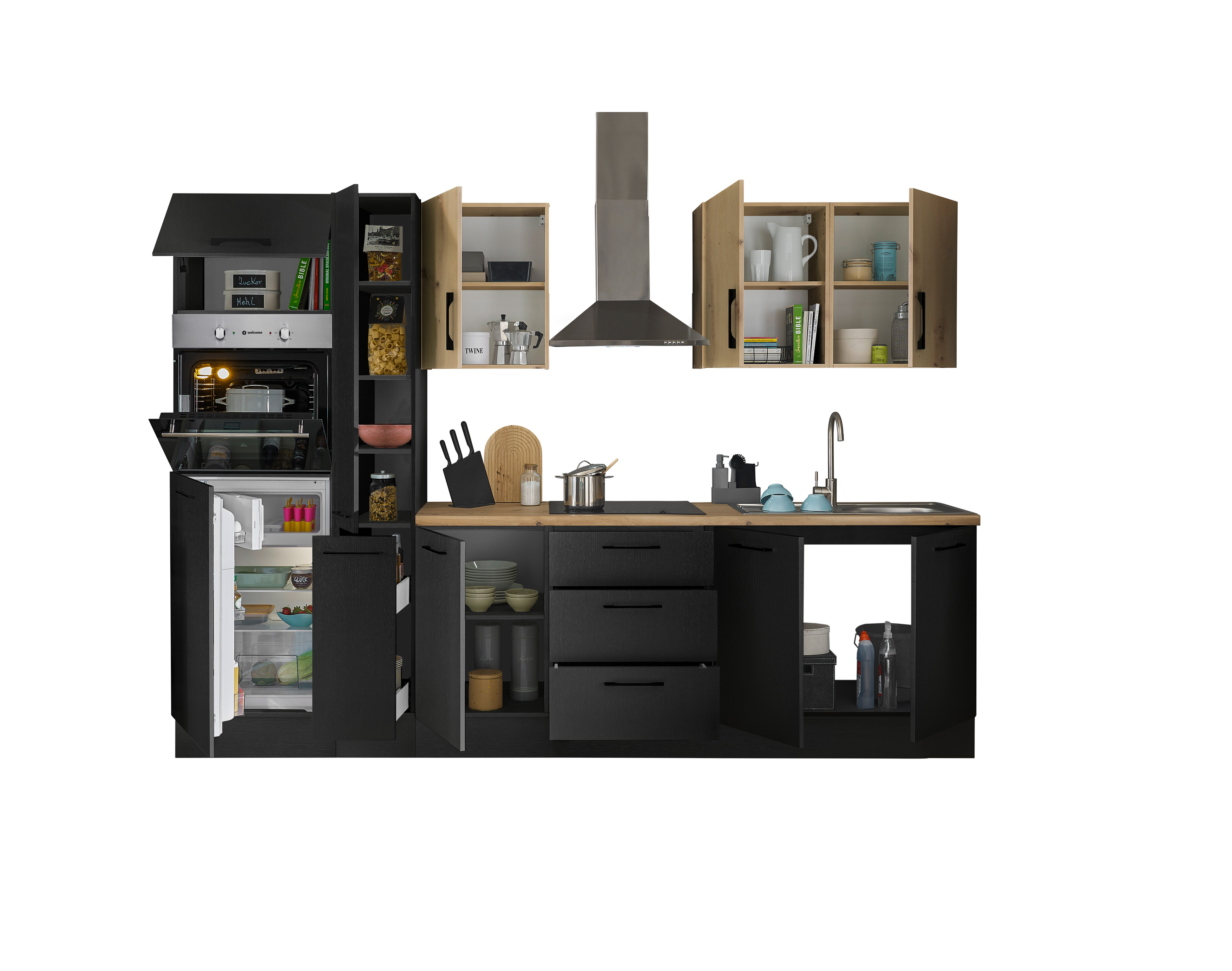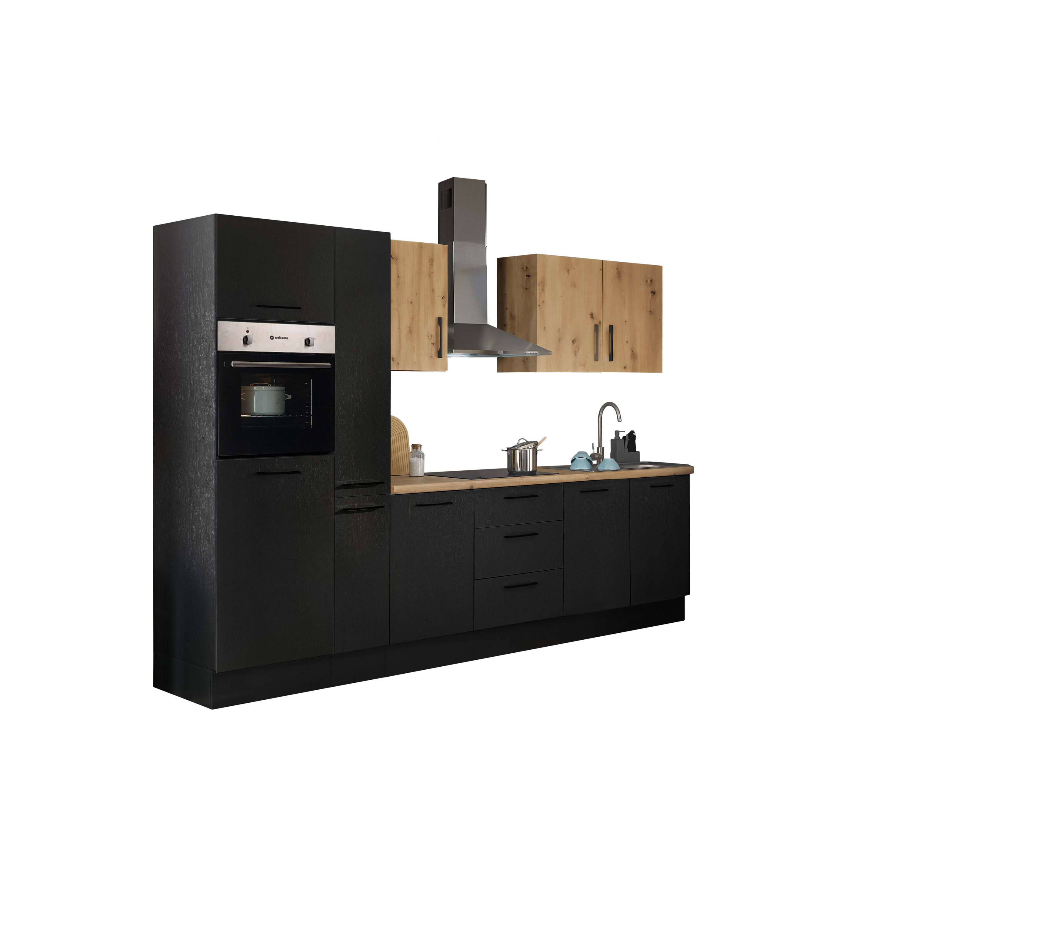 Front und Korpus: schwarz matt woodprint kombiniert mit Spanplatte Artisan Eiche Holznachbildung melaminbeschichtet