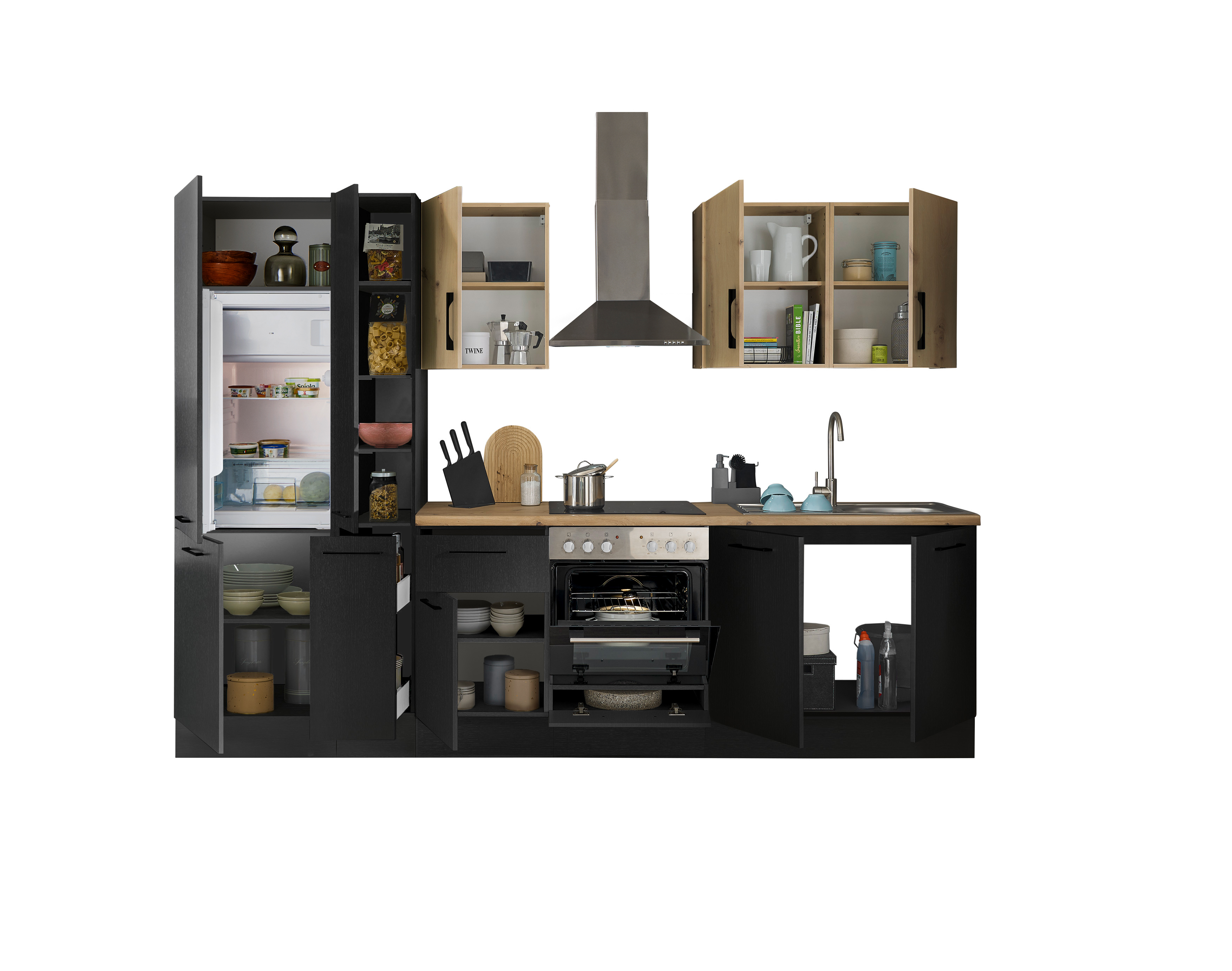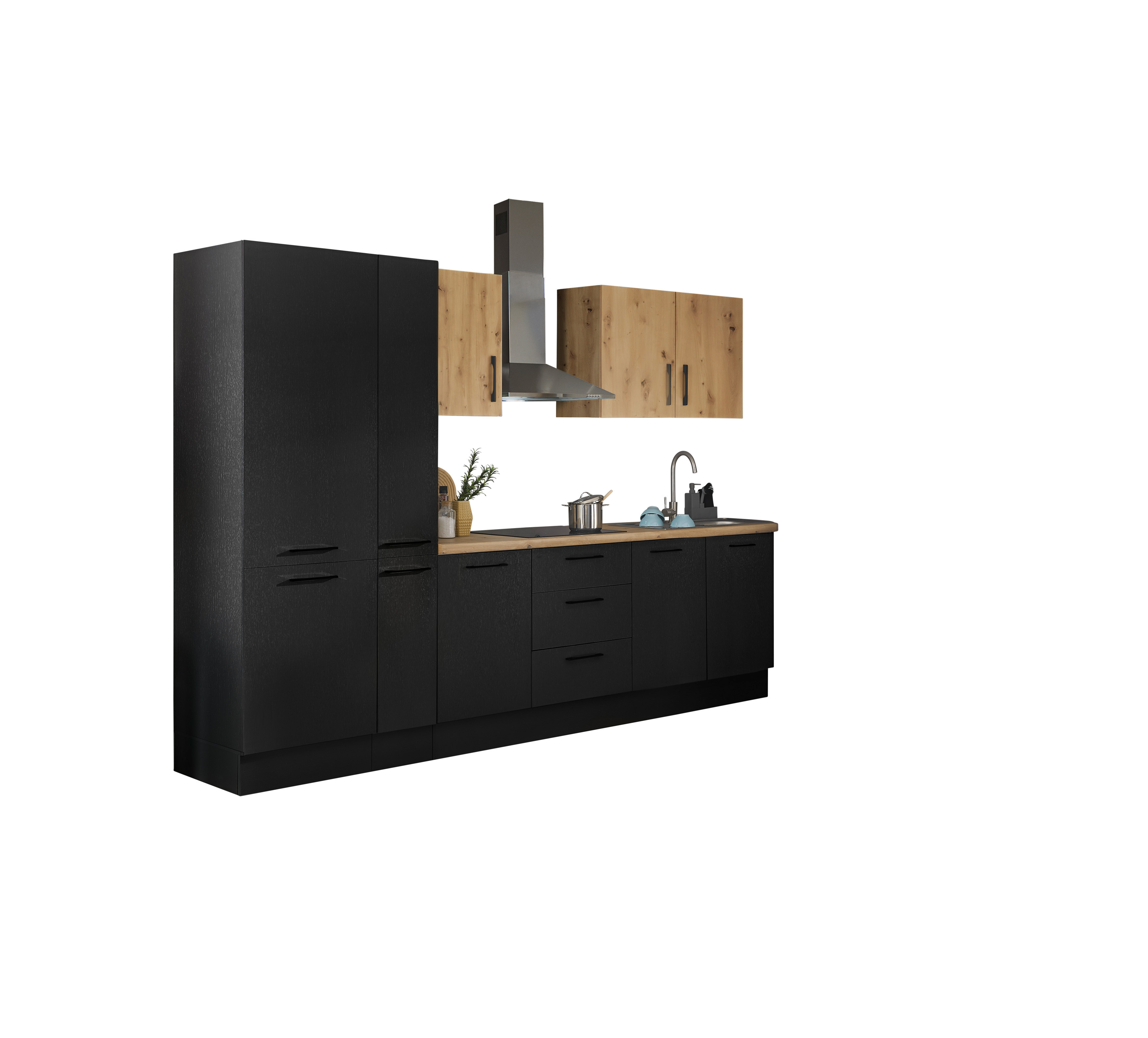 Front und Korpus: schwarz matt woodprint kombiniert mit Spanplatte Artisan Eiche Holznachbildung melaminbeschichtet