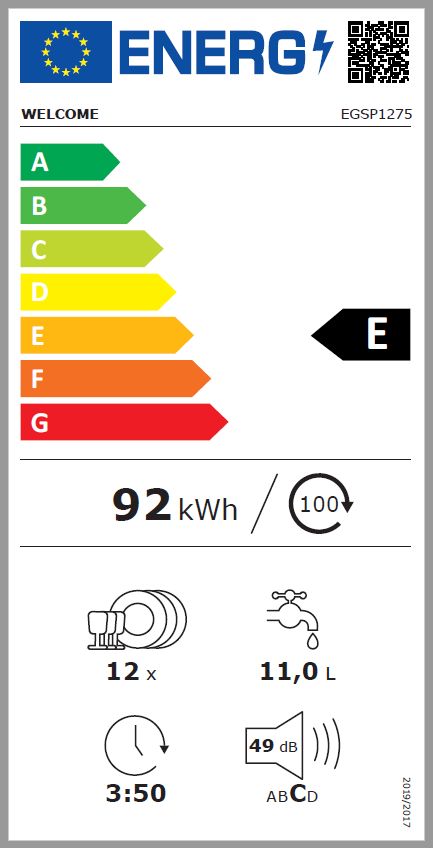 jährlicher Energieverbrauch: 92 kWh / Jahr