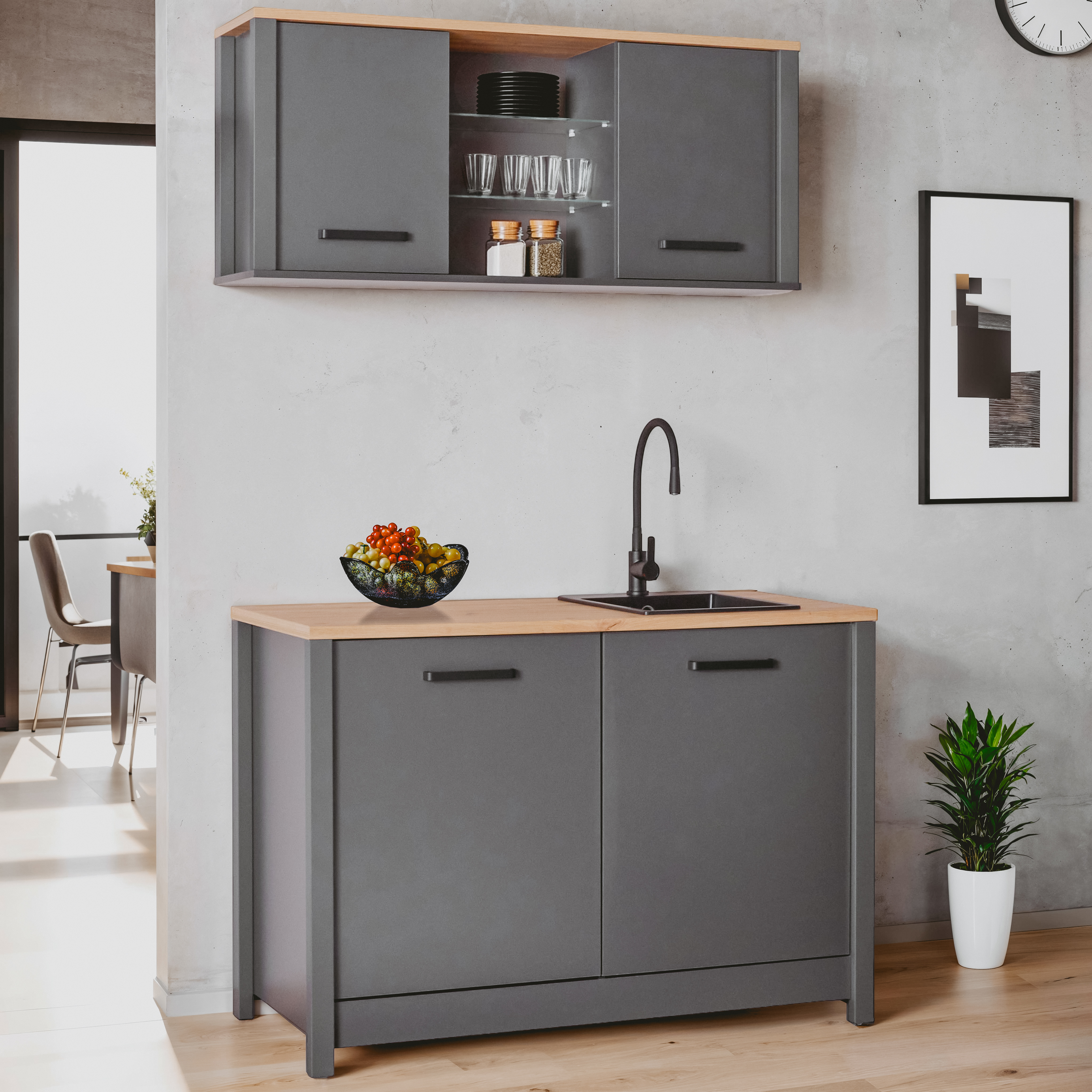 Front und Korpus: MDF (Mitteldichte Holzfaserplatte) Spanplatte in Anthrazit