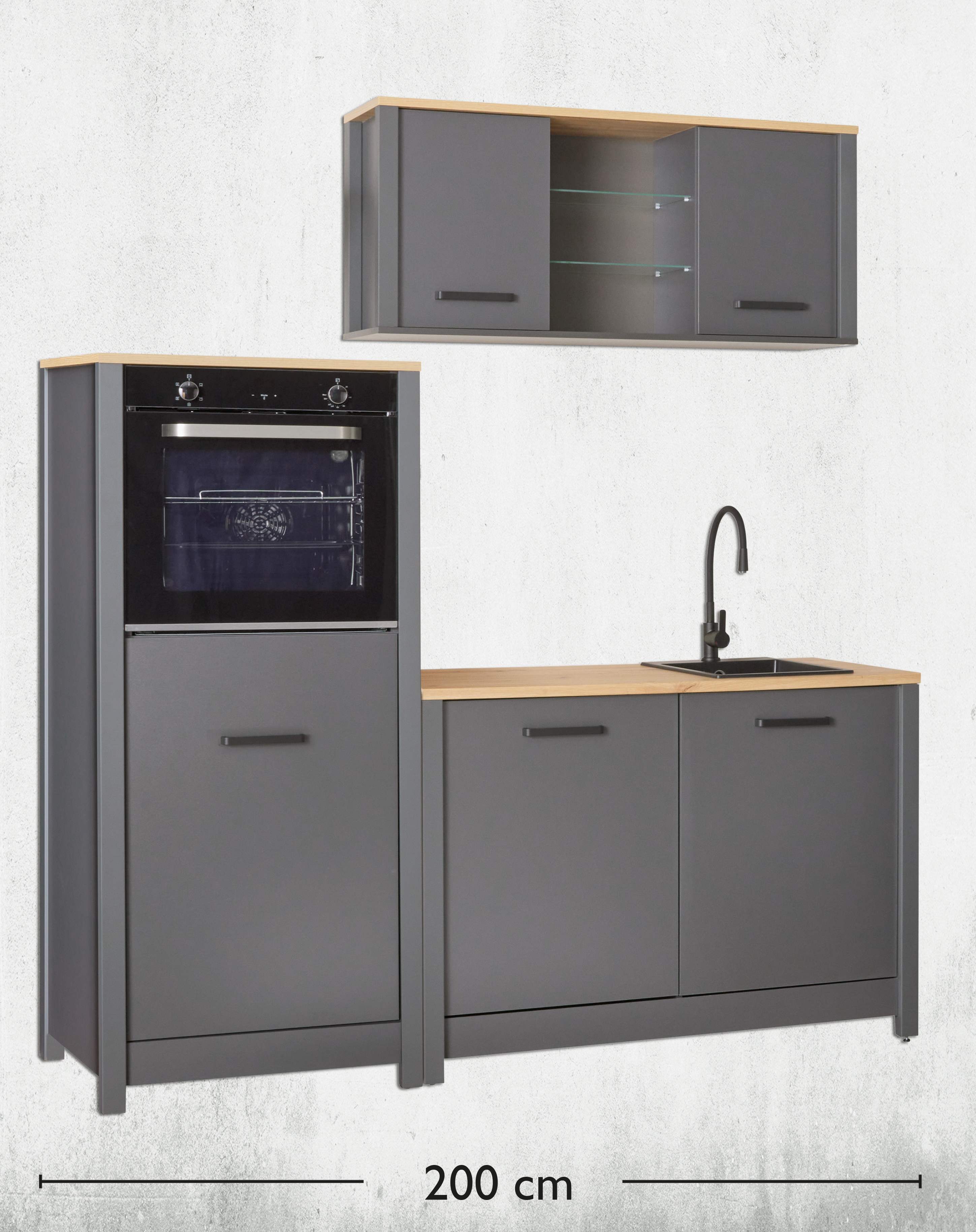 - Platz für Einbaubackofen und Einbaukühlschrank