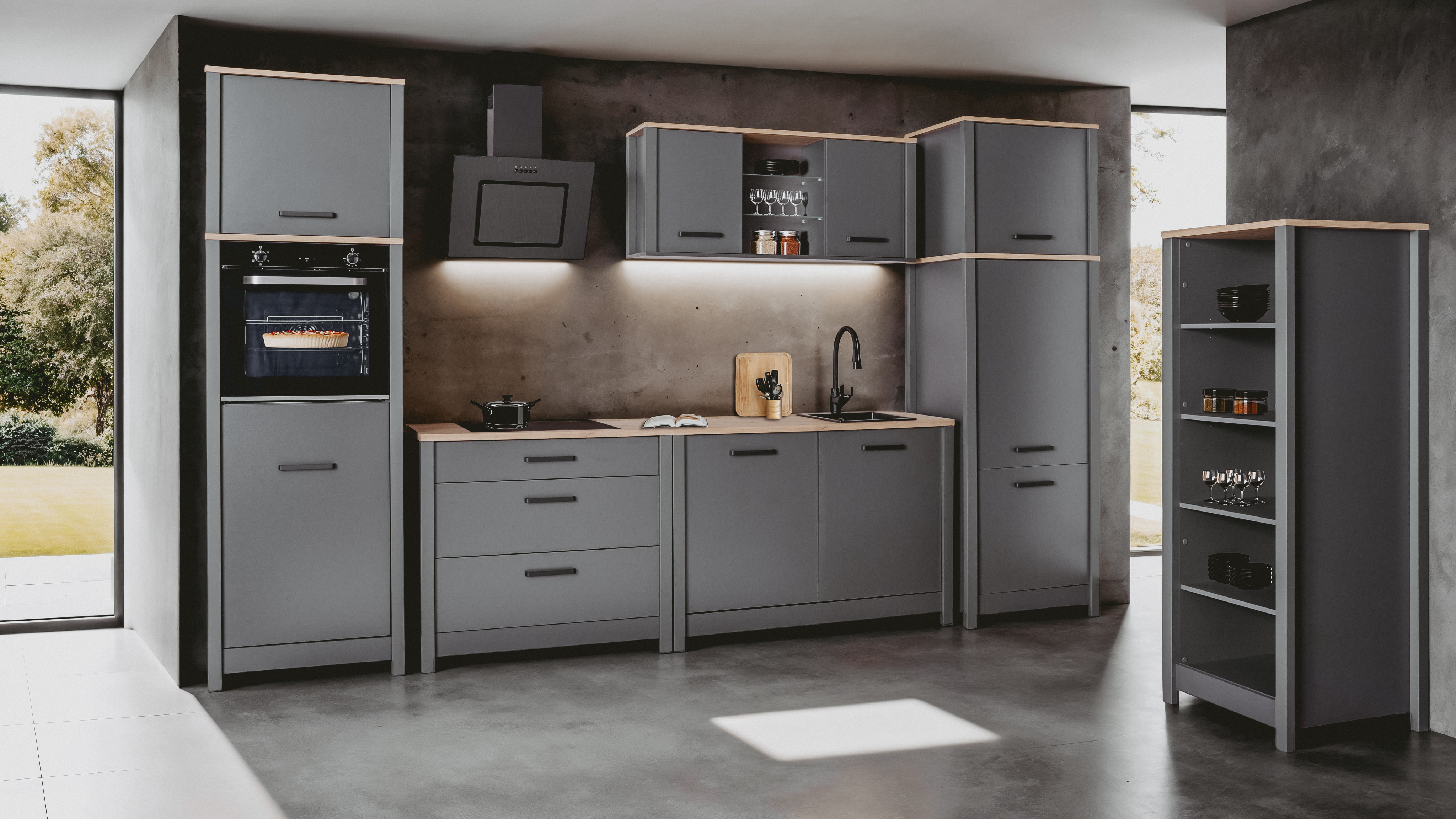 - Platz für Einbaubackofen und Einbaukühlschrank