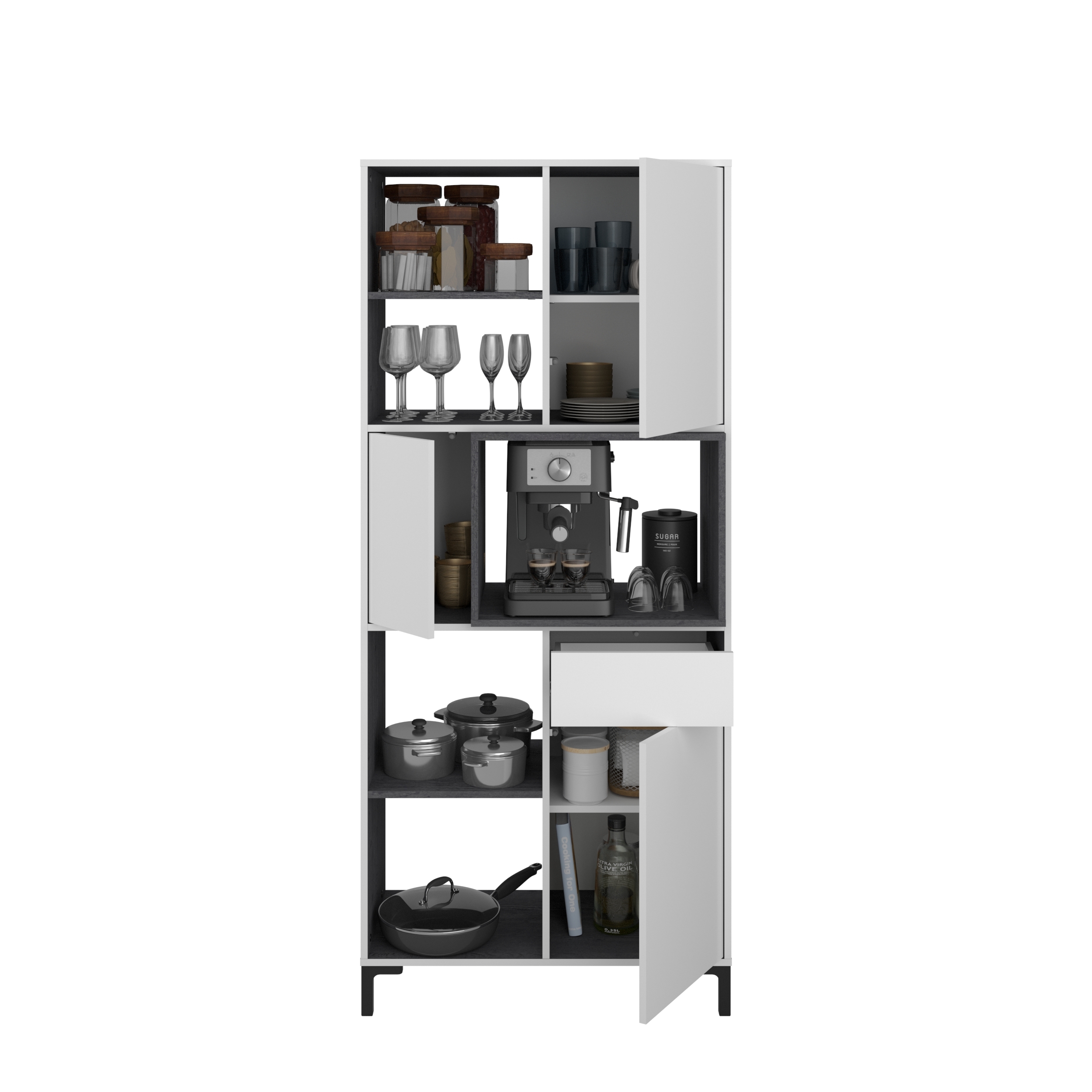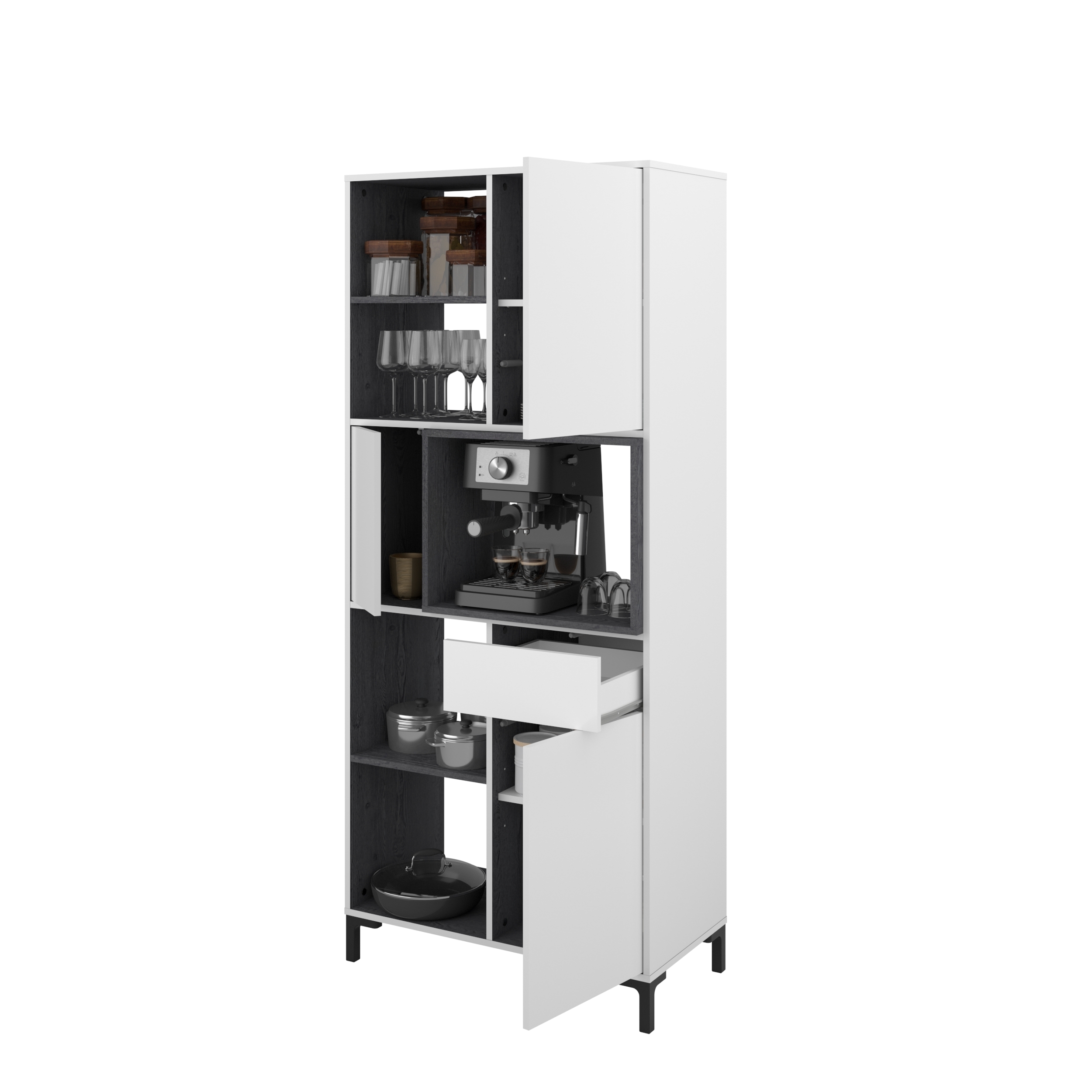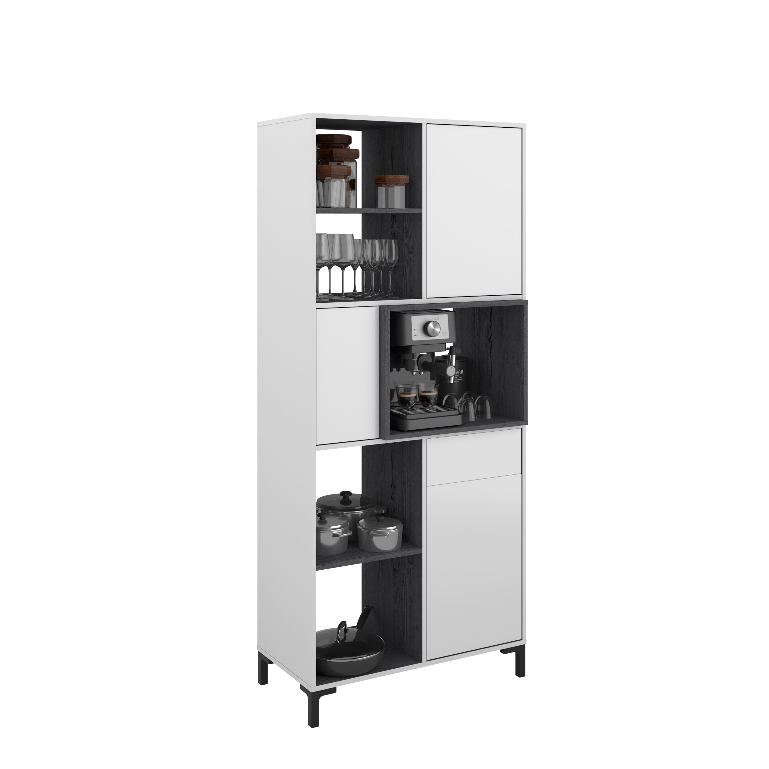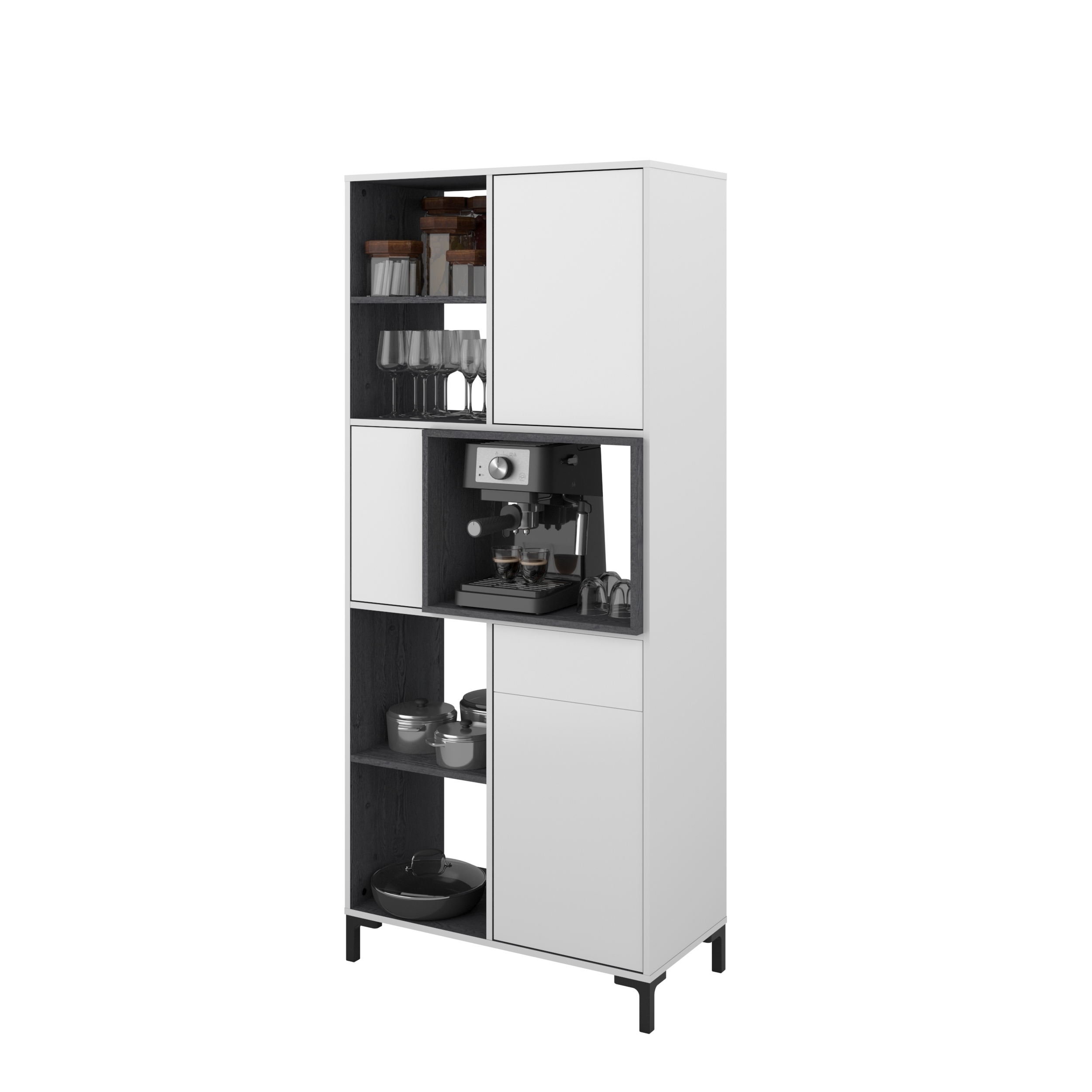 mittig: 1 Tür links / Nischenfach zum Beispiel für Mikrowelle oder Kaffeemaschine