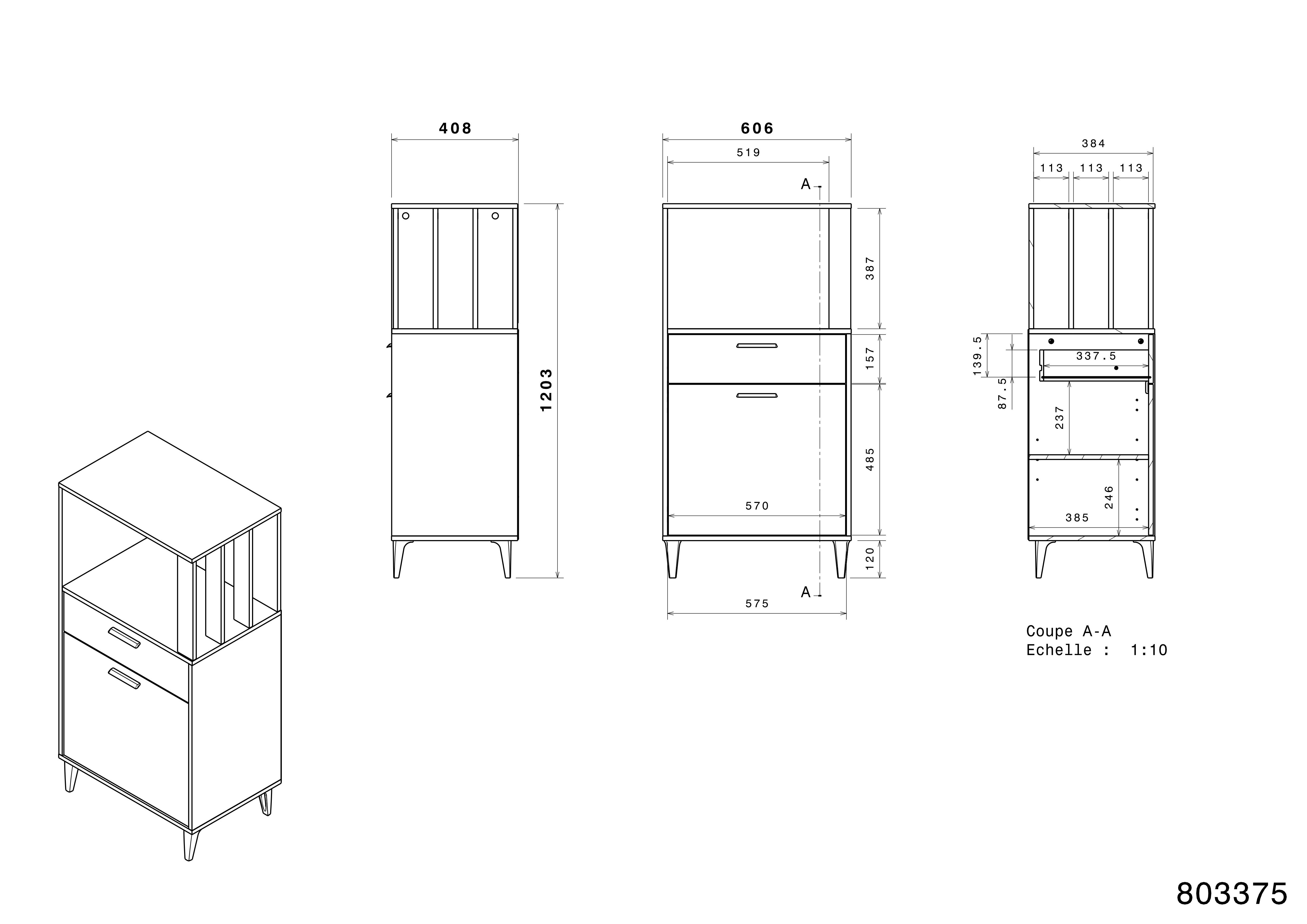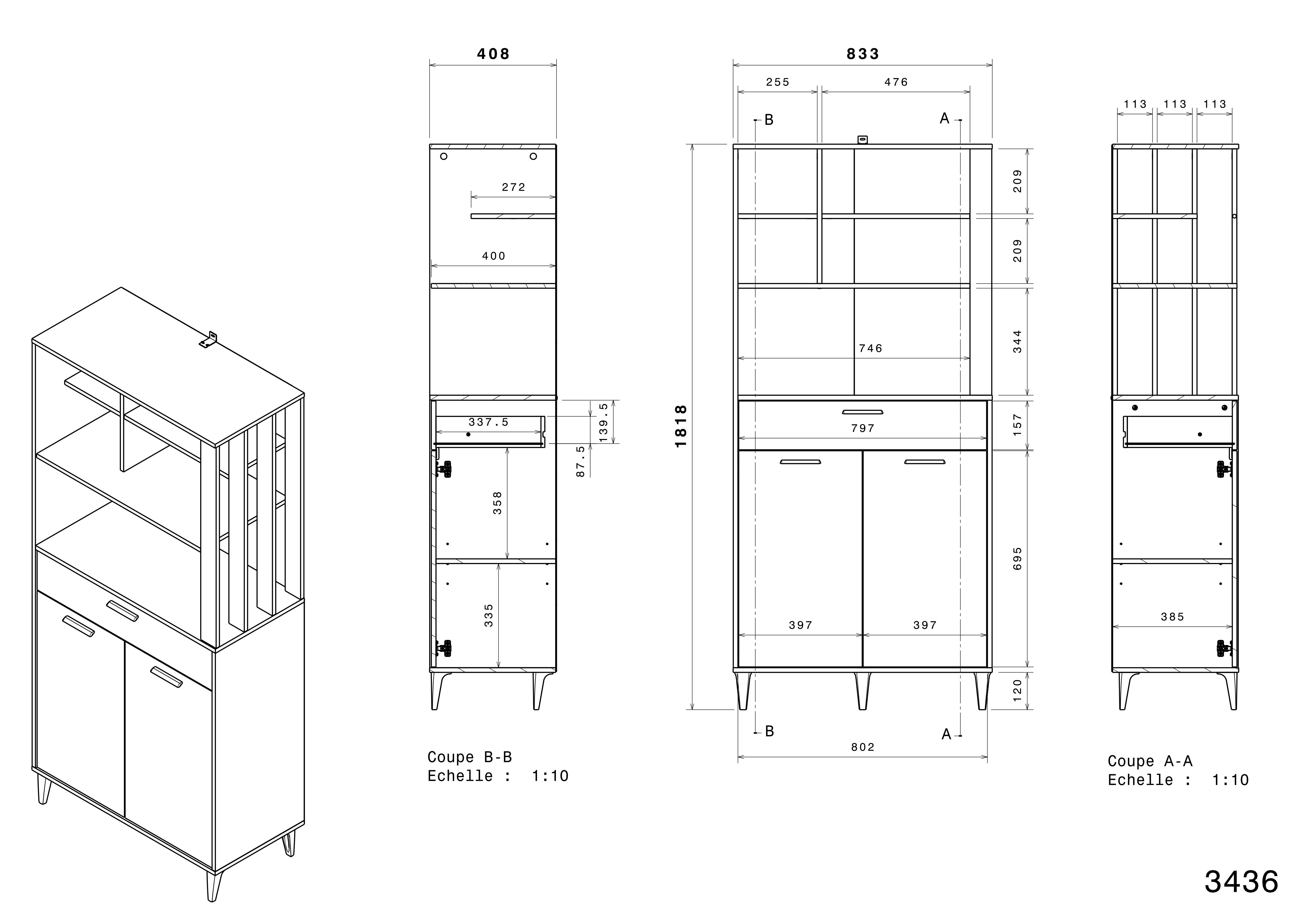 Oben: 1 offenes Fach, zum Beispiel für eine Mikrowelle