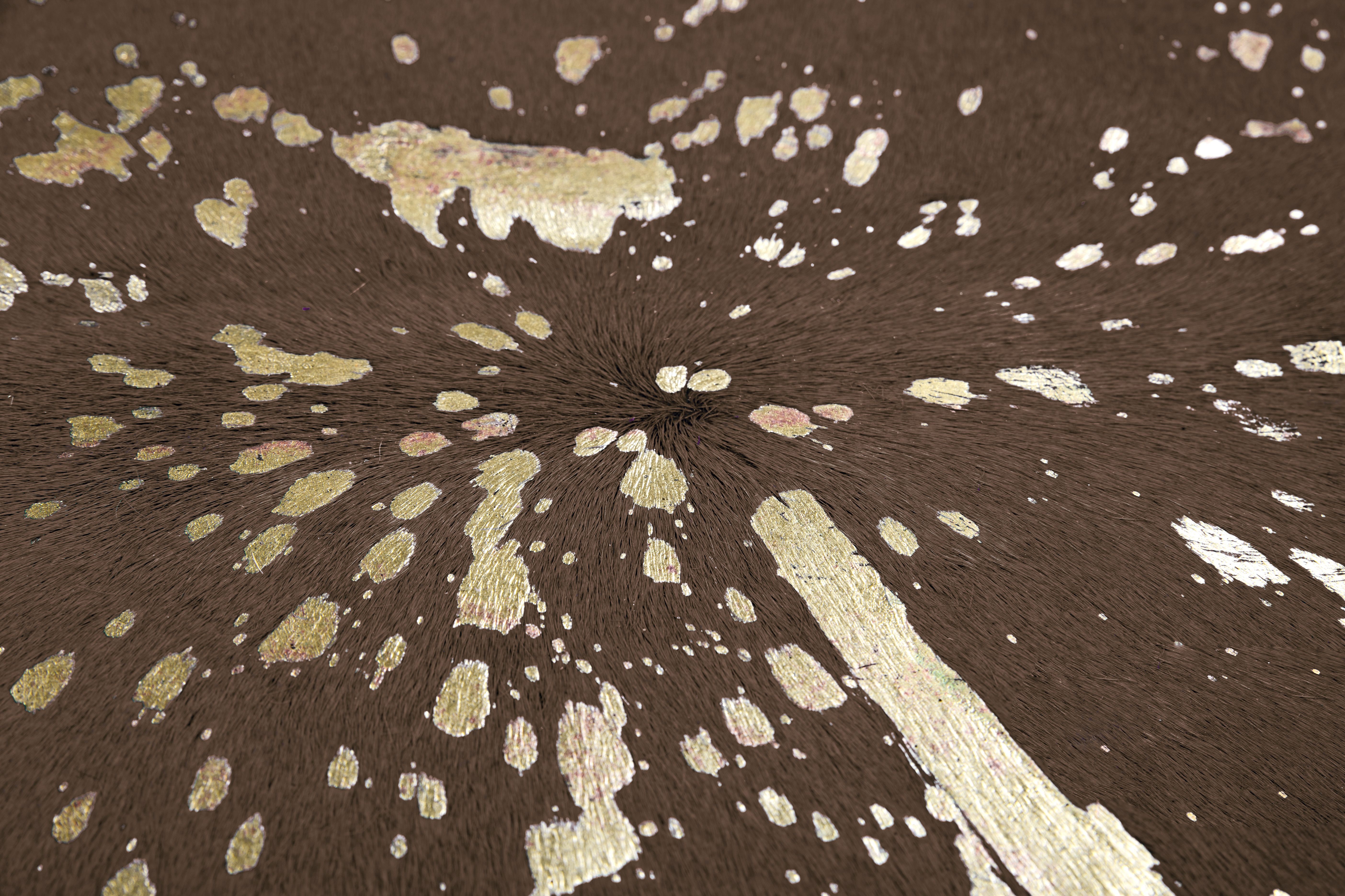 - 100 % Rindslederfell, nutzbar als Bodenbelag, Sitzauflage oder Wandteppich, Akzente in Gold, flachfloriger Teppich