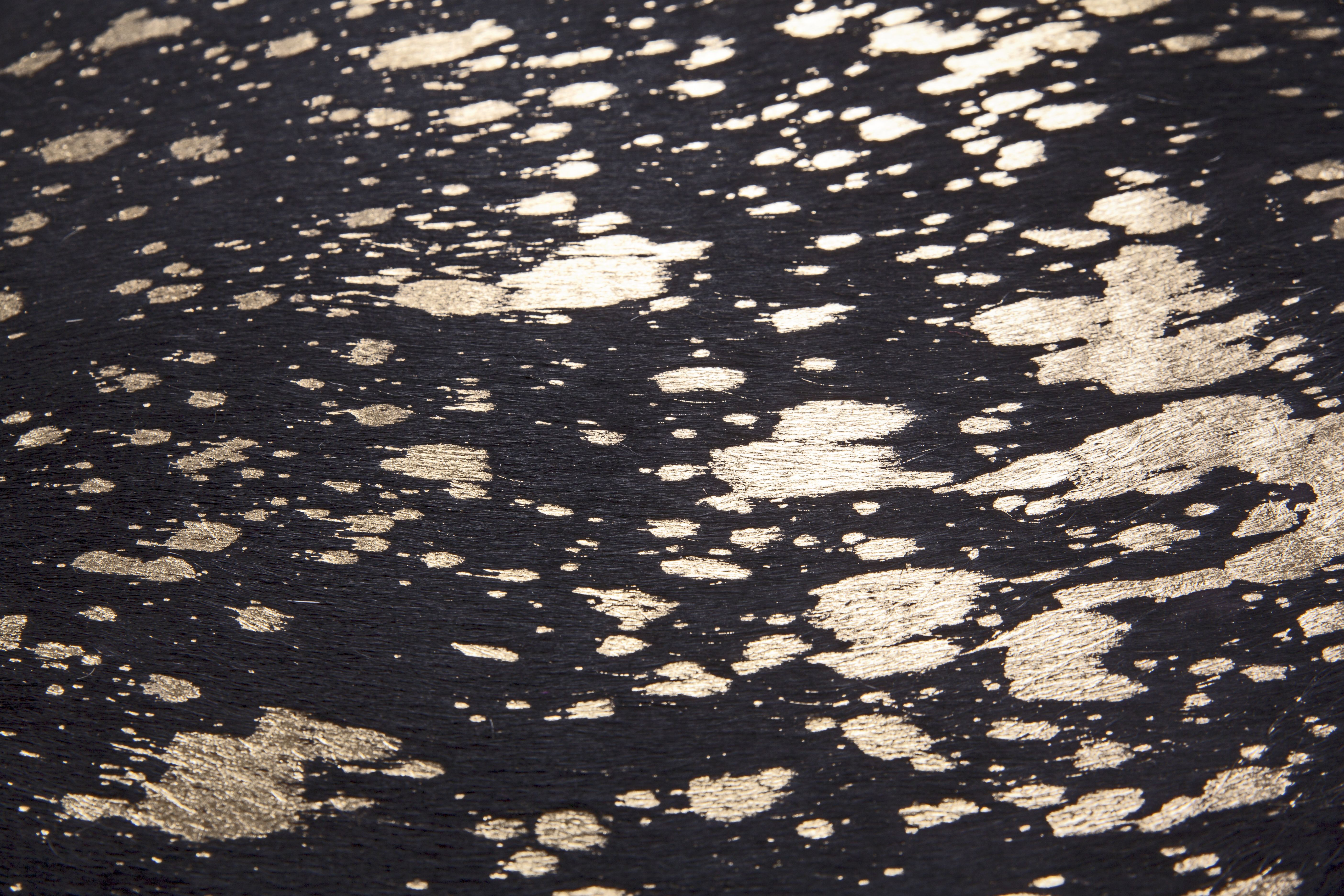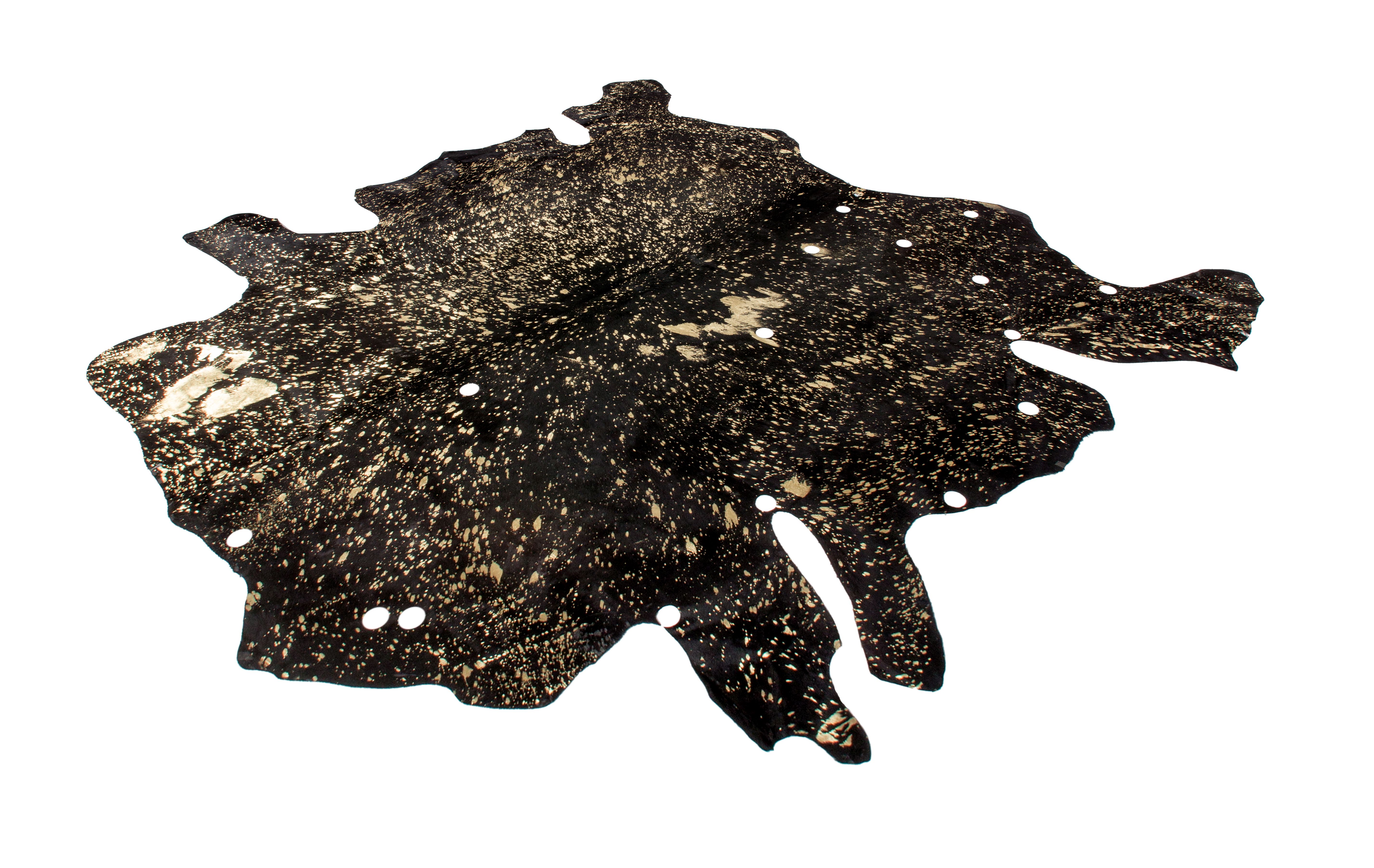 - 100 % Rindslederfell, nutzbar als Bodenbelag, Sitzauflage oder Wandteppich, Akzente in Gold, flachfloriger Teppich