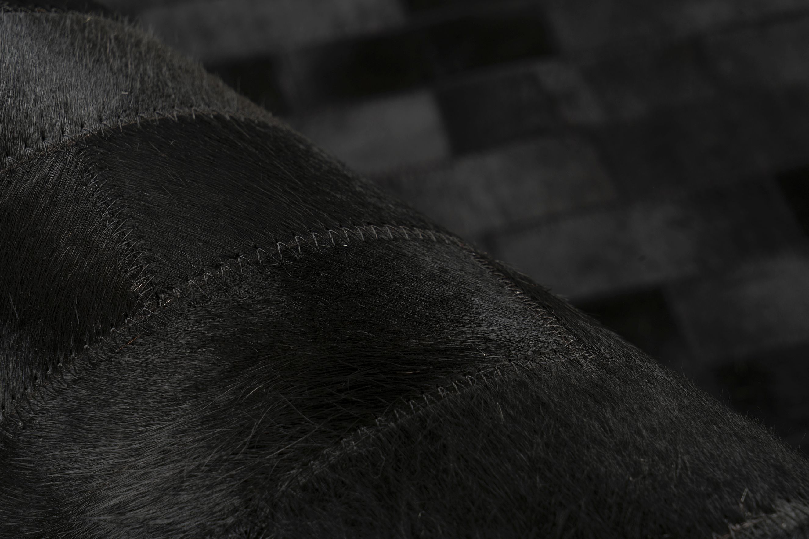 Der hochwertig verarbeitete Teppich ist in jeweils drei verschiedenen Farben und Größen erhältlich und fällt durch sein besonderes Design und die natürlichen Materialien auf. Die metallischen Effekte machen den ansprechenden Kurzflorteppich aus Rindleder zu einem Blickfang in jedem Zimmer.