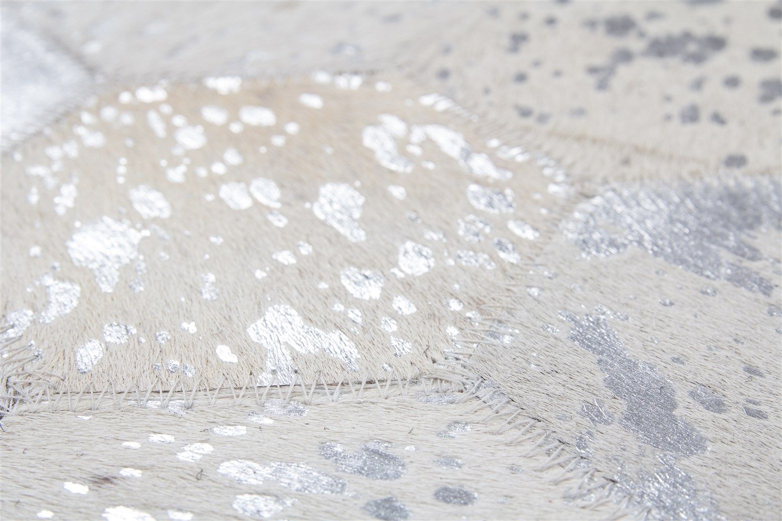 Der wunderschöne Lederteppich mit eingearbeiteten Applikationen aus metallischer Folie rundet jeden edlen Einrichtungsstil gekonnt ab. Der hochwertige Edel-Teppich aus 100 % Leder überträgt einen individuellen Touch auf seine Umgebung und erzeugt ein ganz besonderes Flair. Von Hand gefertigt ist jeder einzelne Lederteppich ein Unikat. Die Verwendung von edlen Naturmaterialien und die hochwertige Verarbeitung sorgen für ein dynamisches Aussehen und machen jeden Teppich einzigartig, denn bei Naturprodukten kann es in Form, Farbe und Muster zu Abweichungen von bis zu 30 % kommen. Das natürliche Fell kann nach einiger Zeit und bei hoher Beanspruchung gegebenenfalls an Haaren verlieren. Ebenso könnte sich die Metallicfolie unter Umständen ablösen. Dies ist dem Naturprodukt und der Beschaffenheit des Fells geschuldet und kein Produktionsfehler.
