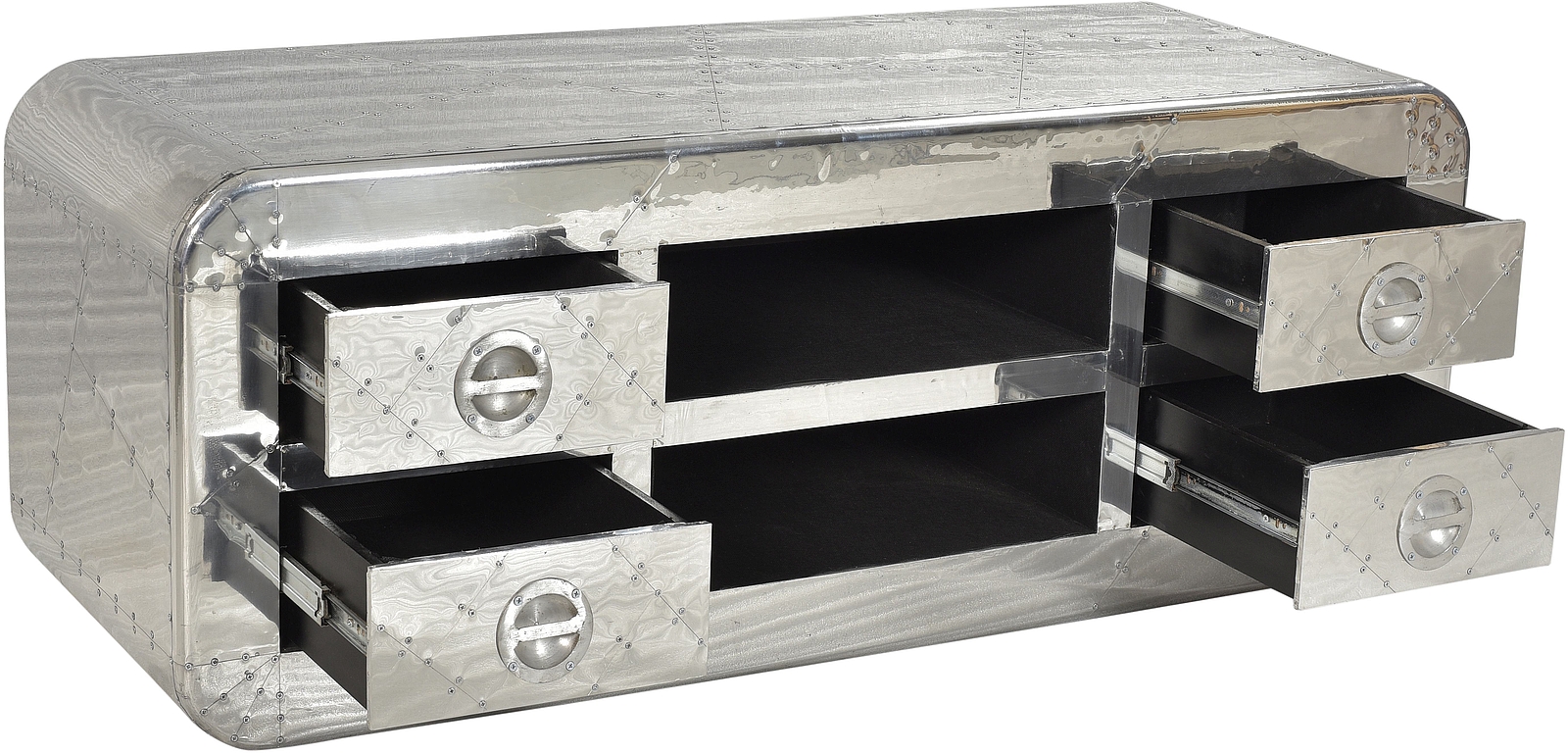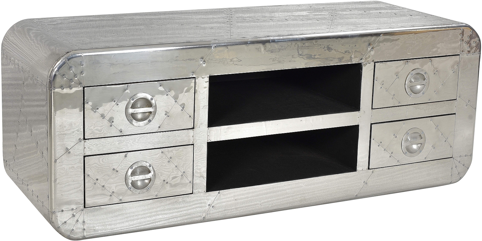 Mango massiv (Indien) kombiniert mit MDF (Mitteldichte Holzfaserplatte) mit Alubeschlägen in silberfarben