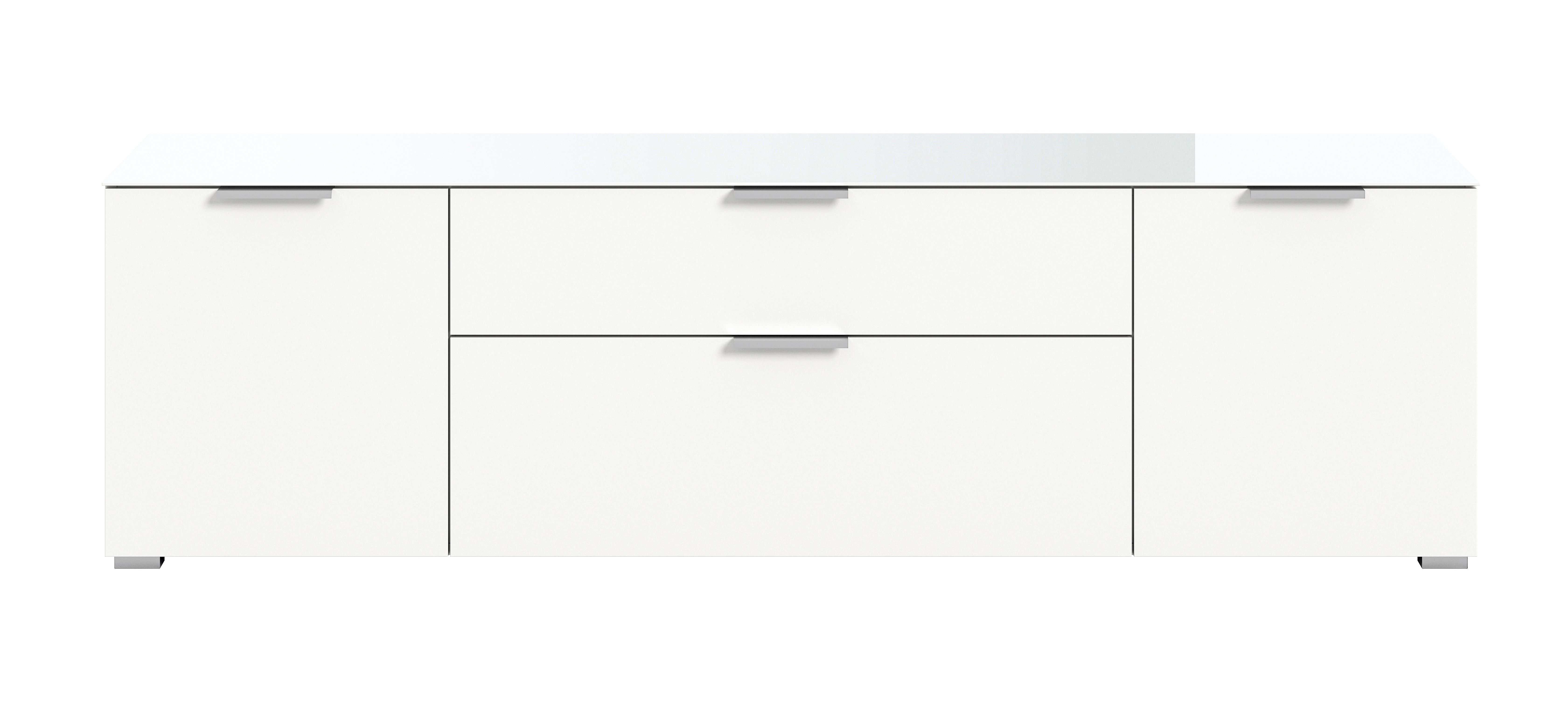 - Design/Stil: Das Lowboard in weißer Nachbildung besticht durch ein schlichtes und zeitloses Design, das sich nahtlos in verschiedene Einrichtungsstile einfügt. Die helle Farbe verleiht dem Möbelstück eine freundliche und frische Ausstrahlung, während klare Linien und ein minimalistisches Erscheinungsbild eine moderne Ästhetik schaffen.