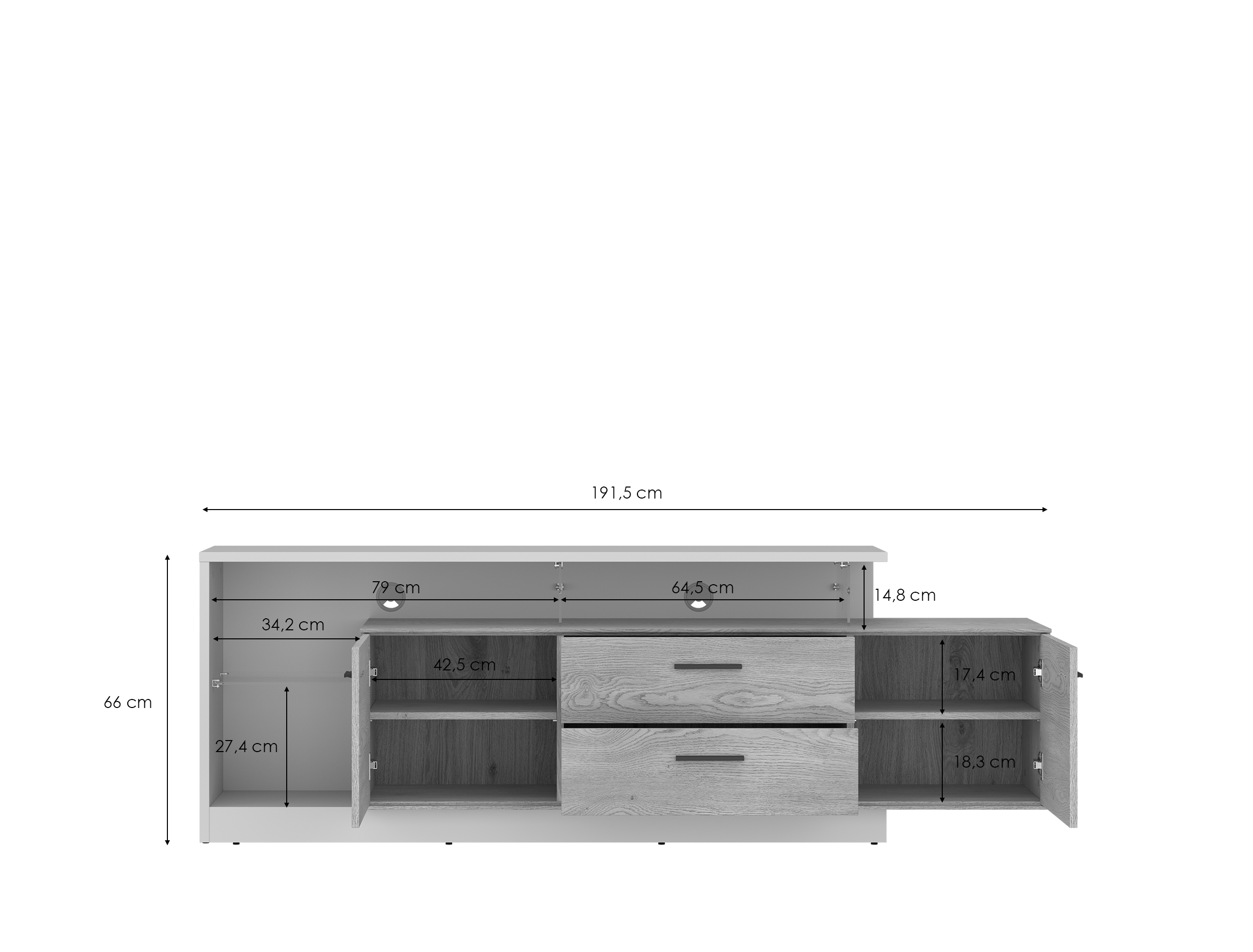 | Maße: | B/H/T ca. 191,5/65,5/40 cm | ||