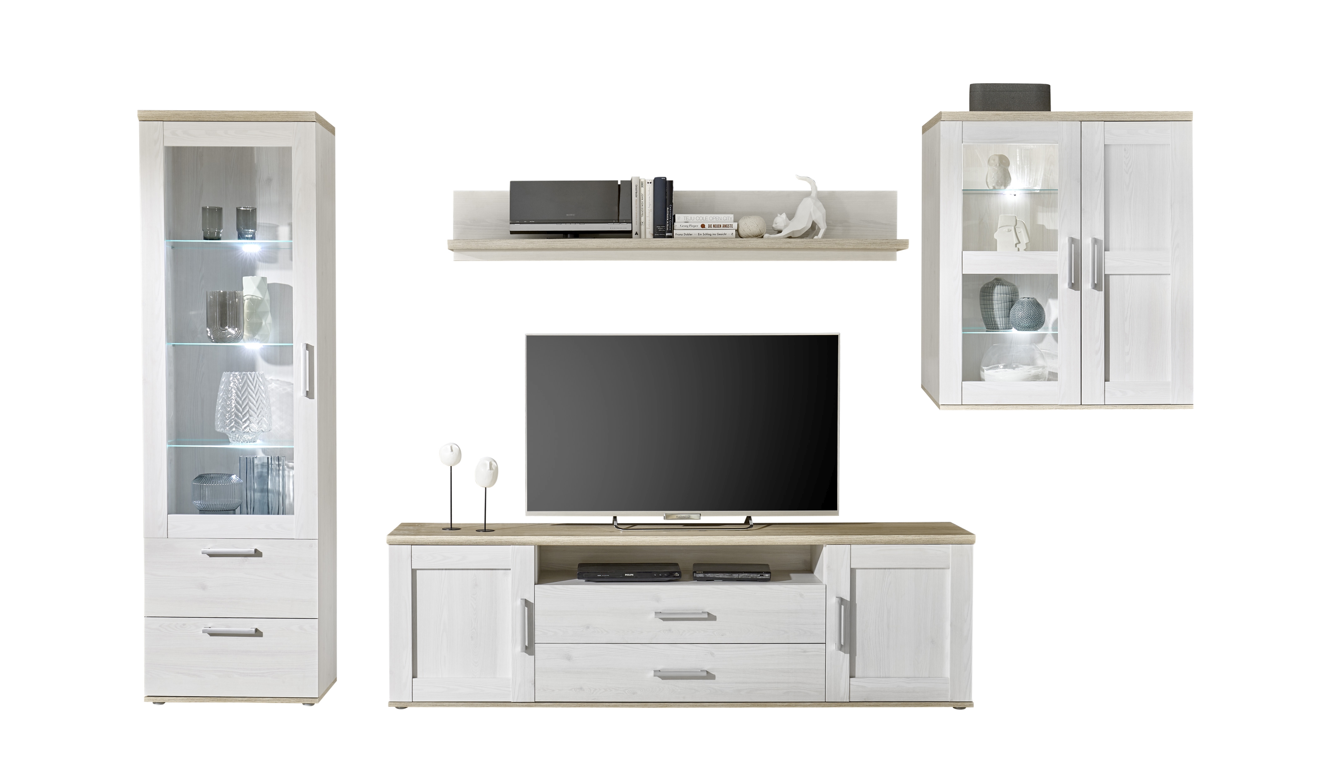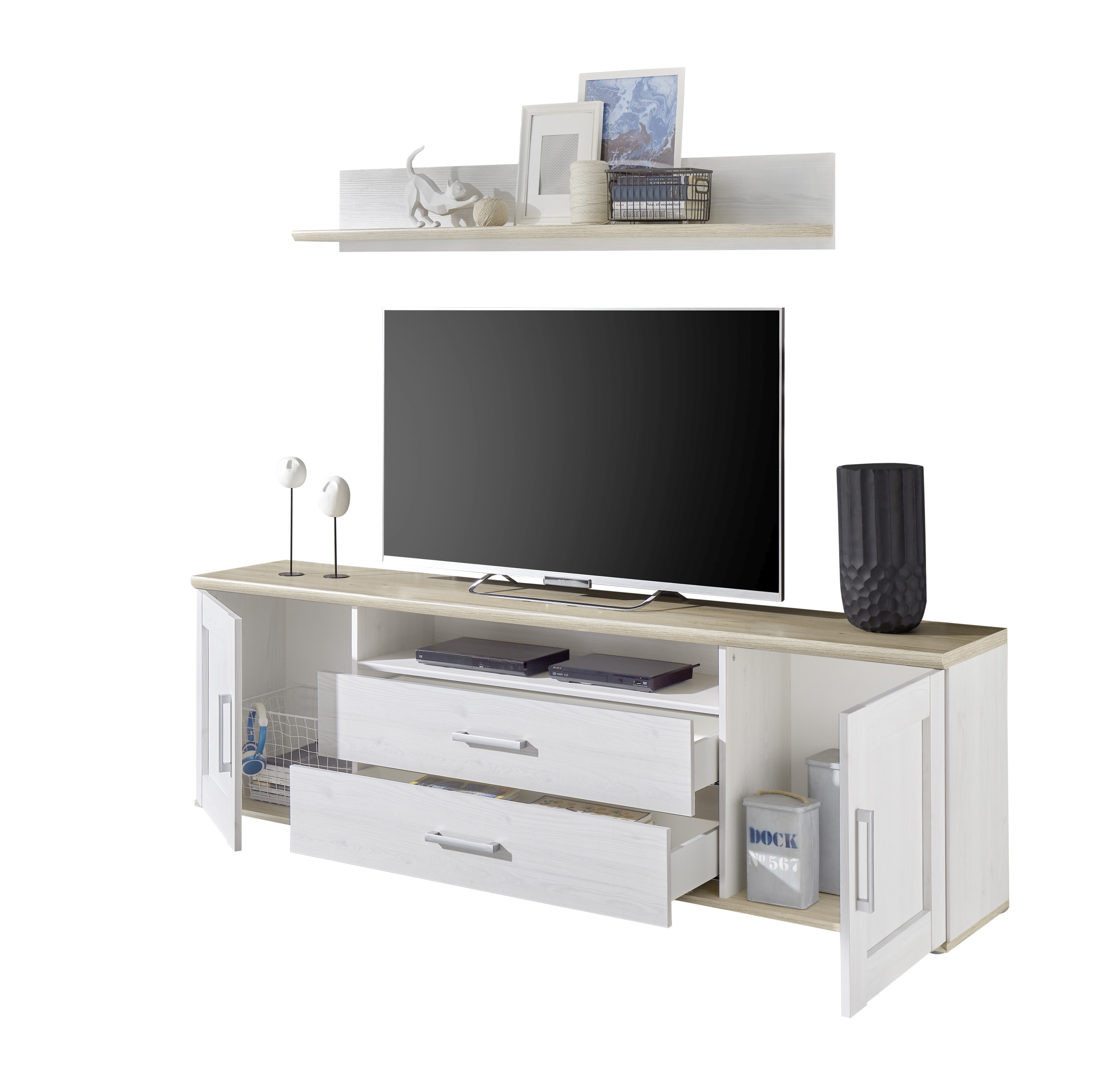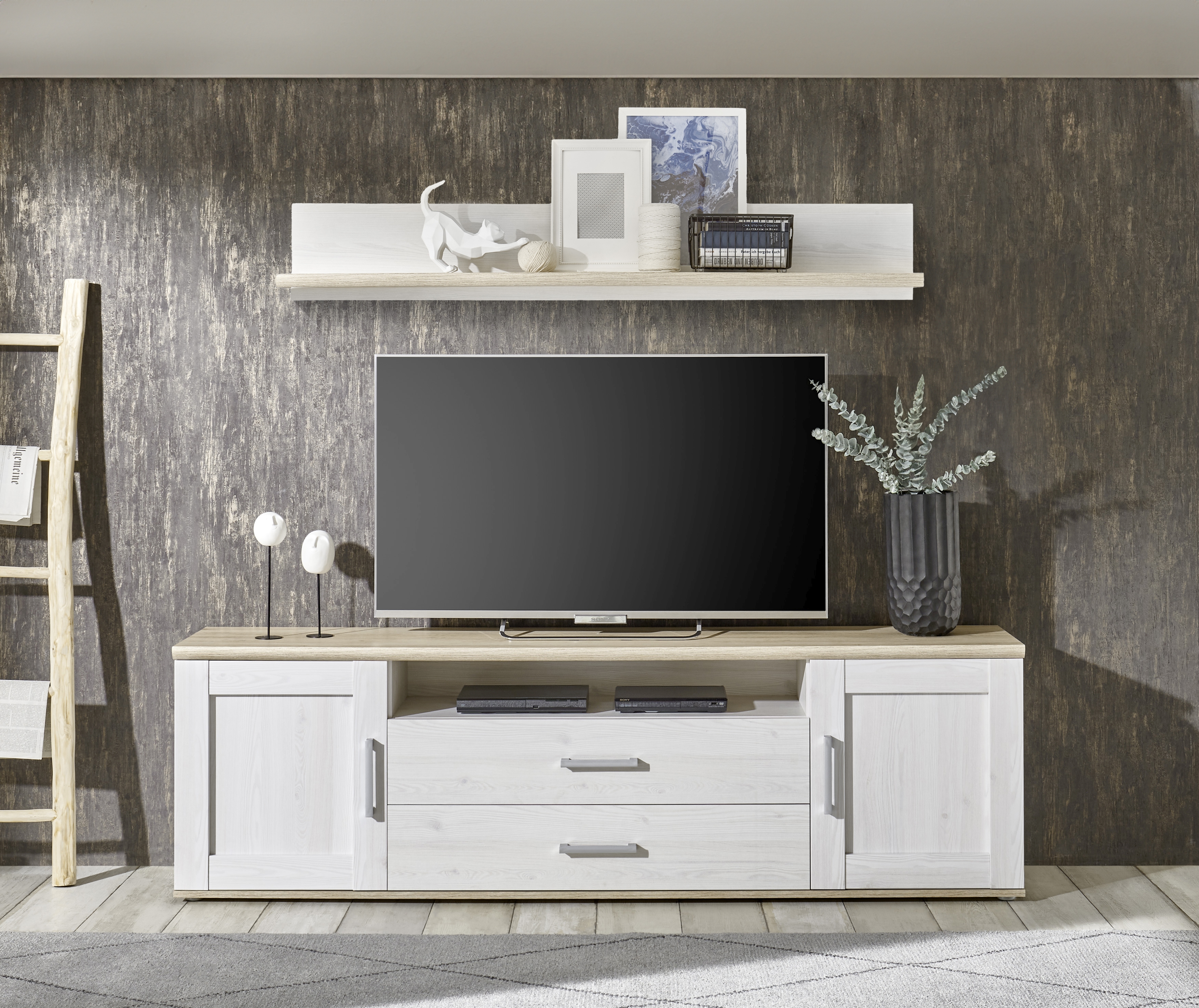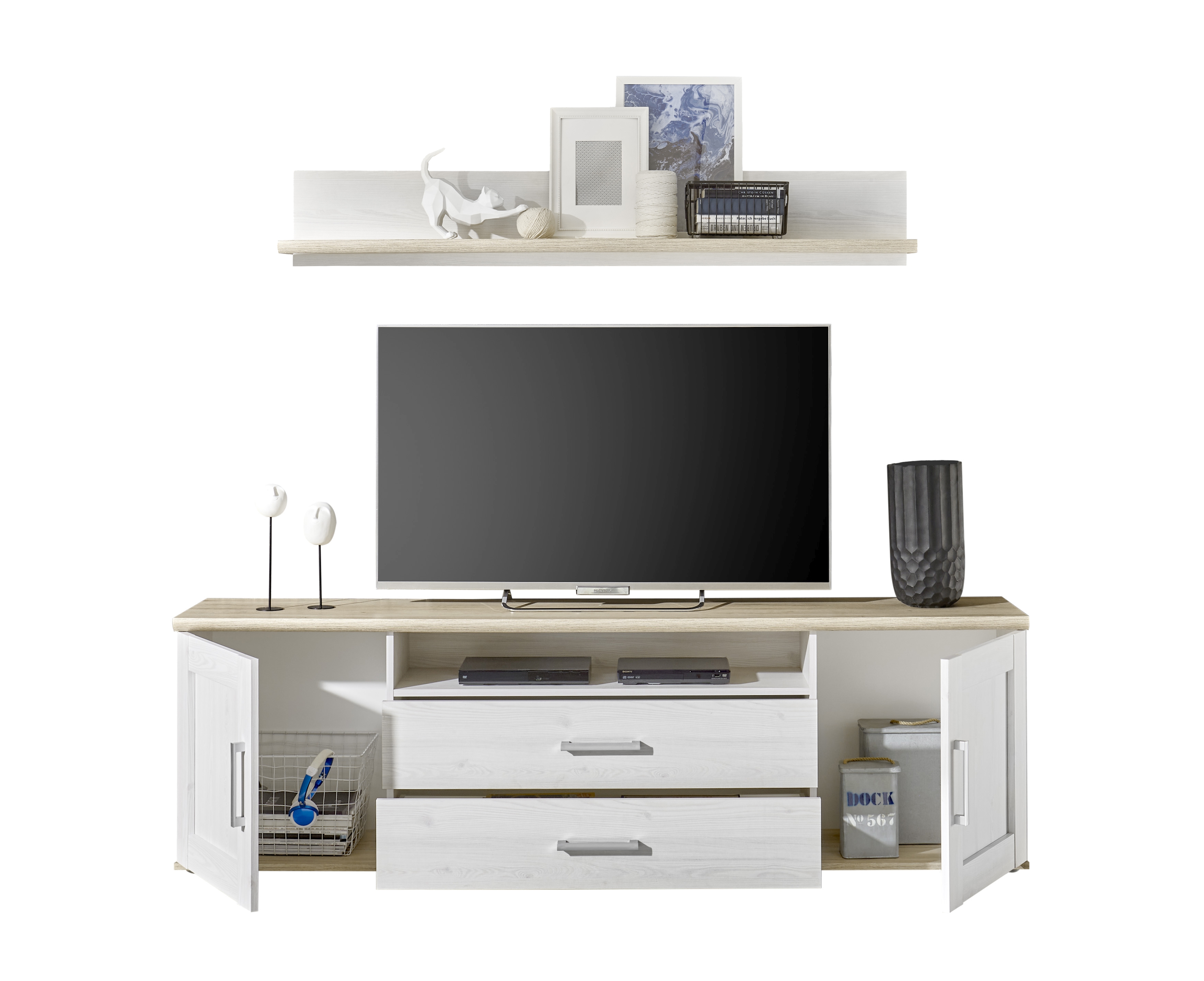 1 Lowboard mit 2 Türen, 1 offenes Fach und 2 Schubkästen mit Unterflurauszügen