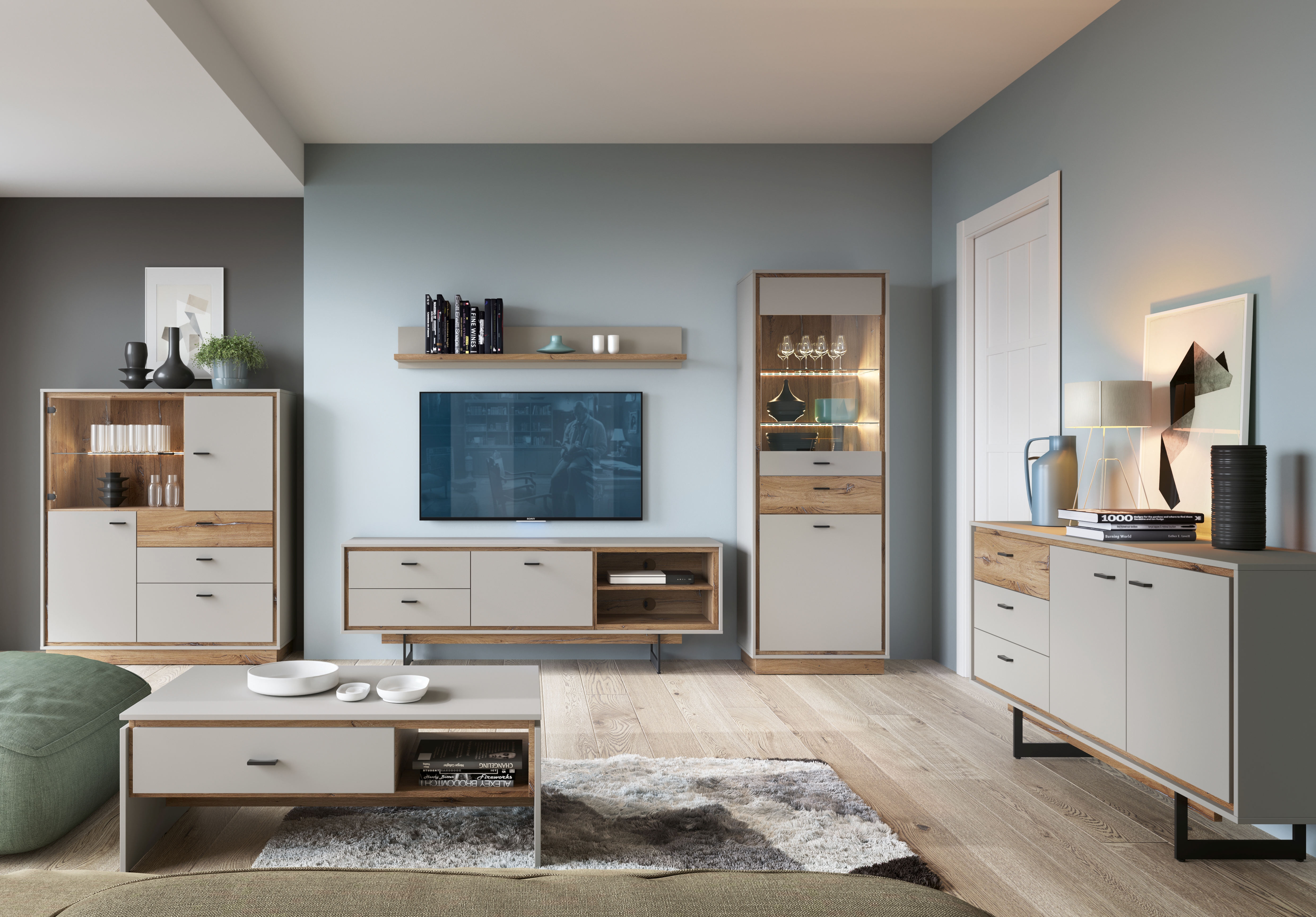 Korpus: Silicon Grey / Flagstaff Eiche dunkel Holznachbildung