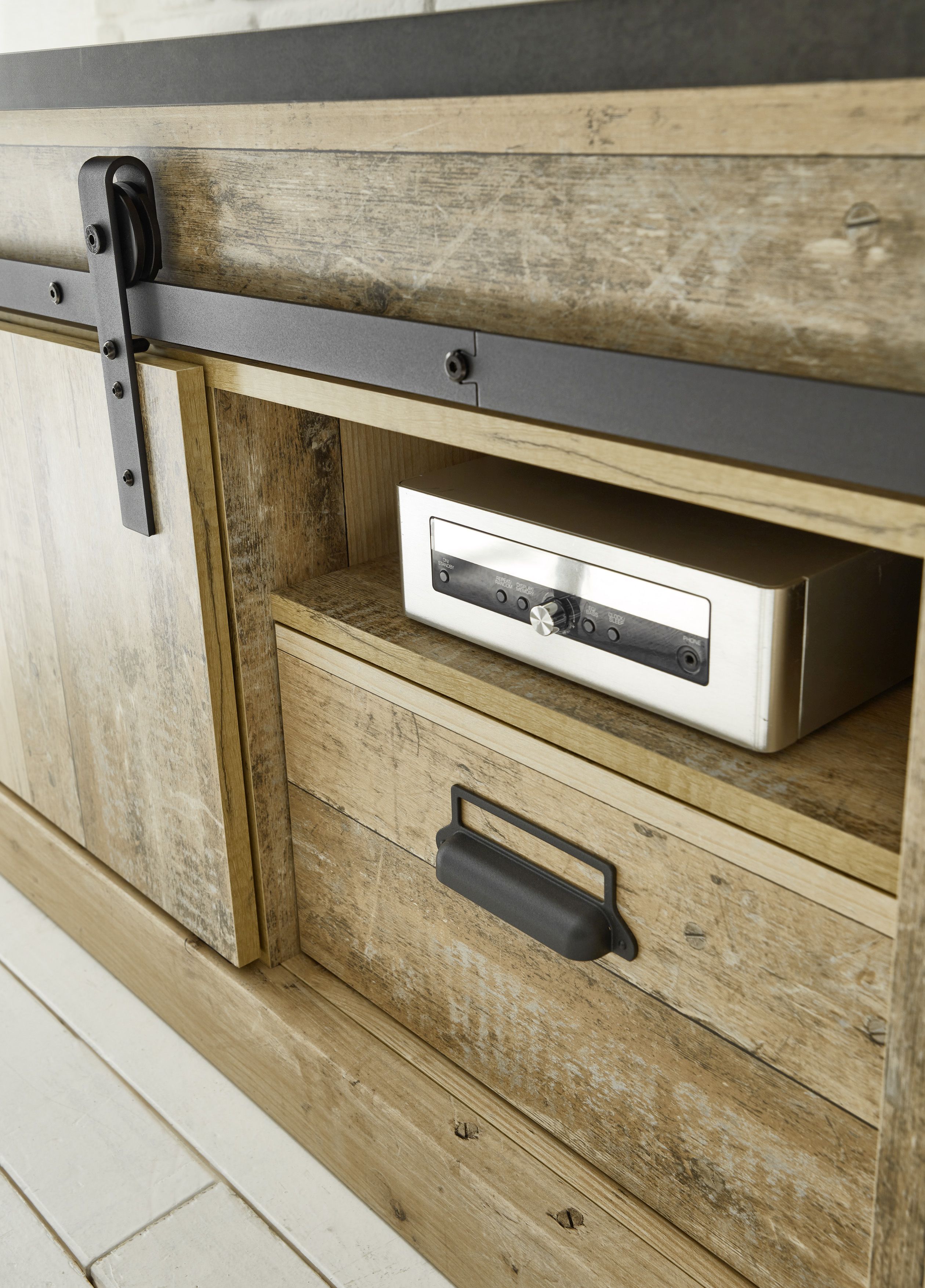 | Ausstattung Kommoden Phono Büro Regal: | Kabeldurchlass, Schiebetüre(n), Schublade(n) | ||