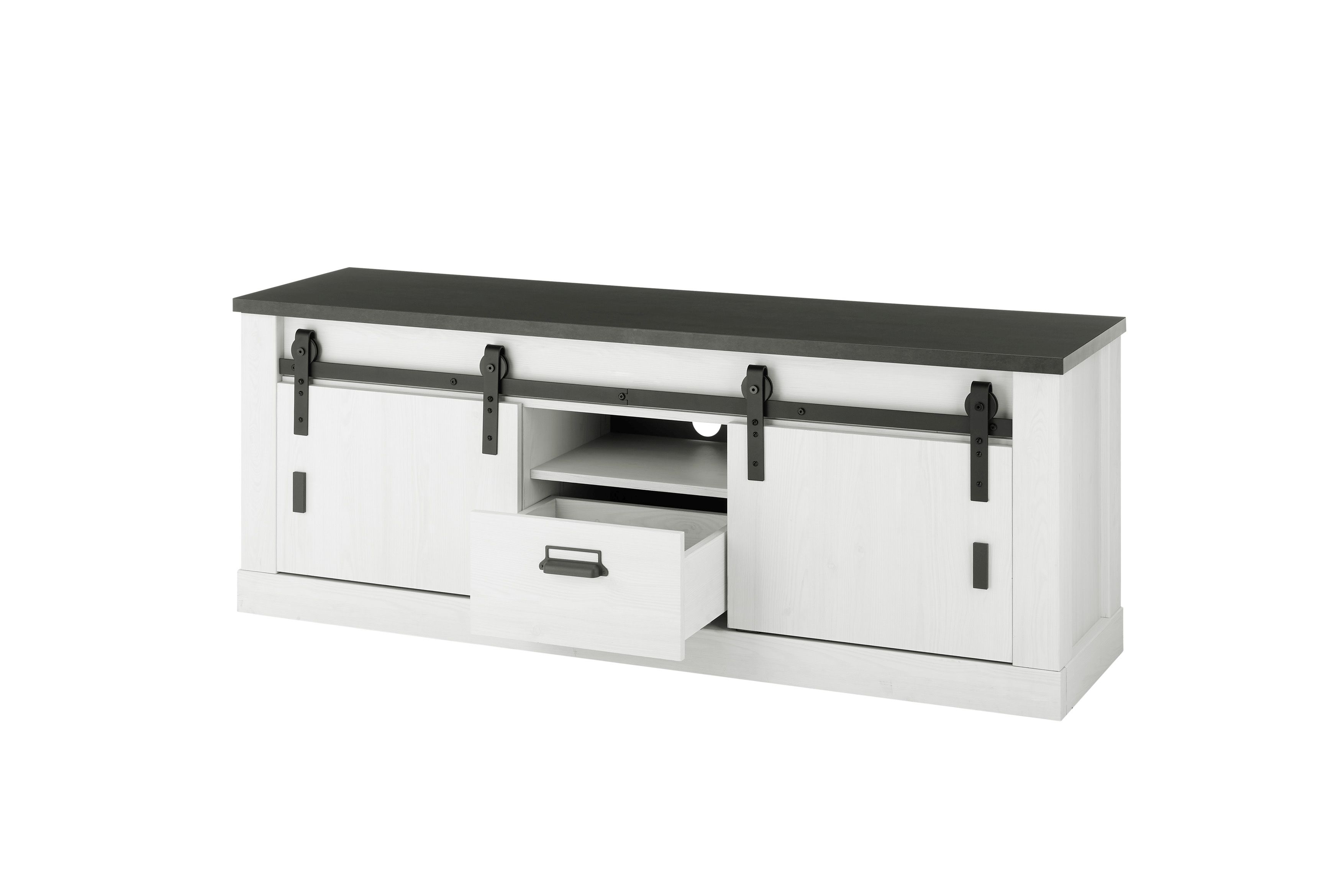 | Ausstattung Kommoden Phono Büro Regal: | Kabeldurchlass, Schiebetüre(n), Schublade(n) | ||