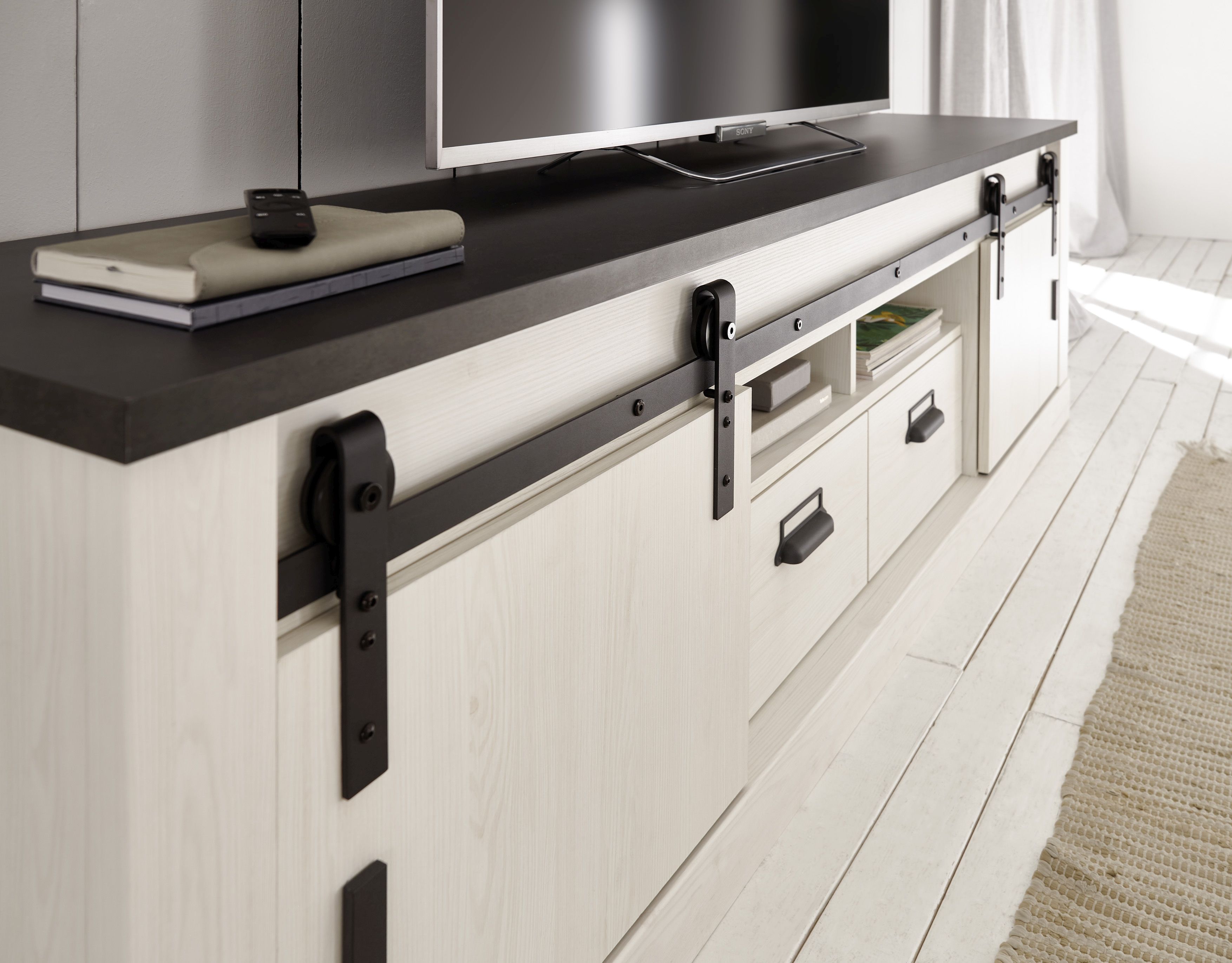 | Ausstattung Kommoden Phono Büro Regal: | Kabeldurchlass, Offene Fächer, Schiebetüre(n), Schublade(n) | ||