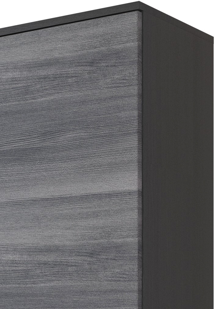 Front: MDF (Mitteldichte Holzfaserplatte) Eiche rauchsilber Holznachbildung