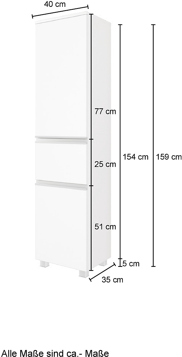 | Midischrank | 40 | 154 (Höhe ohne Möbelfüße) | 35 |