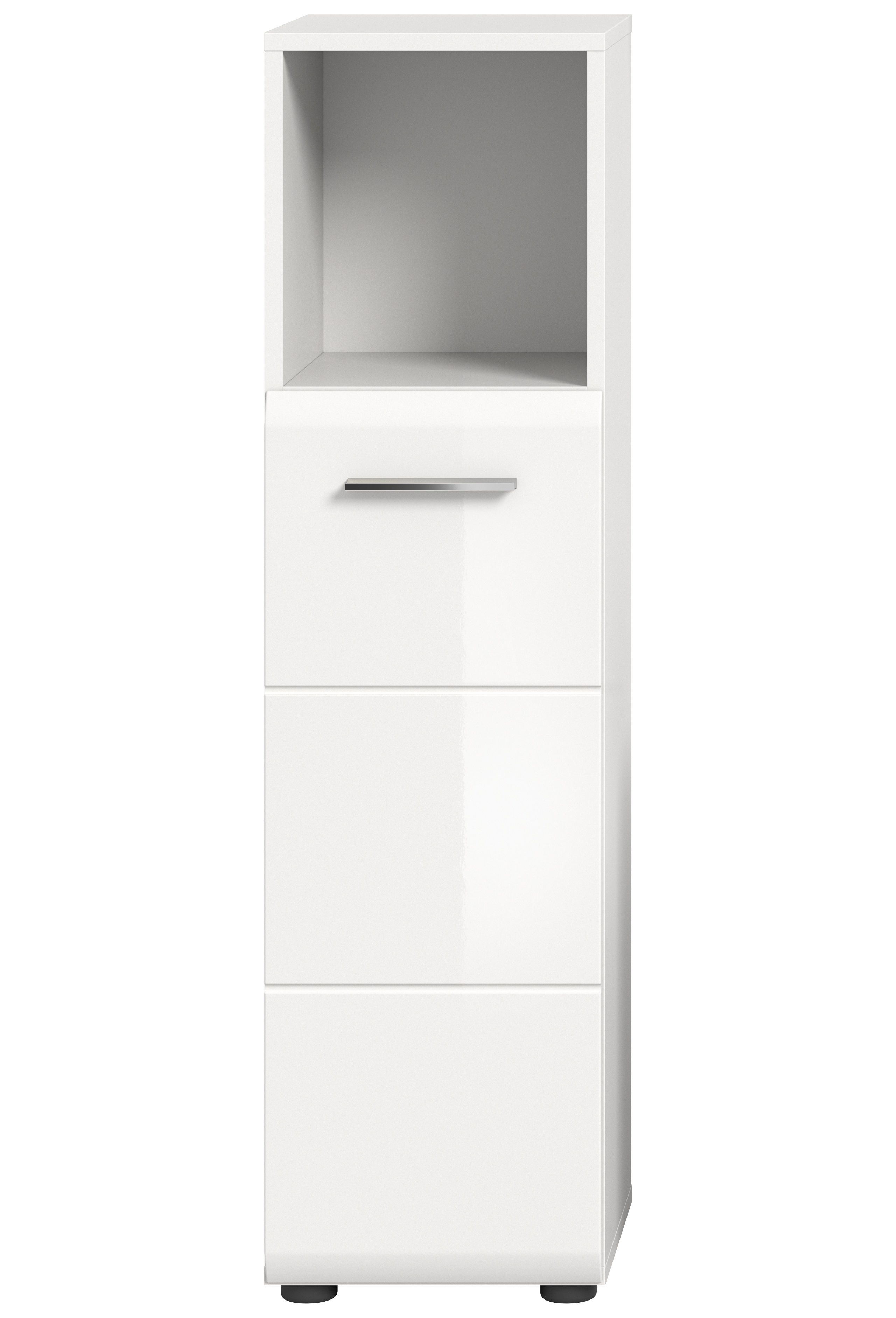 Entdecken Sie unseren platzsparenden und zugleich großzügigen Badezimmer Standschrank in strahlendem Weiß, kombiniert mit hochglänzenden tiefgezogenen Elementen für zeitlose Eleganz. Mit den Maßen von 30x110x30 cm bietet er nicht nur ausreichend Stauraum für Ihre Badutensilien, sondern verleiht Ihrem Badezimmer auch ein modernes Flair.