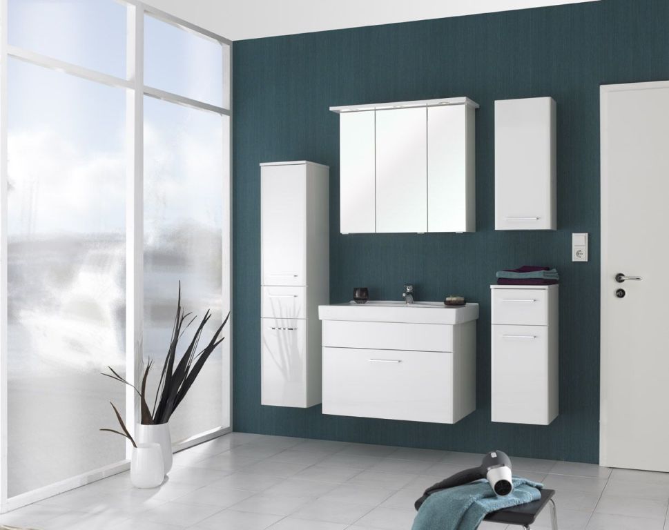 Sehr schöner Midischrank aus dem Badprogramm CARINA in der Farbausführung: Front: weiß Hochglanz/ Korpus: weiß seidenglanz: