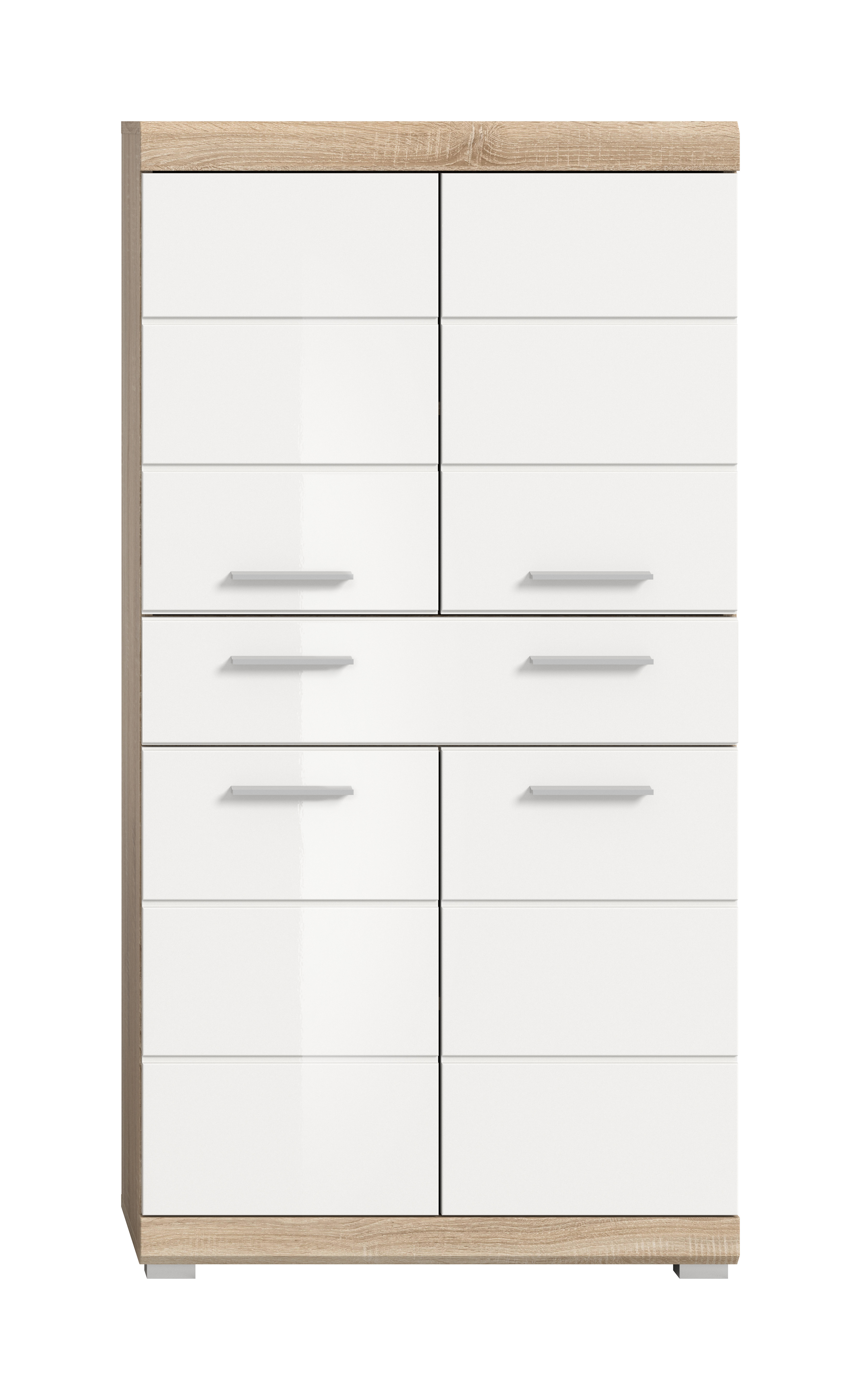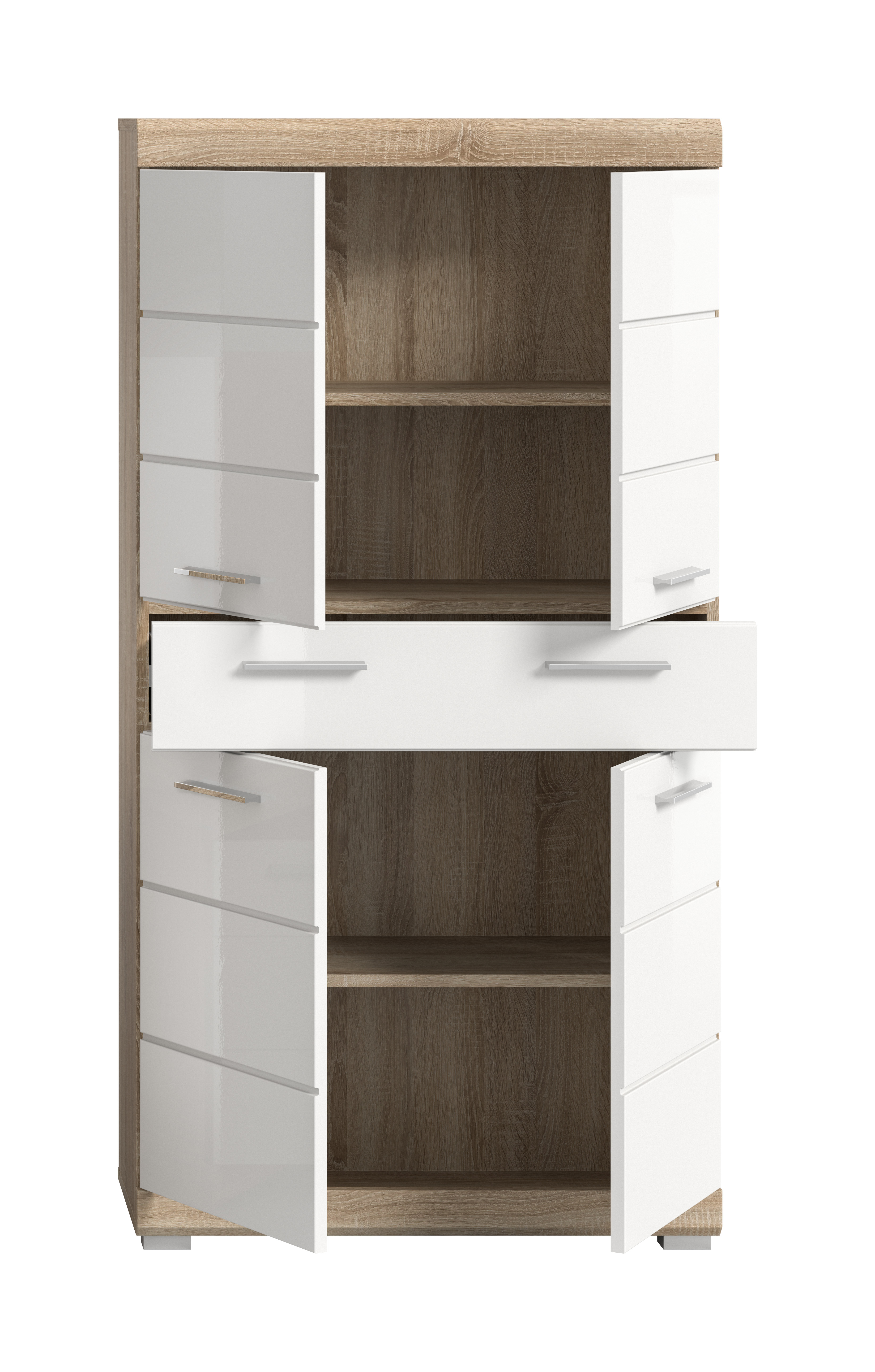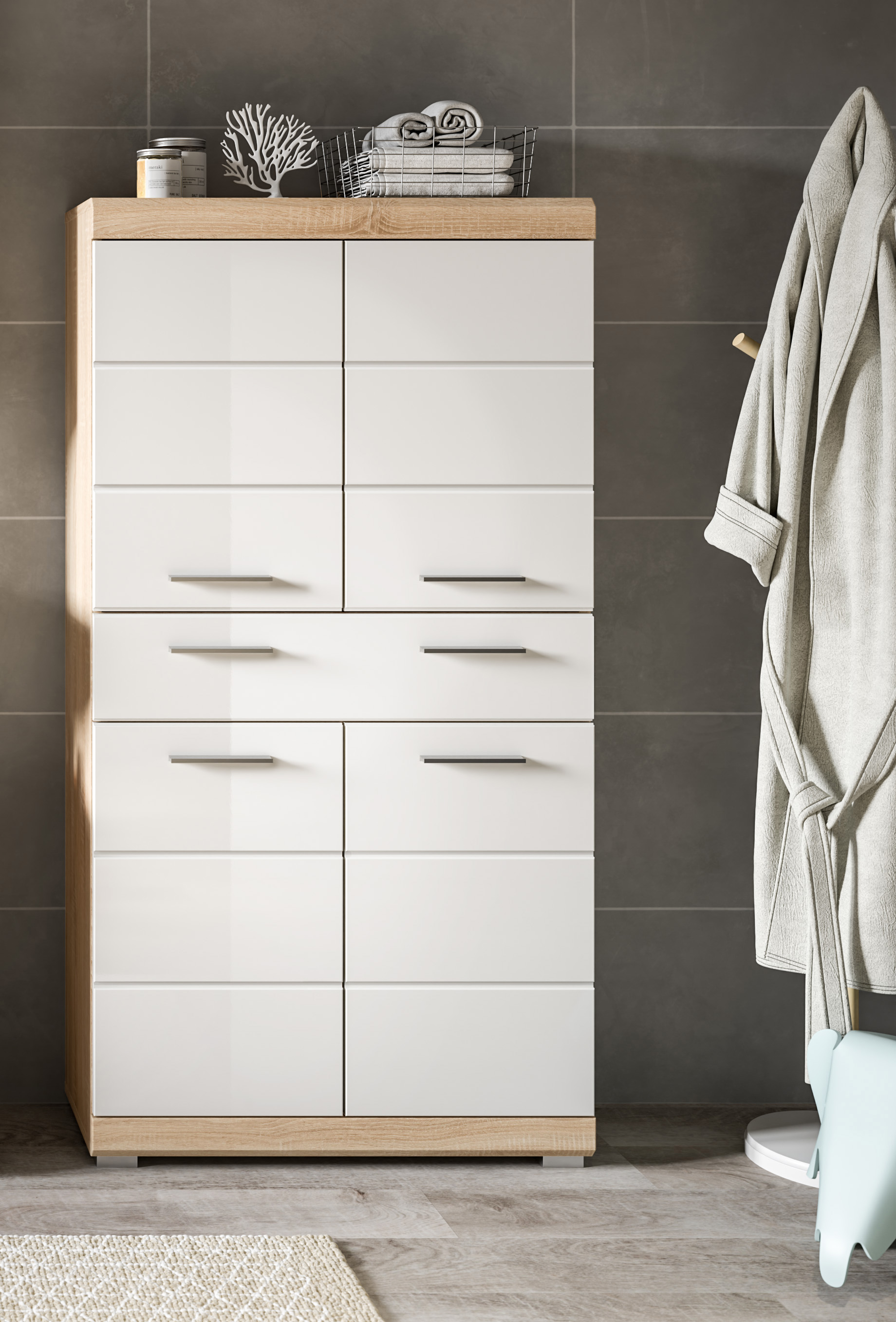 - Design/Stil: Die Kombination aus Sonoma Eiche hell und weißem Hochglanz tiefgezogenem Finish sorgt für ein modernes und ansprechendes Erscheinungsbild im Badezimmer oder Hauswirtschaftsraum.