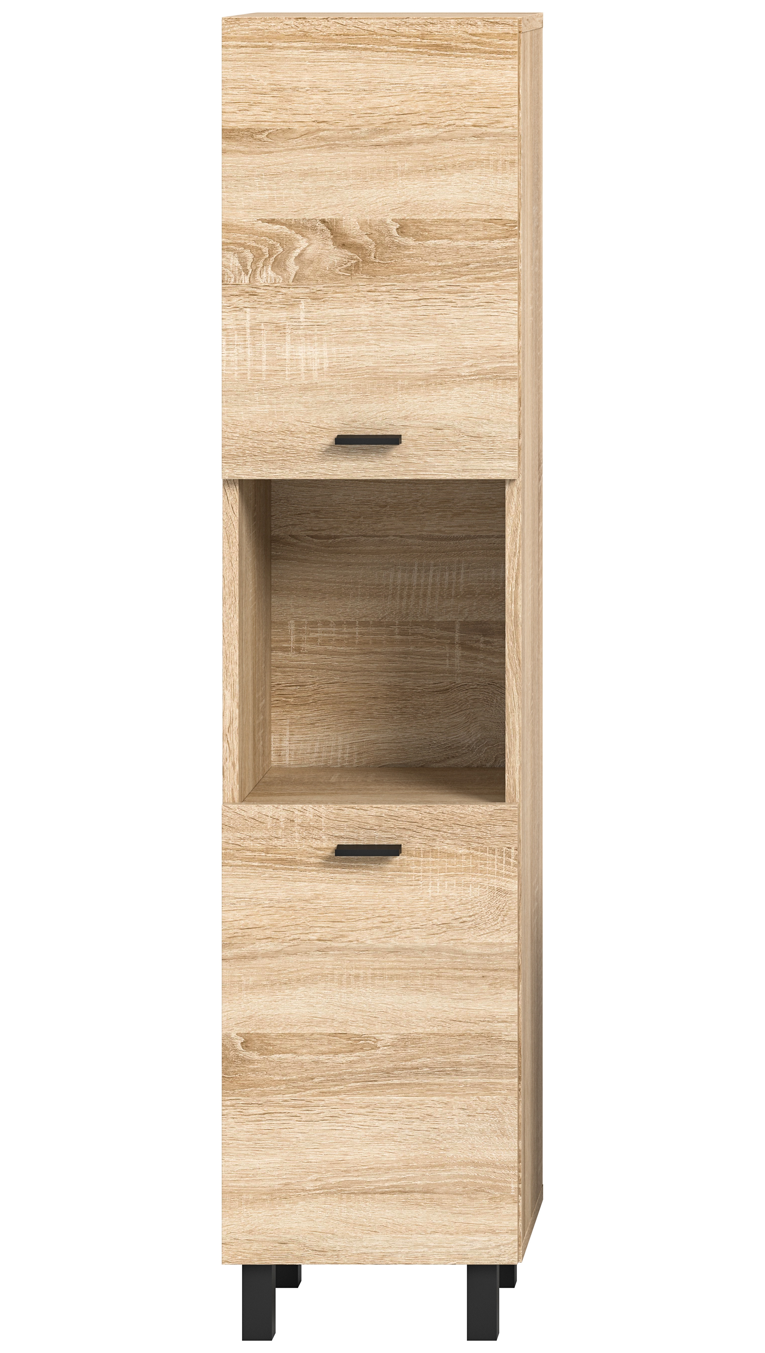 Unser Badschrank mit den Maßen 30x125x29 cm ist sowohl bodenstehend als auch hängend montierbar, wodurch er sich flexibel an Ihre Raumsituation anpasst. Mit seinem schlichten und dennoch modernen Design in Eiche Sonoma Holznachbildung fügt sich dieser Schrank nahtlos in jedes Badezimmer ein. Entdecken Sie jetzt diese vielseitige Lösung und optimieren Sie Ihre Badorganisation.