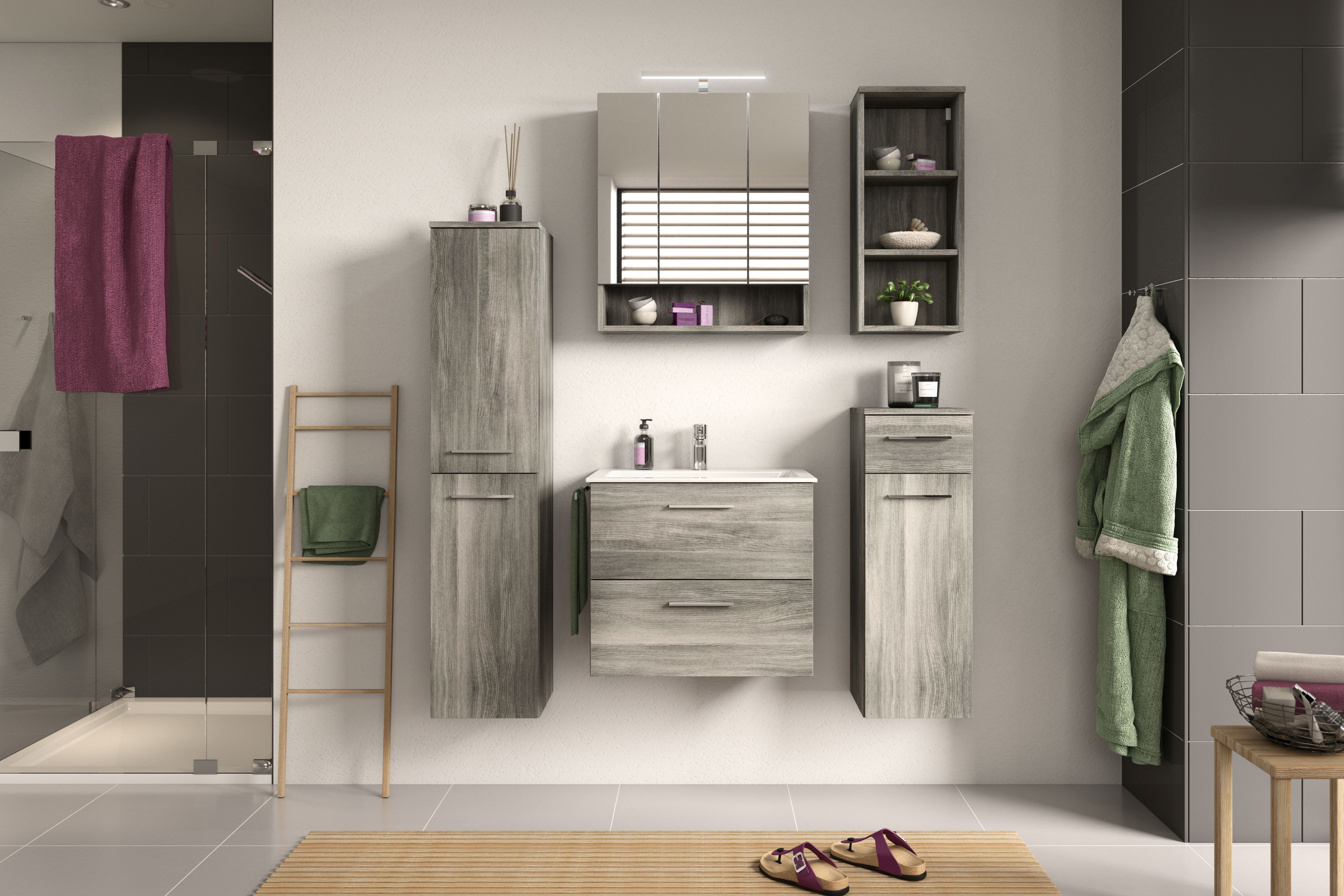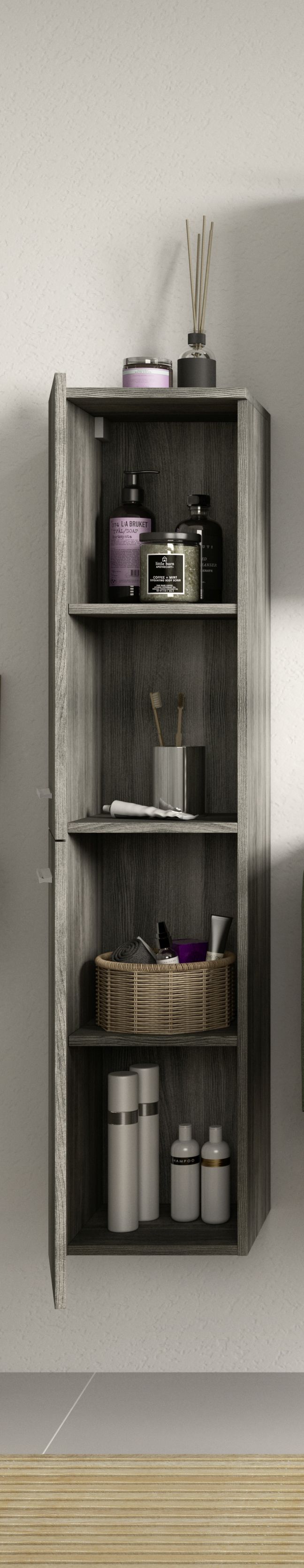 - Design/Stil: Der Hängeschrank in Rauchsilber Nachbildung zeichnet sich durch sein modernes und elegantes Design aus, das perfekt zu zeitgemäßen Badezimmereinrichtungen passt. Die rauchsilberne Oberfläche verleiht dem Schrank einen ansprechenden Look, der jedem Badezimmer eine gehobene Atmosphäre verleiht.