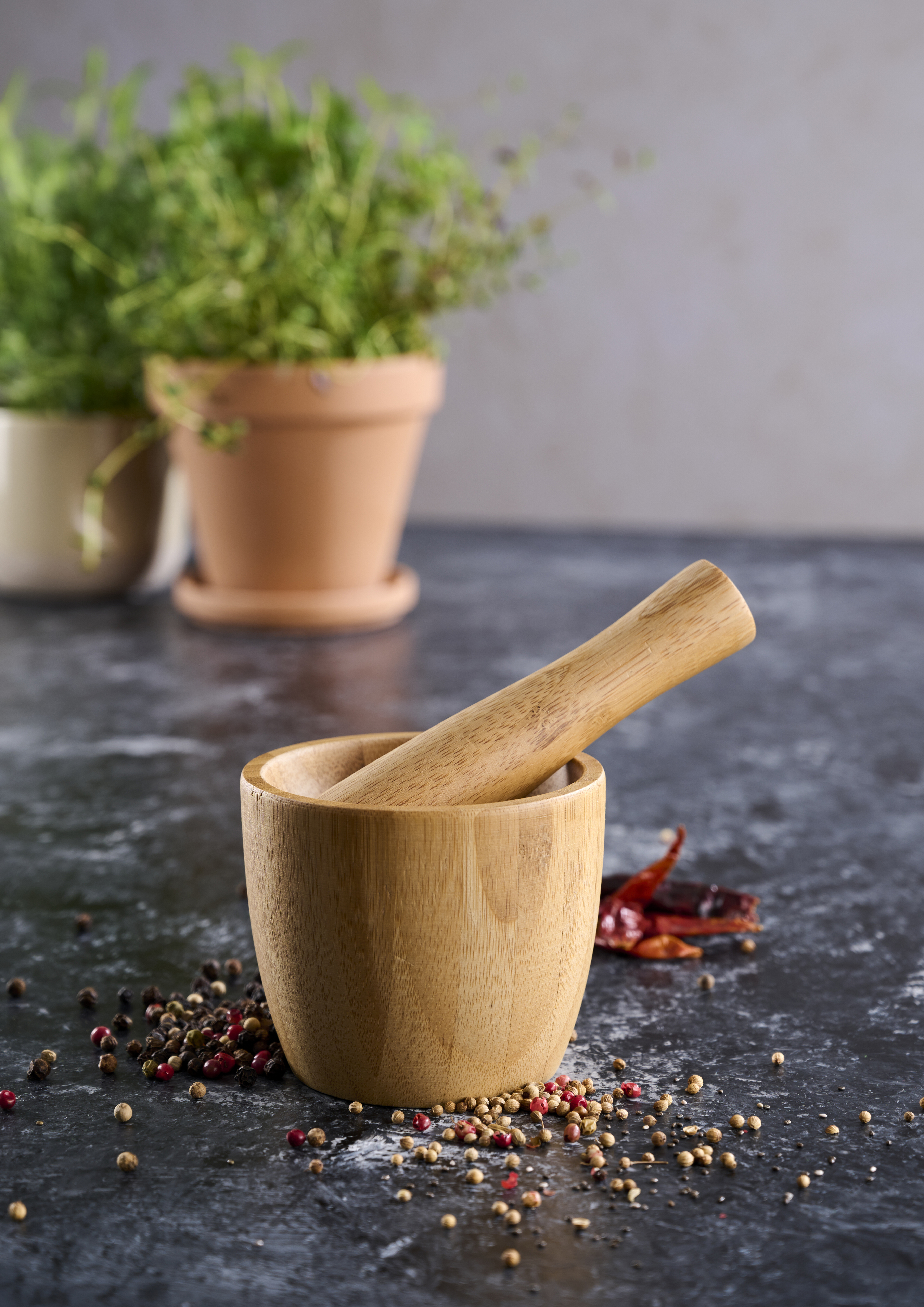1 Mörser Bambus mit Stösel