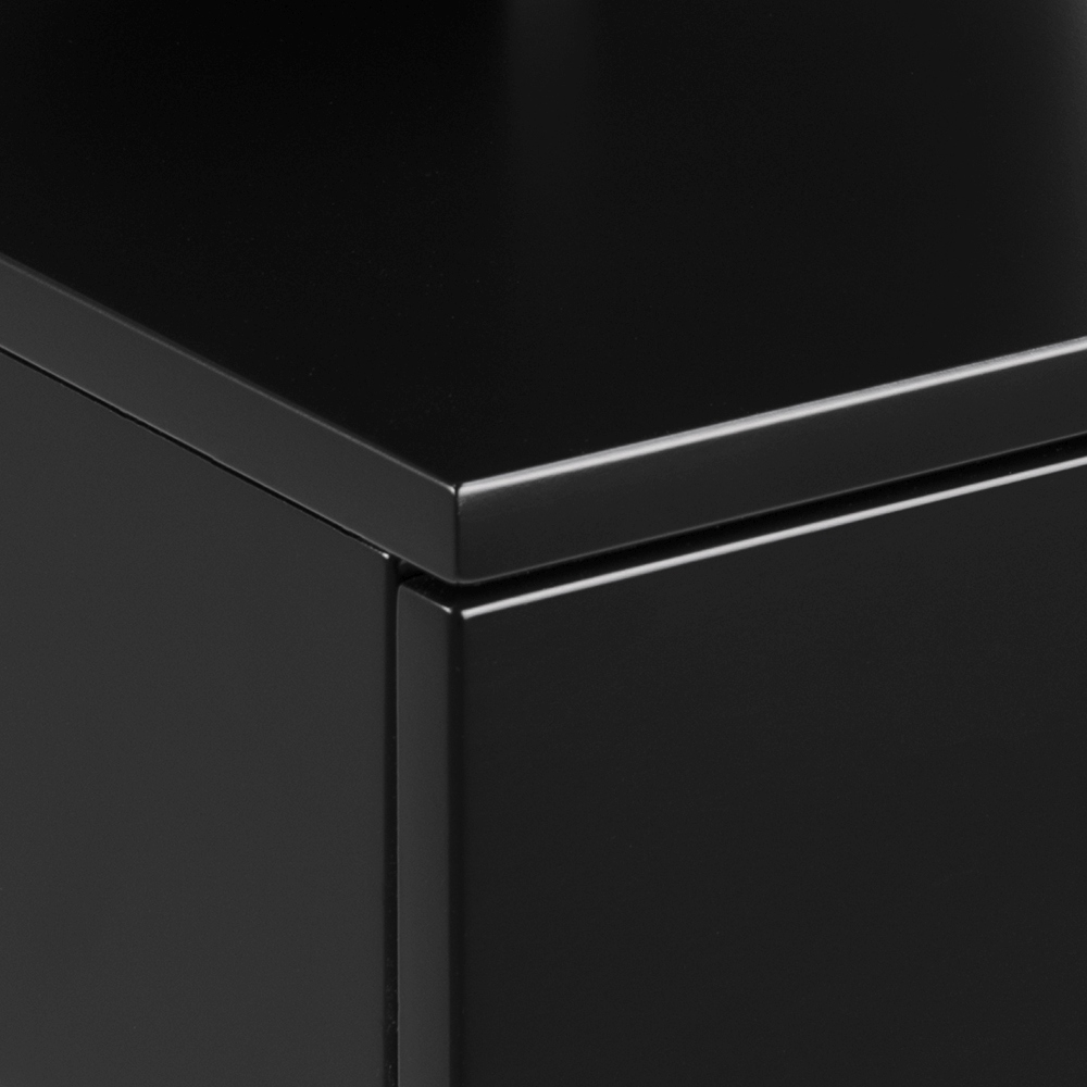 Korpus und Front: MDF (Mitteldichte Holzfaserplatte) in schwarz lackiert