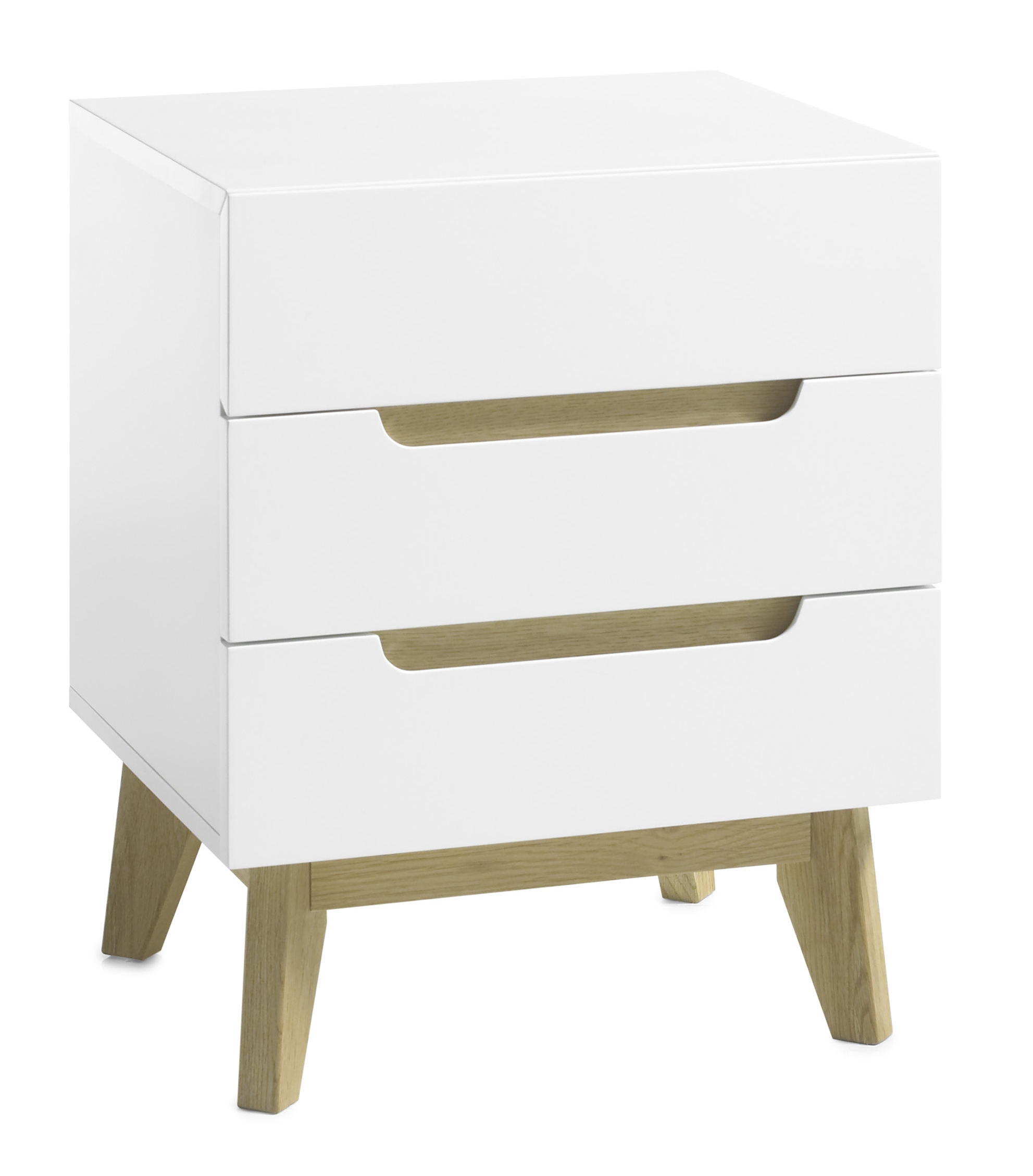 Korpus und Front: MDF (Mitteldichte Holzfaserplatte) matt weiß lackiert