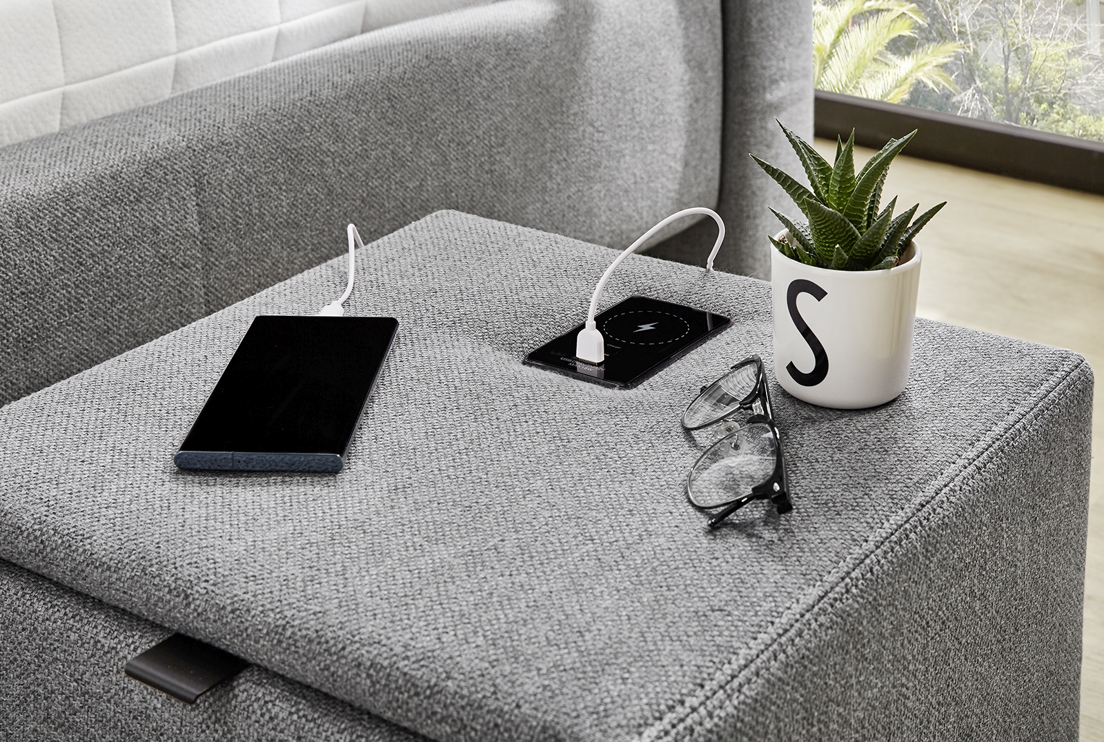 mit induktiver Lademöglichkeit fürs Smartphone oder Tablet