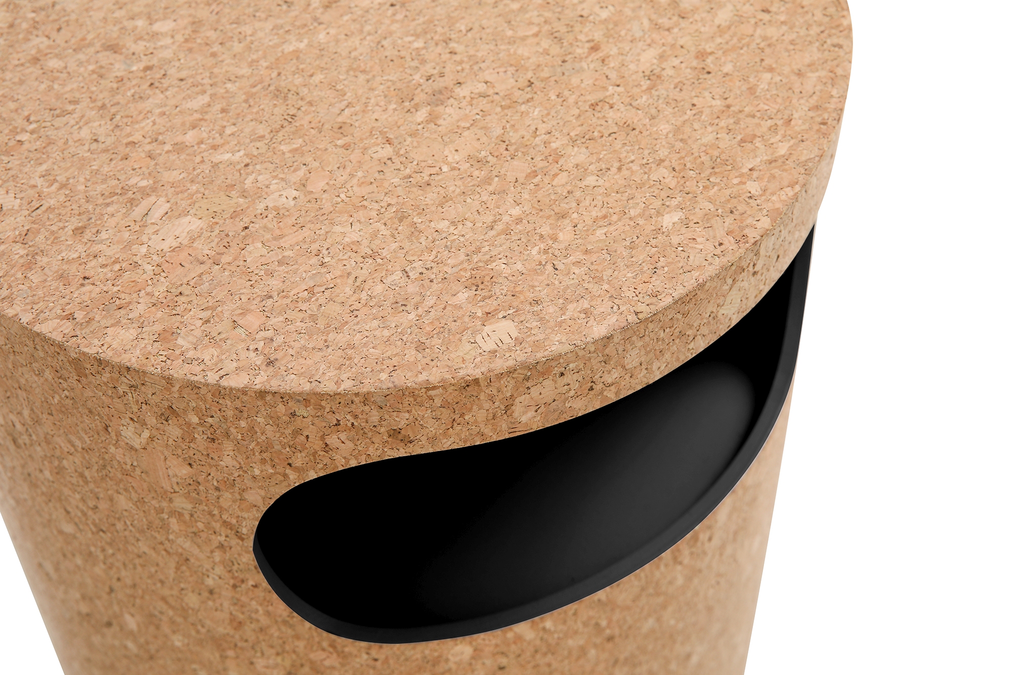 Möbel aus Kork sind nicht nur ein außergewöhnlicher Design-Hingucker, sie sind durch die positiven Eigenschaften des Naturmaterials auch sehr praktisch. Die robuste Korkoberfläche strotz den Strapazen des Alltags, durch das leichte Gewicht ist die Nachtkommode zusätzlich im Handumdrehen umplatziert – Immer genau dort bereit, wo gerade zusätzliche Ablagefläche benötigt wird. Das offene Fach im Inneren des Nachttischs bietet eine praktische Stauraummöglichkeit am Bett. Der schwarze Kontrast im Innenleben sorgt für eine coole und moderne Optik, welche das extravagante Design gekonnt abrundet.